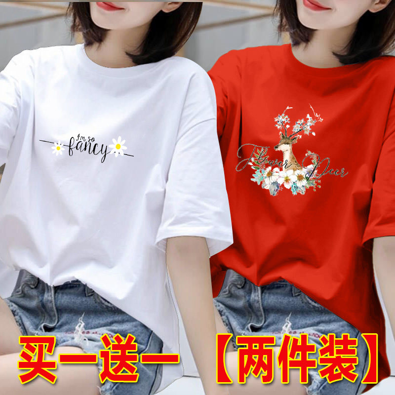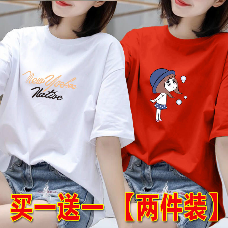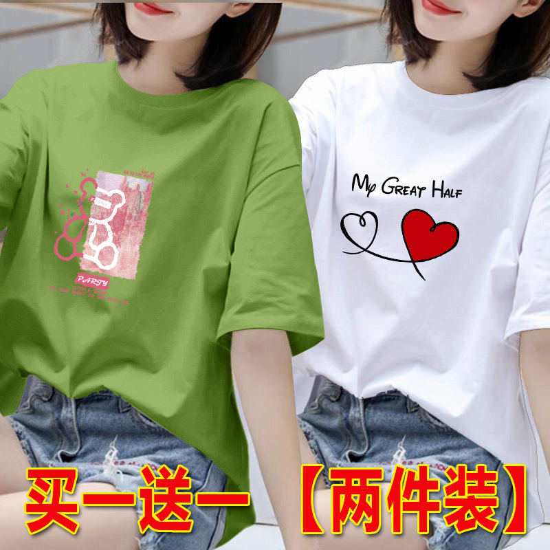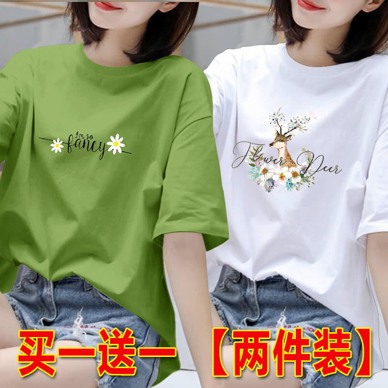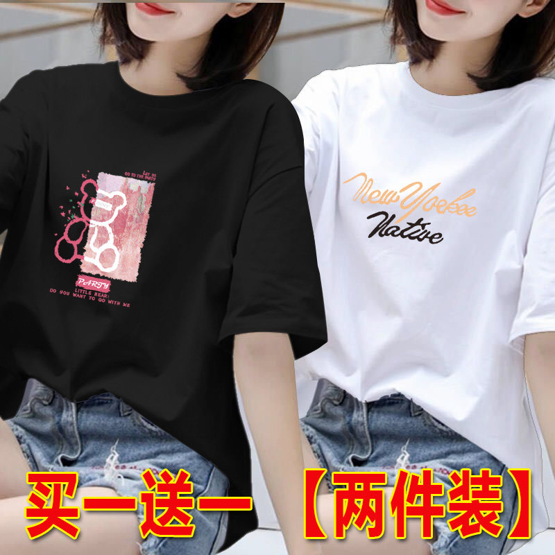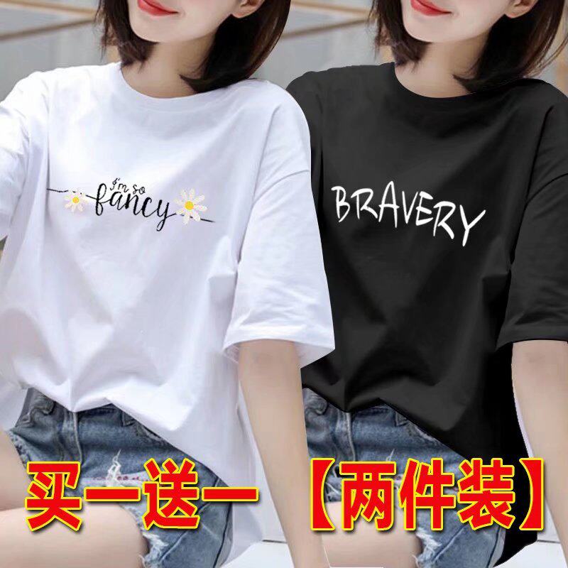 2025年白色短袖t恤女夏季韩版印花半袖体恤宽松上衣圆领打底衫