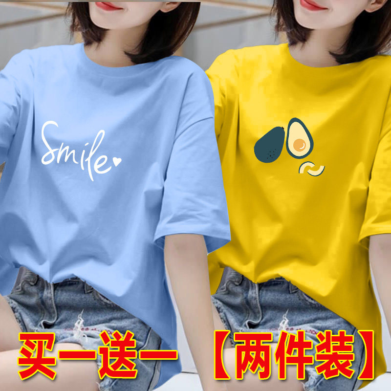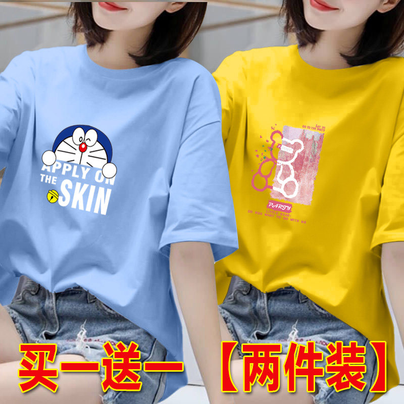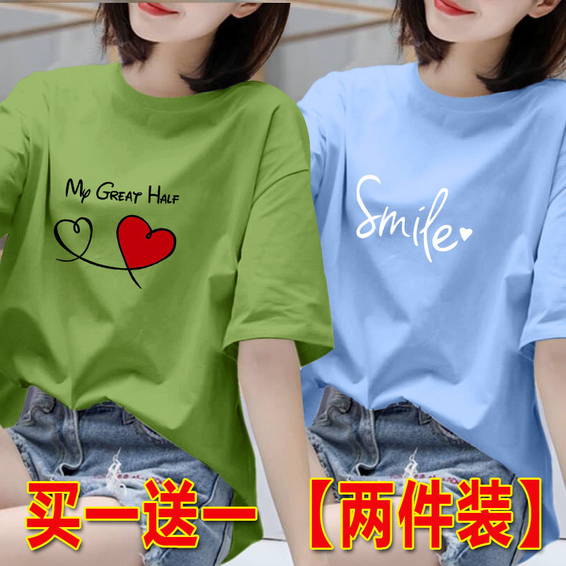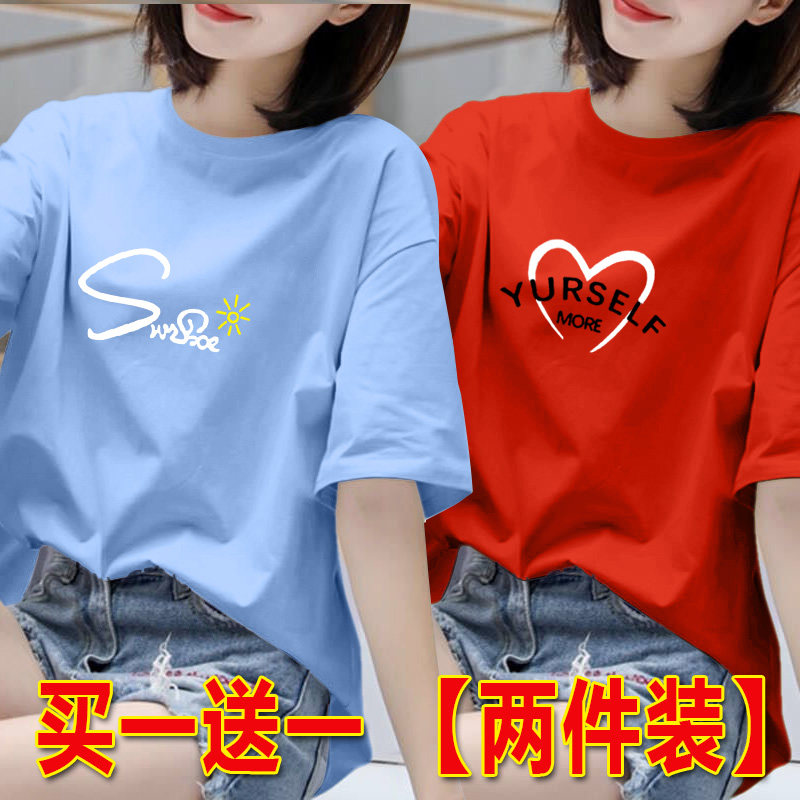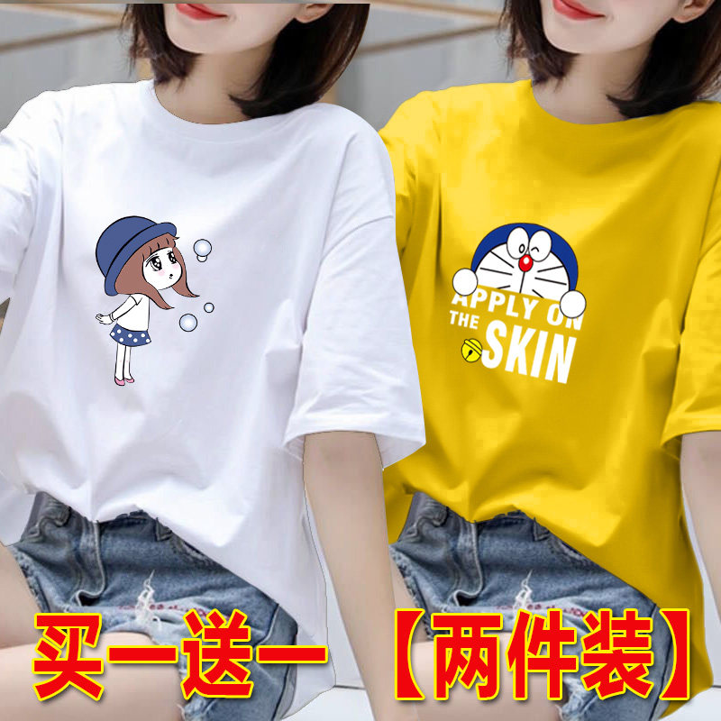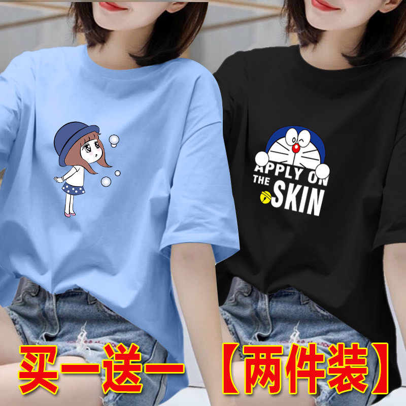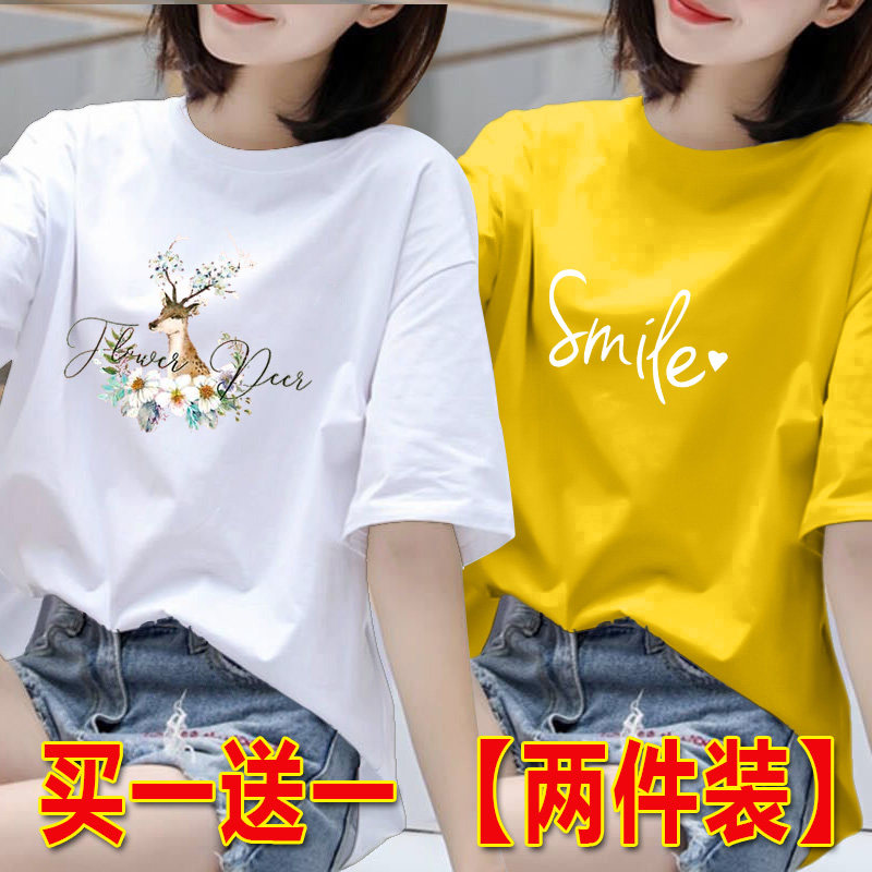 2025年白色短袖t恤女夏季韩版印花半袖体恤宽松上衣圆领打底衫