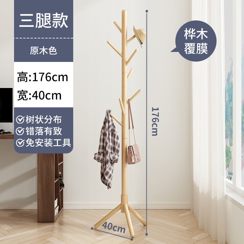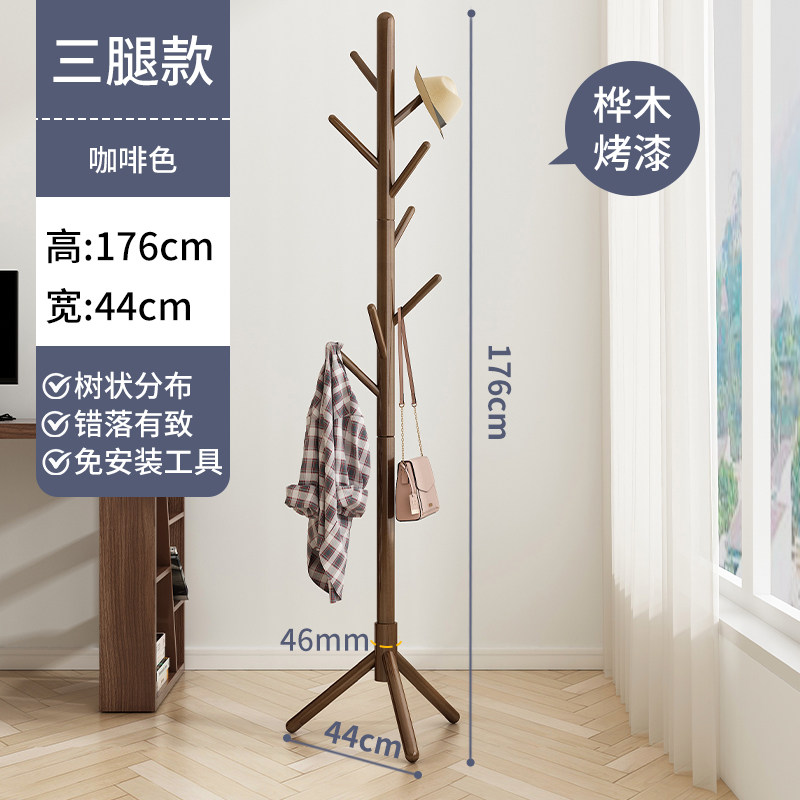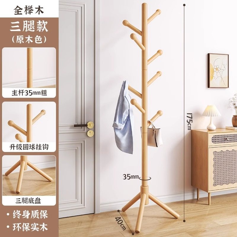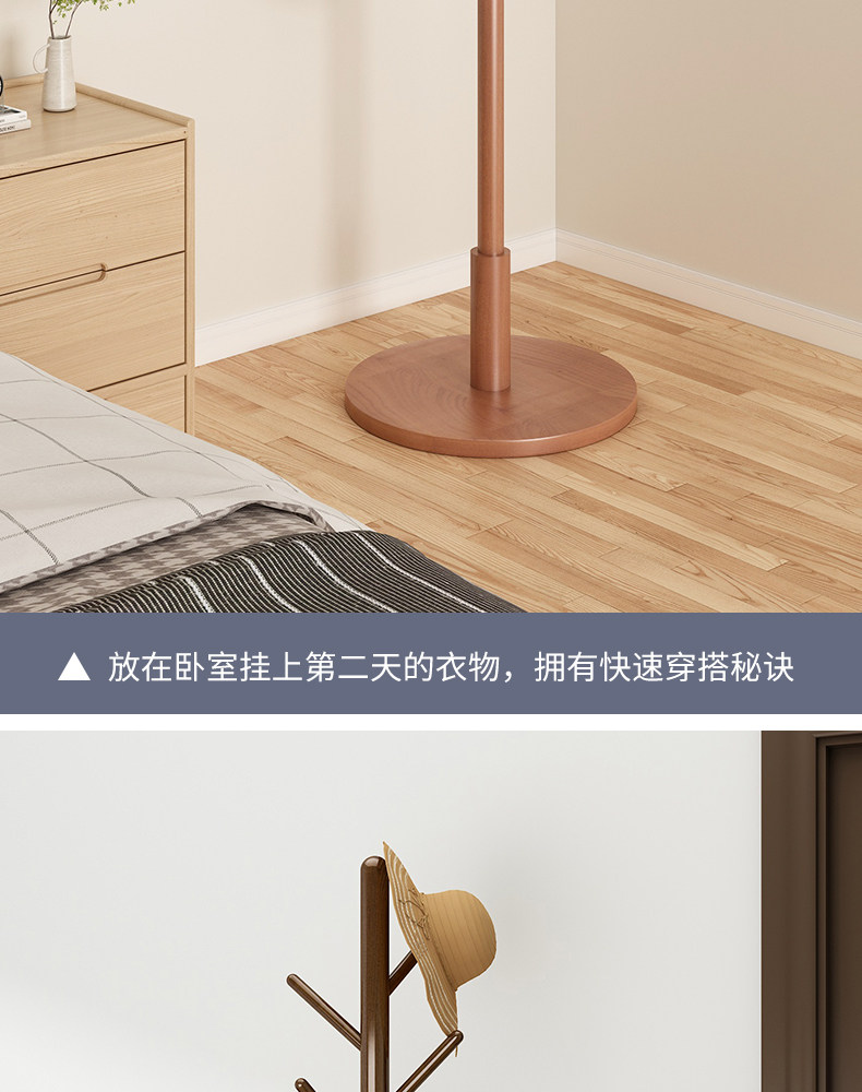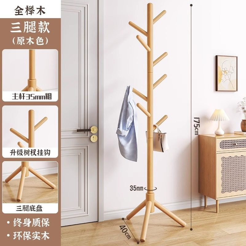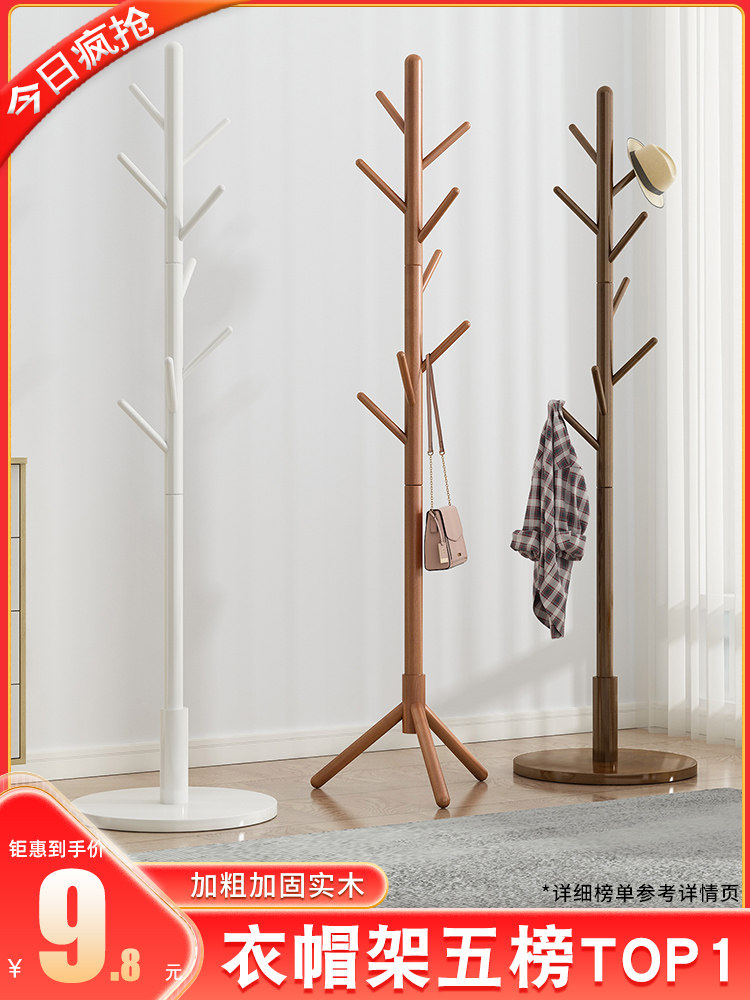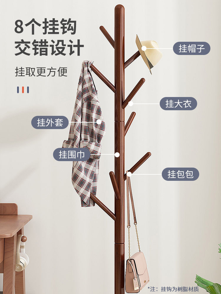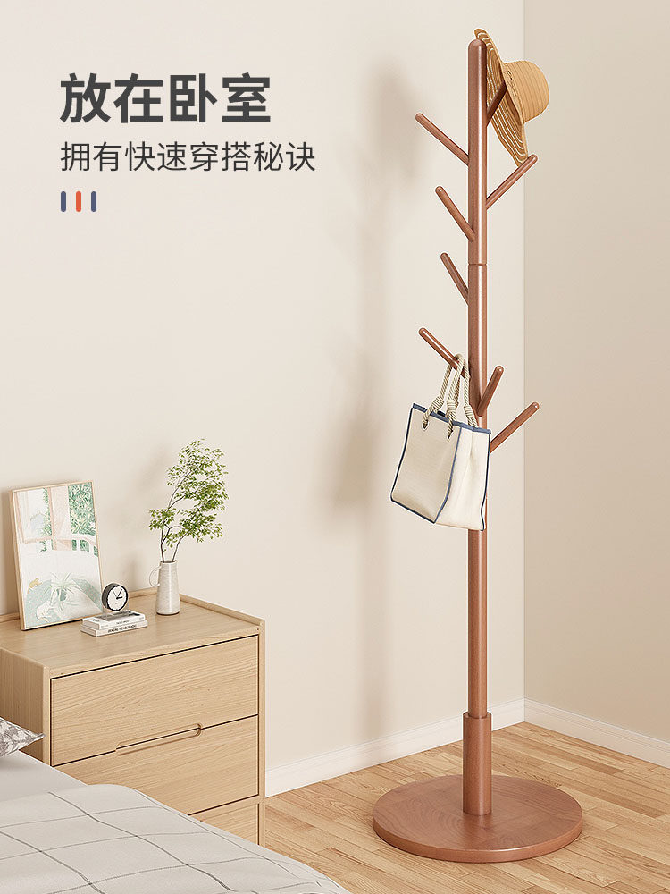 实木衣帽架落地卧室内置物客厅挂衣服架子家用单杆立式简易挂包架