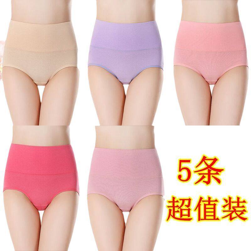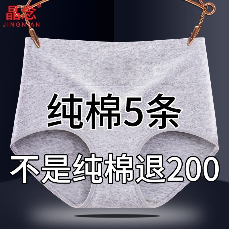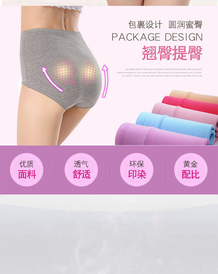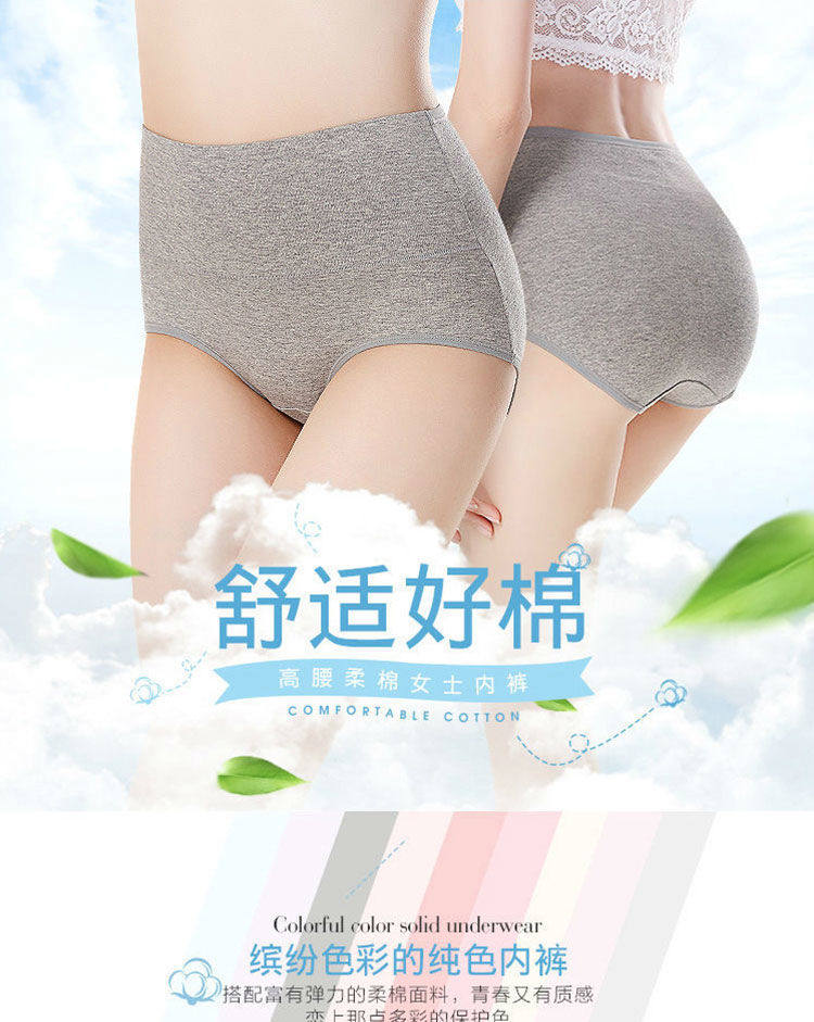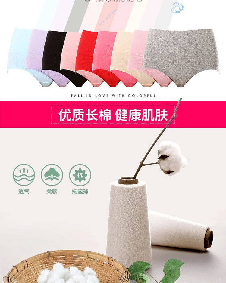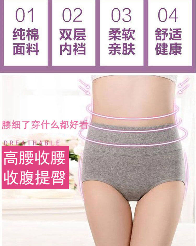 女士纯棉内裤女中腰大码抗菌全棉裆透气女生高腰收腹提臀三角短裤