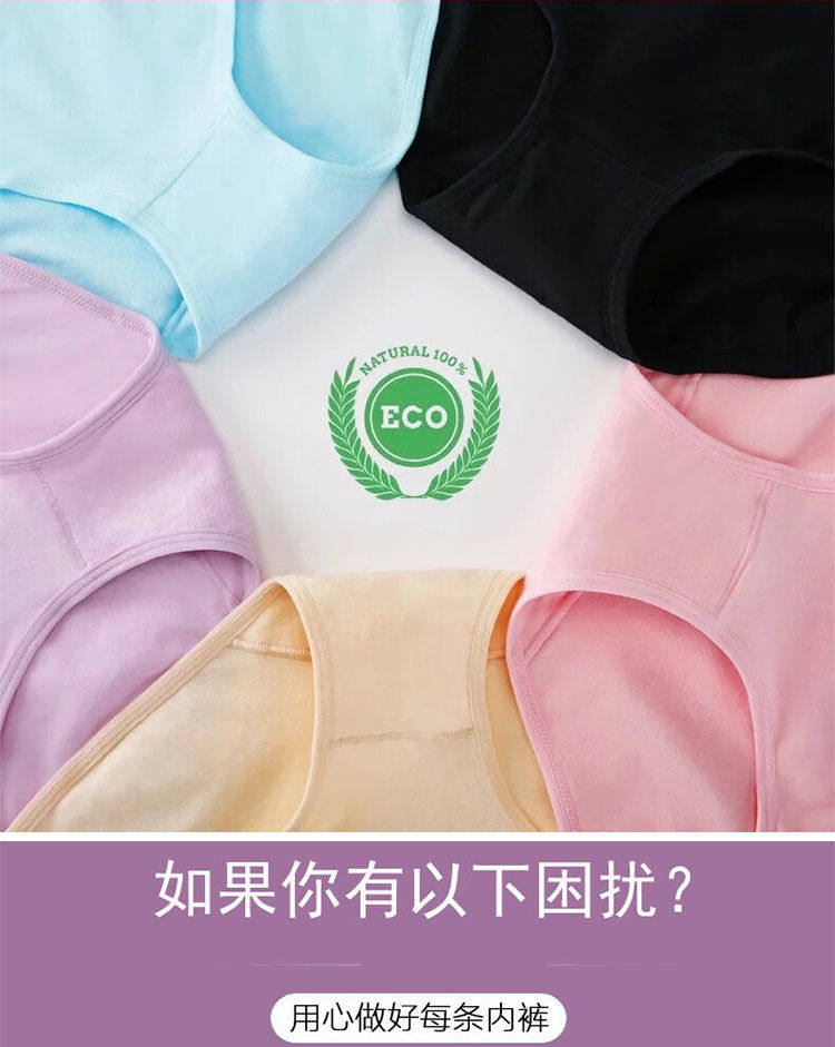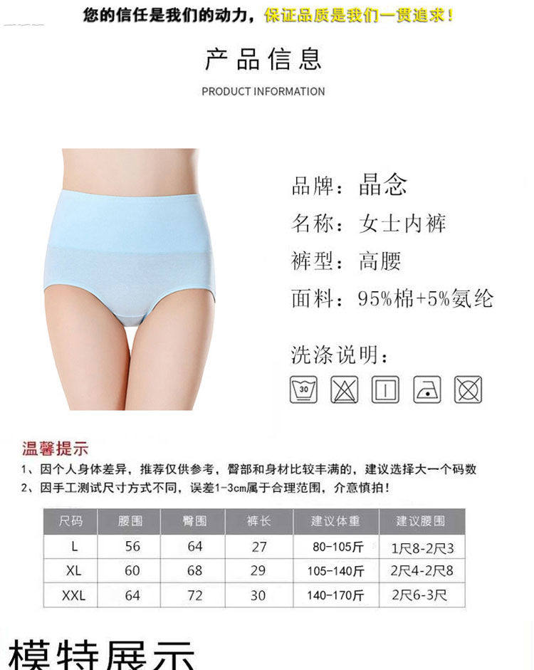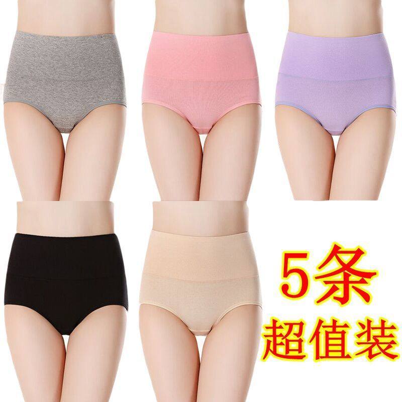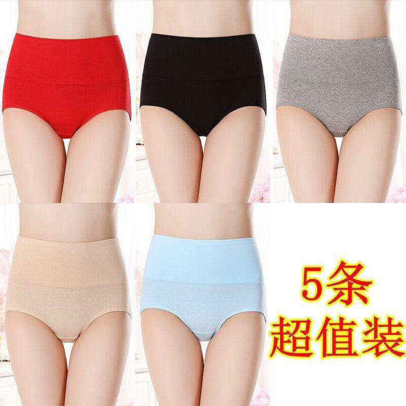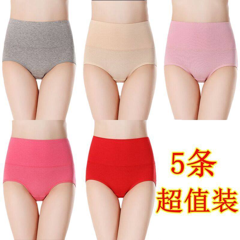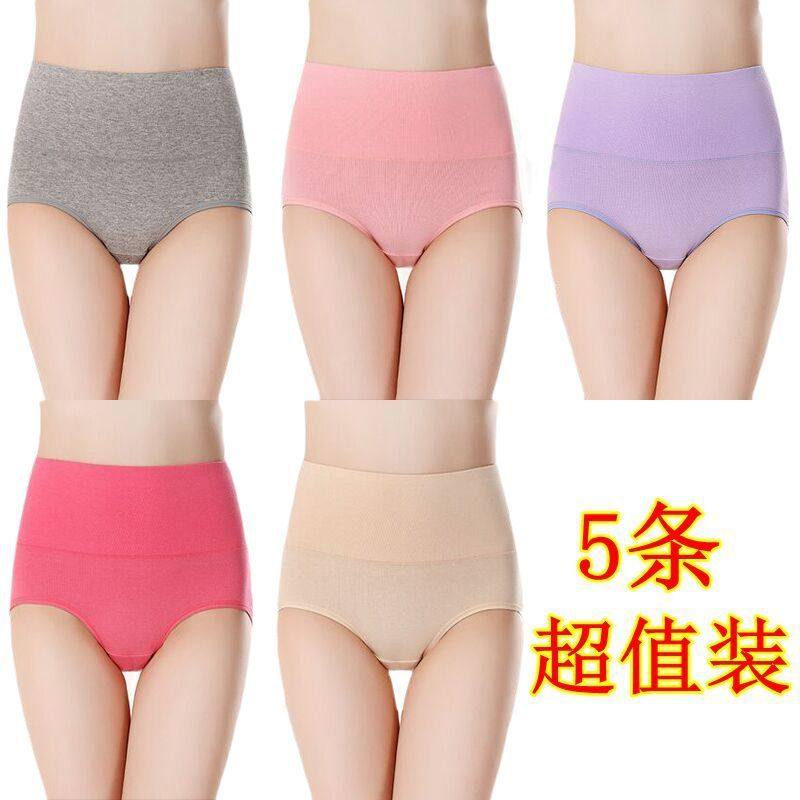女士纯棉内裤女中腰大码抗菌全棉裆透气女生高腰收腹提臀三角短裤