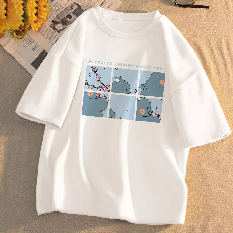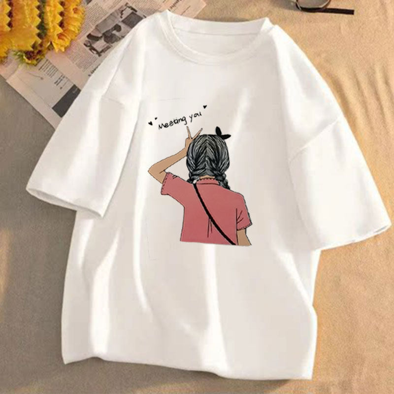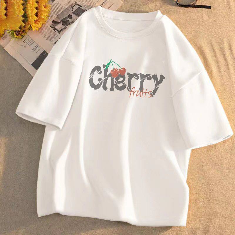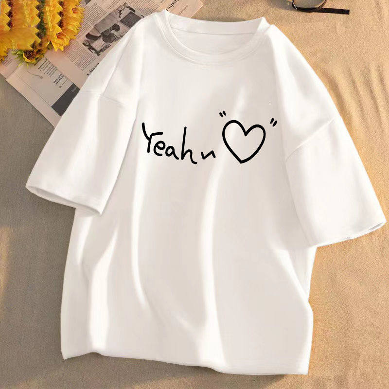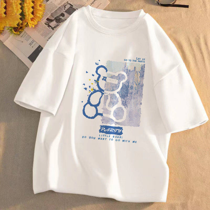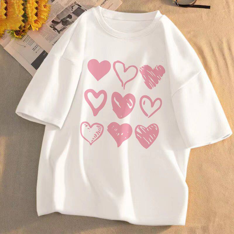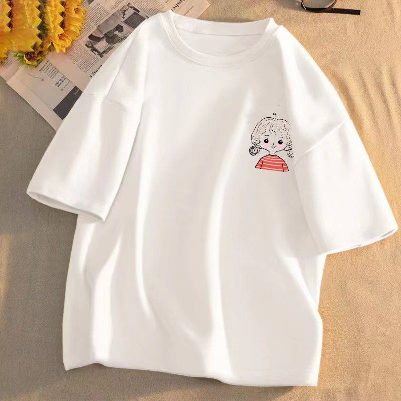 短袖t恤女2025年夏季新款印花学生宽松韩版圆领盐系百搭上衣服潮