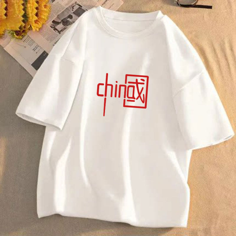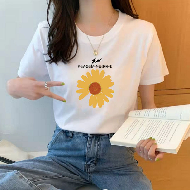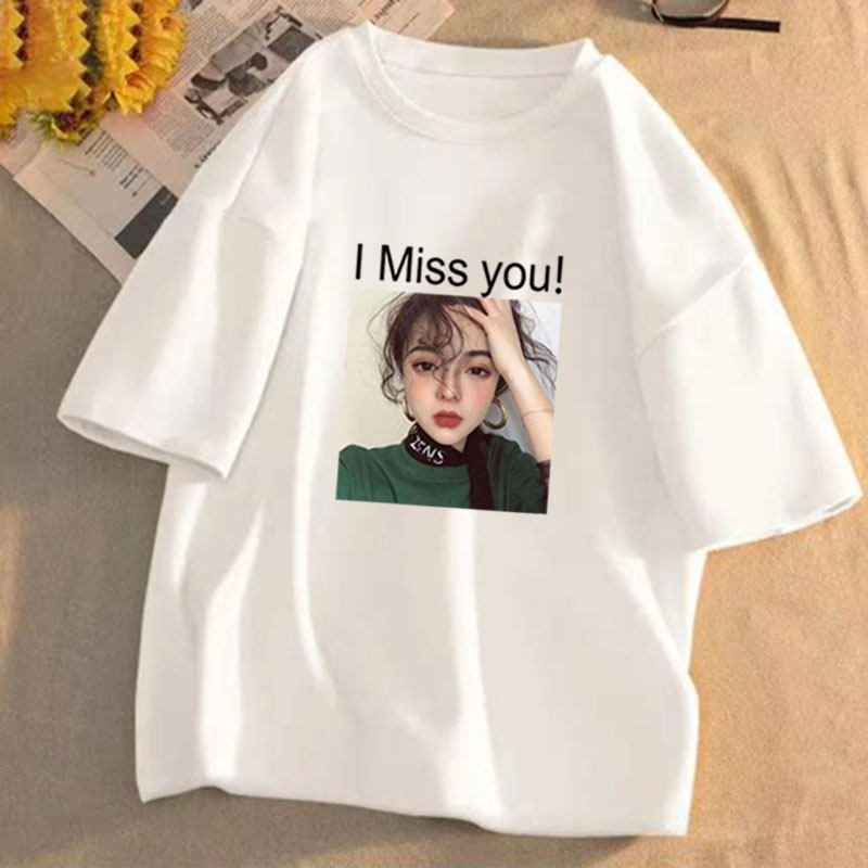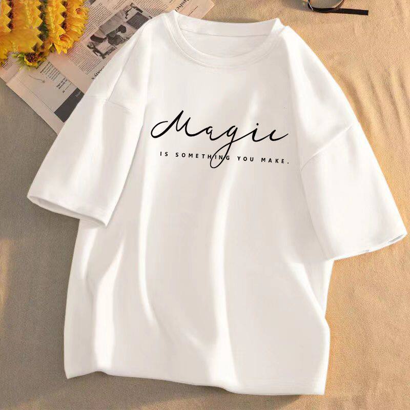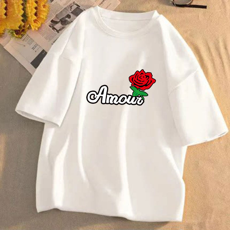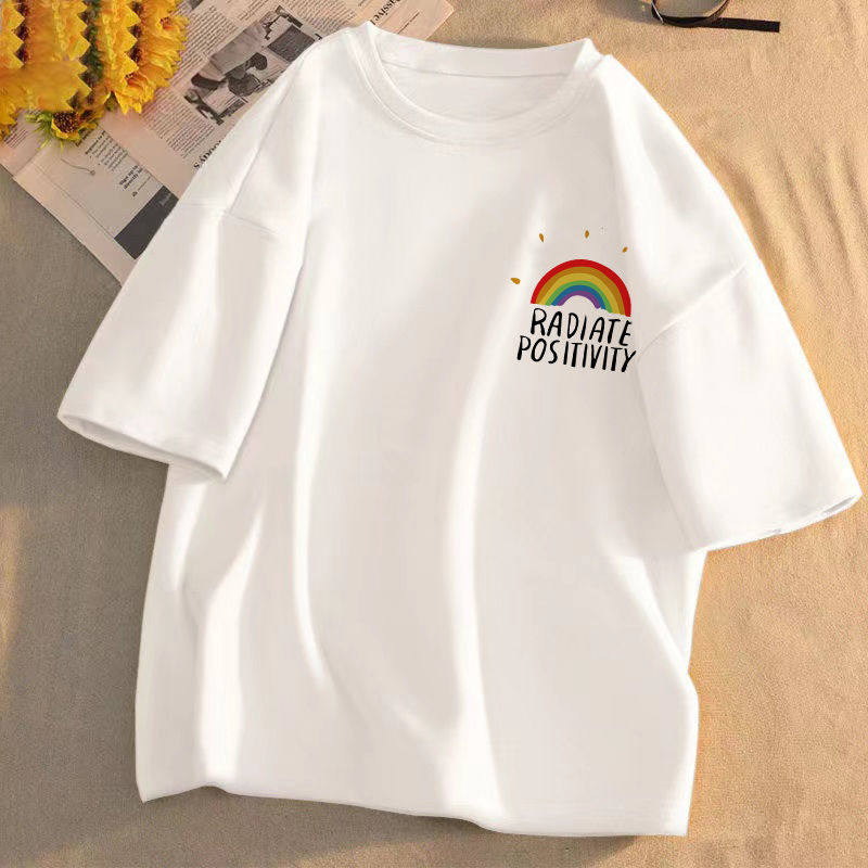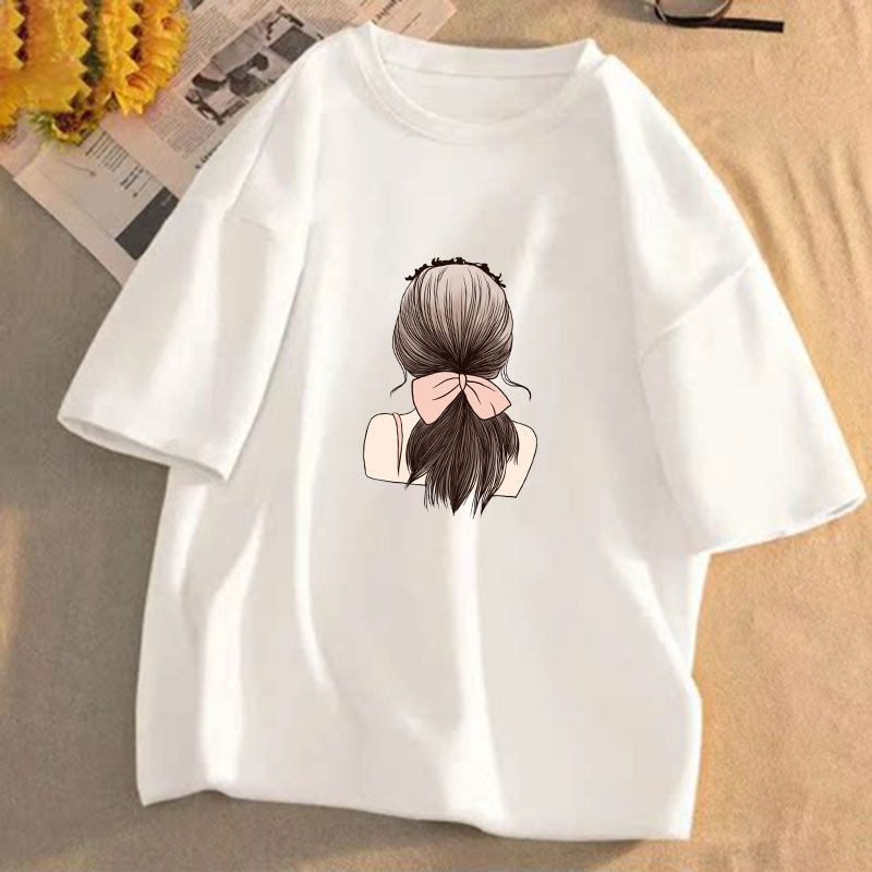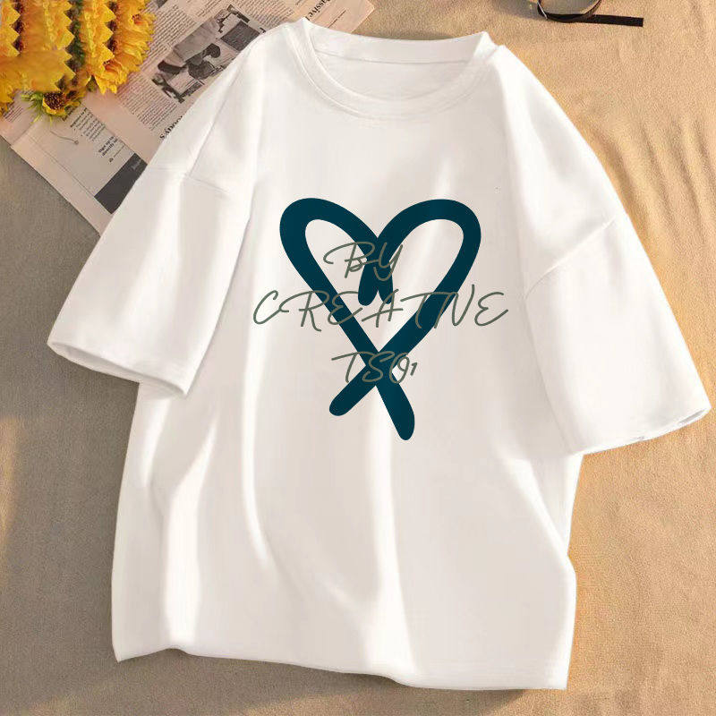 短袖t恤女2025年夏季新款印花学生宽松韩版圆领盐系百搭上衣服潮