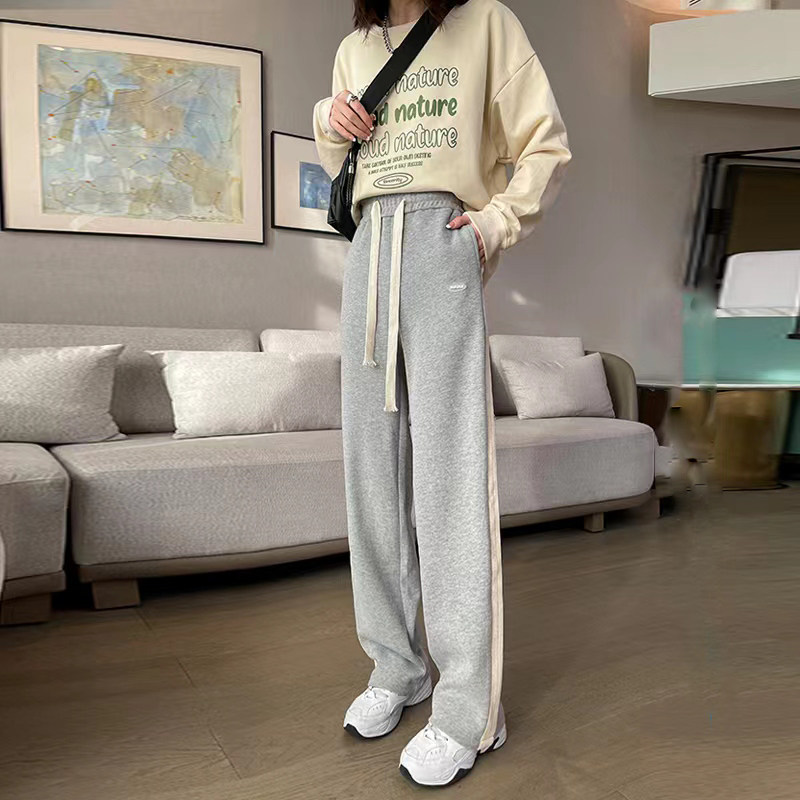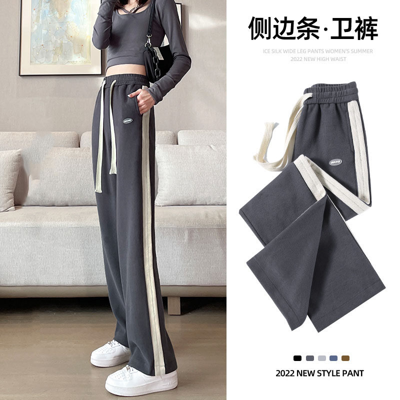 阔腿裤女春秋薄款高腰垂感宽松显瘦直筒小个子纯棉跑步运动休闲裤
