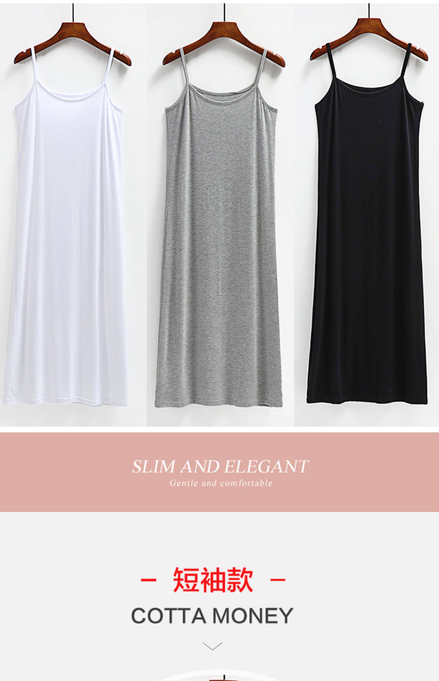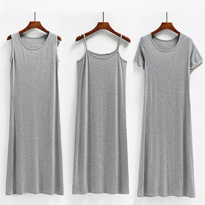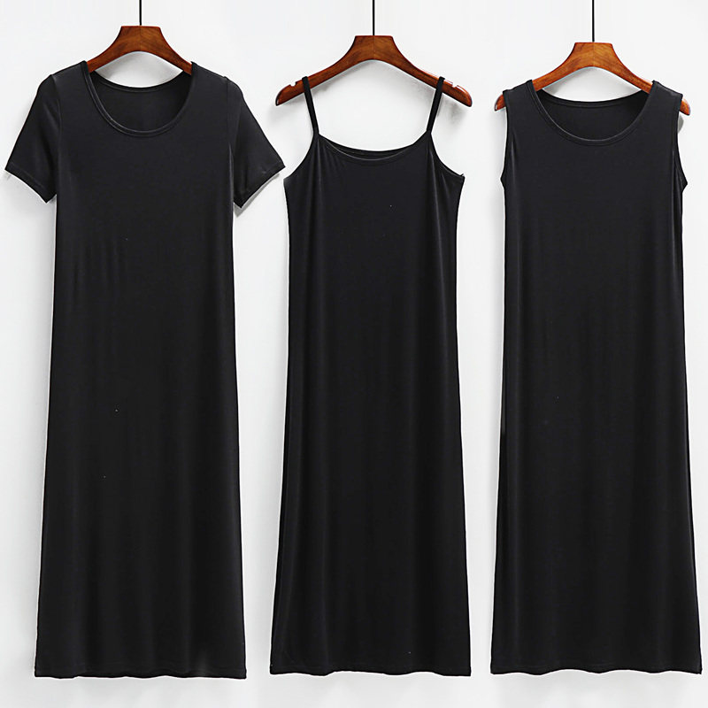 春夏莫代尔家居吊带连衣裙女内搭大码300斤背心短袖a字打底长裙子