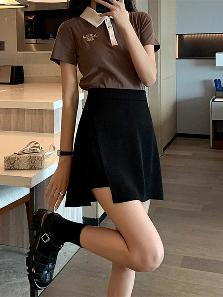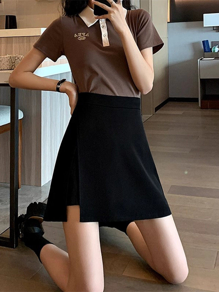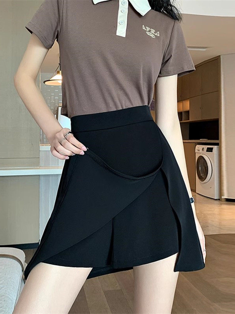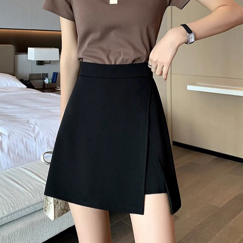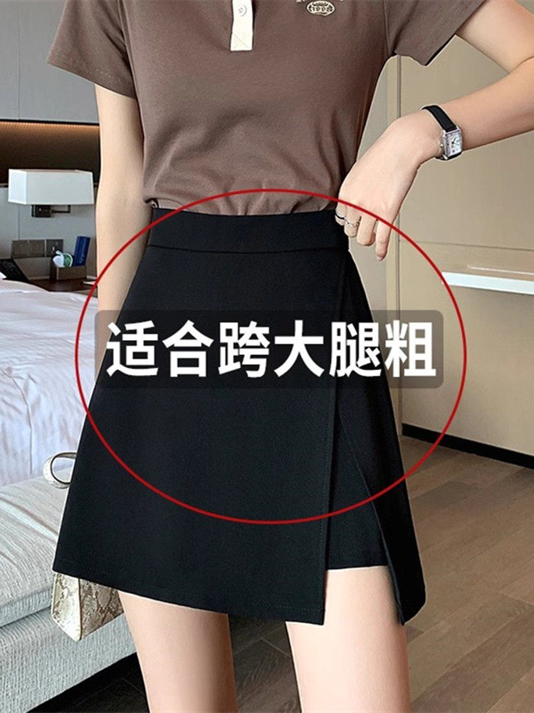 黑色开叉短裙女夏季薄款高腰显瘦胖mm大码a字防走光休闲半身裙潮