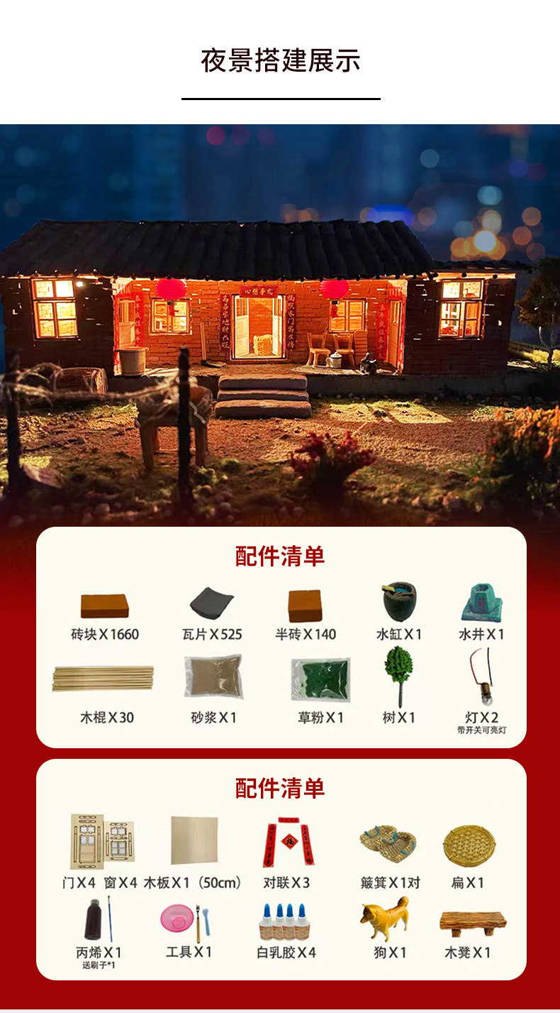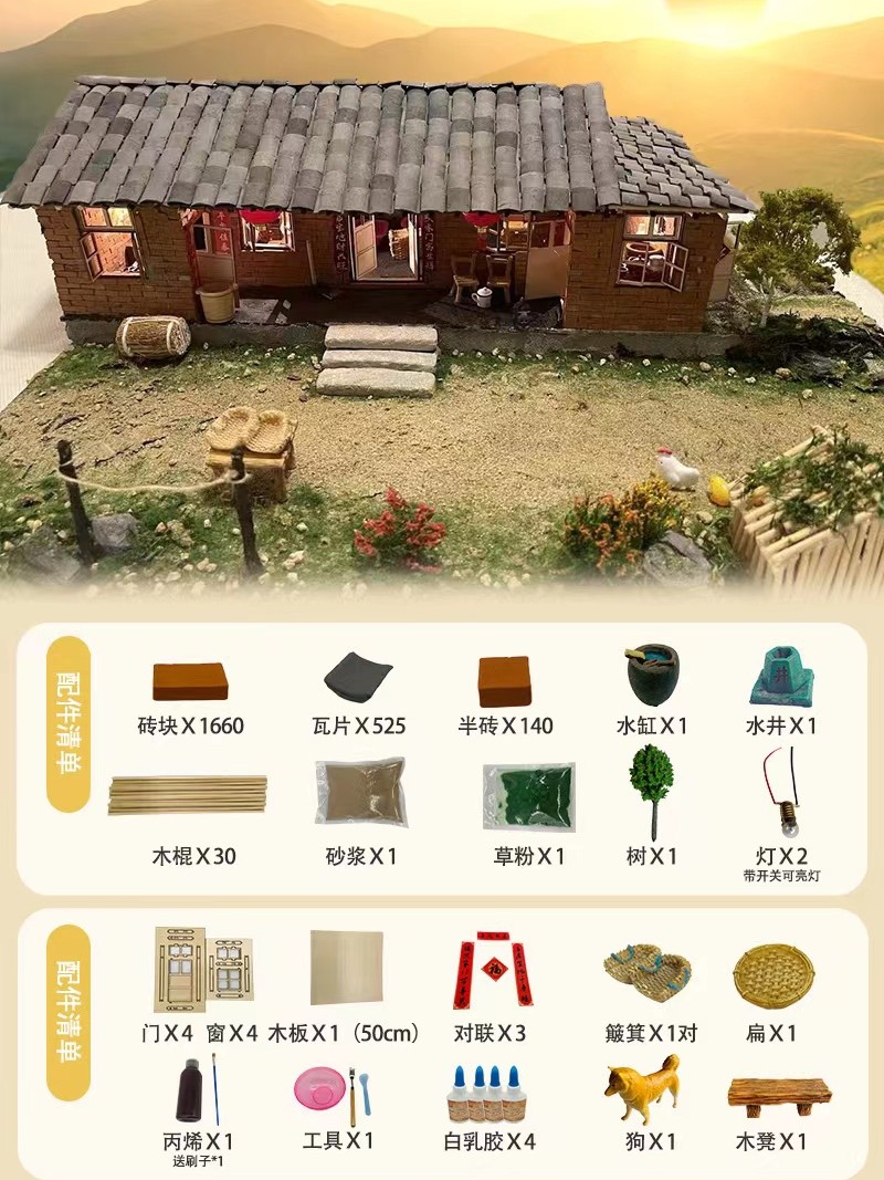 砖头砖块diy仿真老房子盖房子1比16真砖材料砌墙建筑迷你小房子