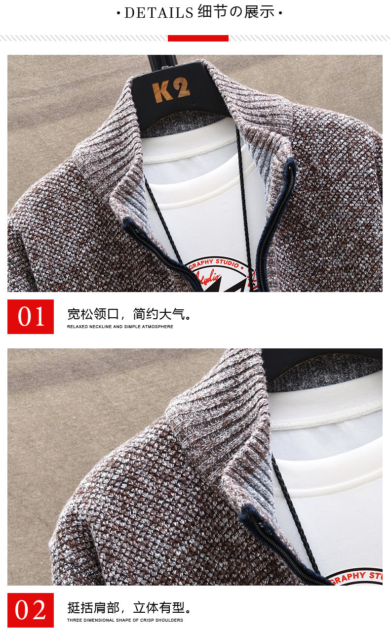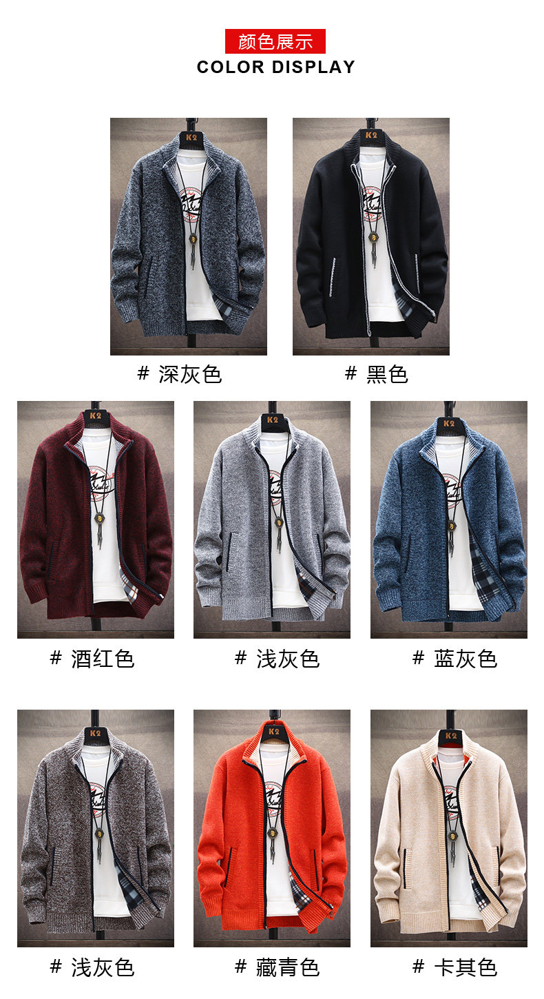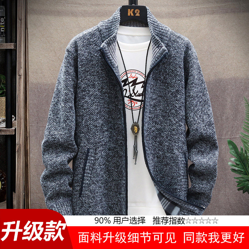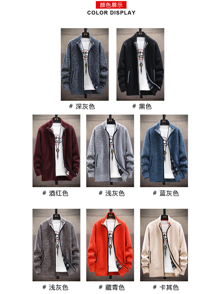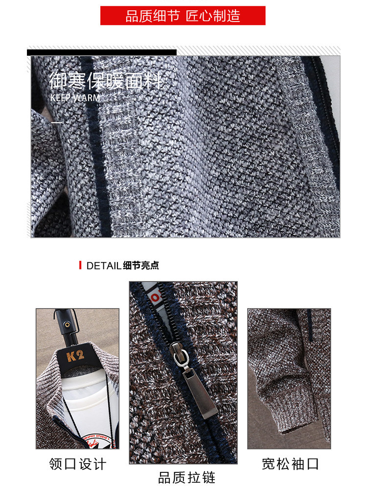 春秋季新款立领夹克潮流帅气休闲开衫毛线衣时尚潮牌男士针织外套