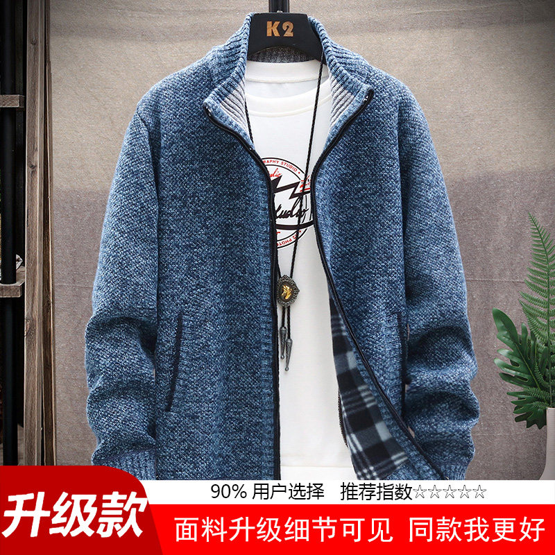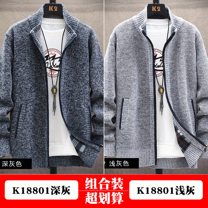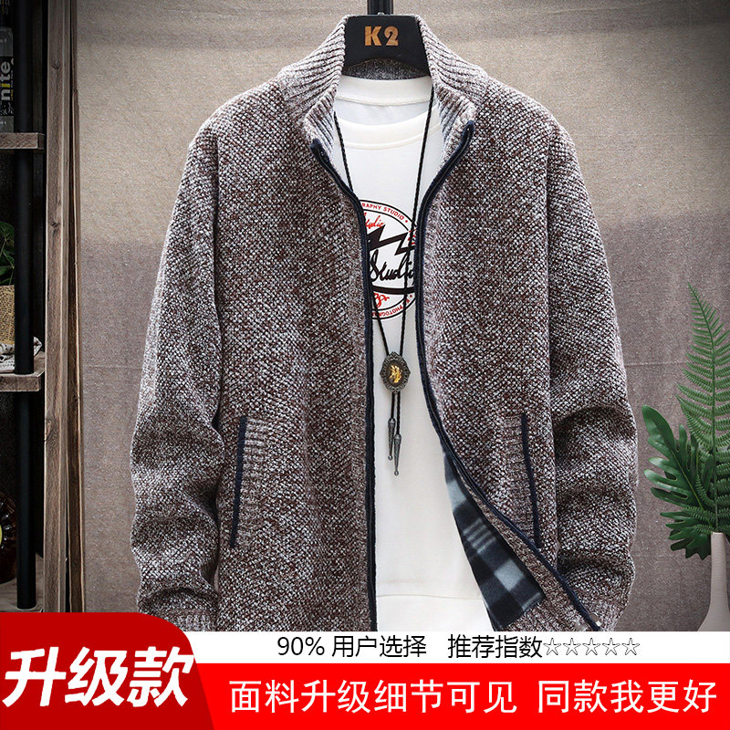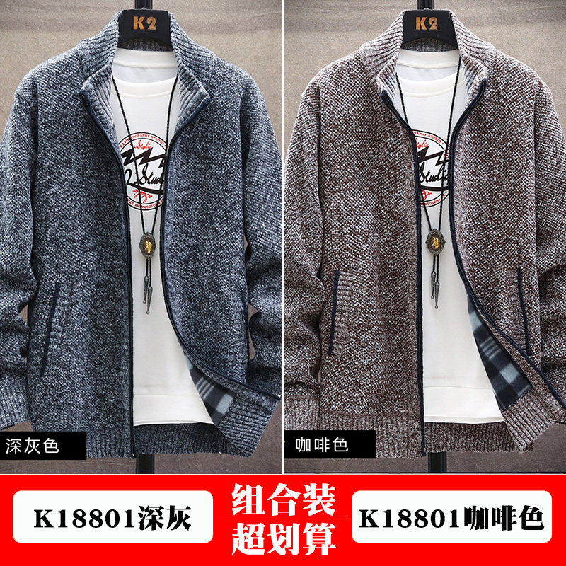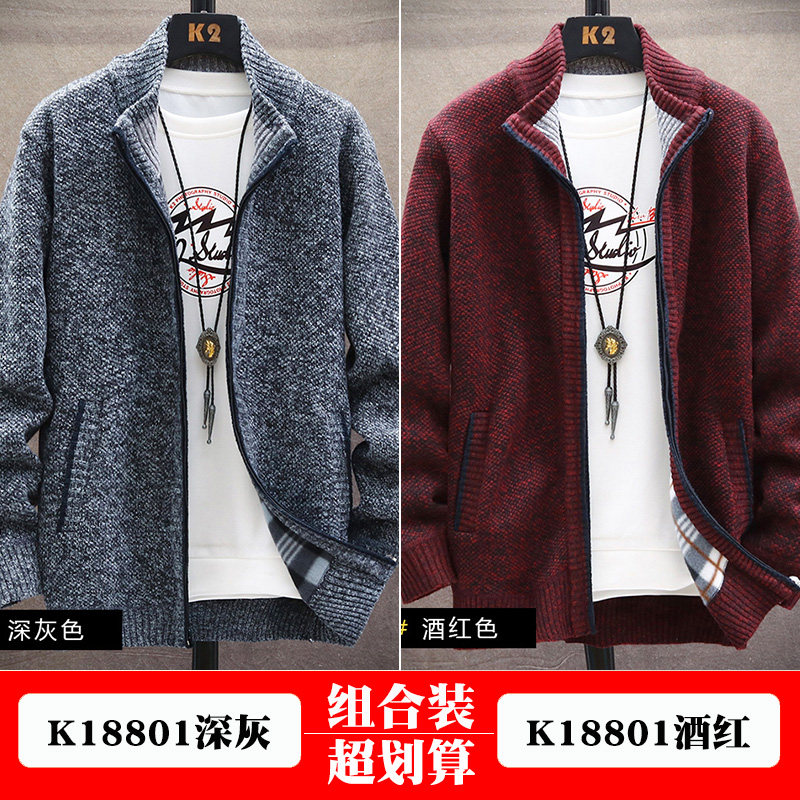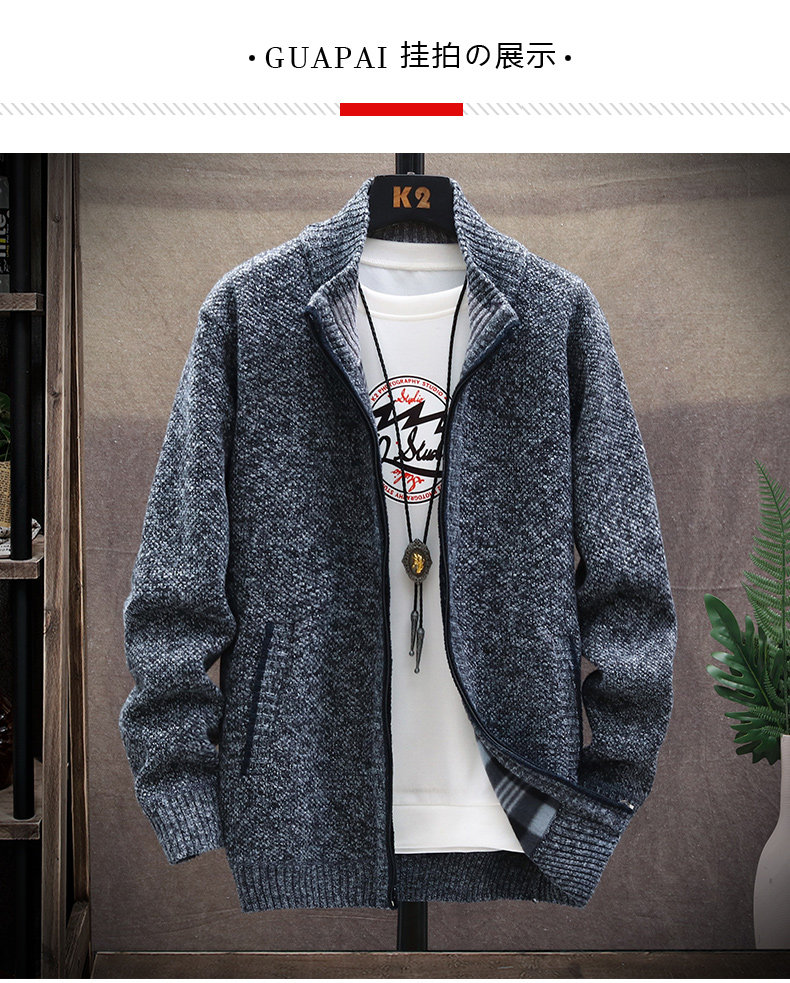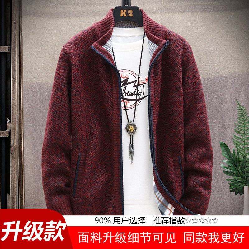 春秋季新款立领夹克潮流帅气休闲开衫毛线衣时尚潮牌男士针织外套