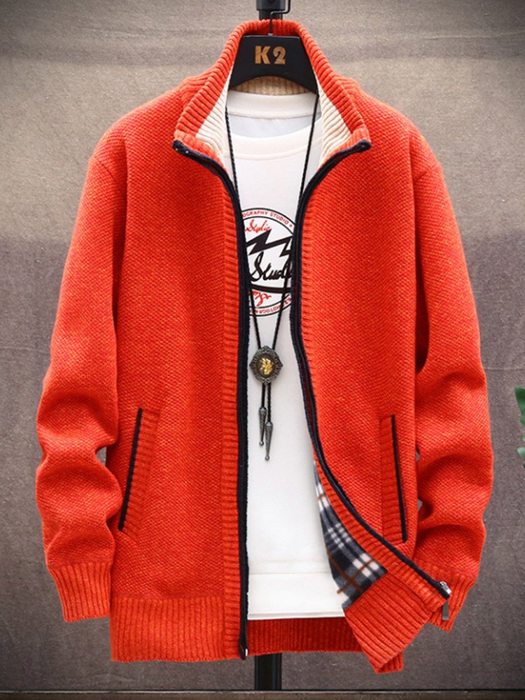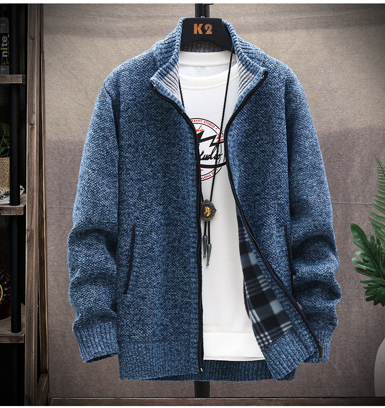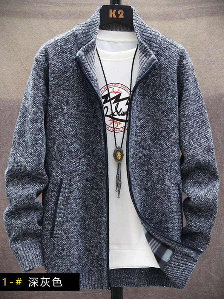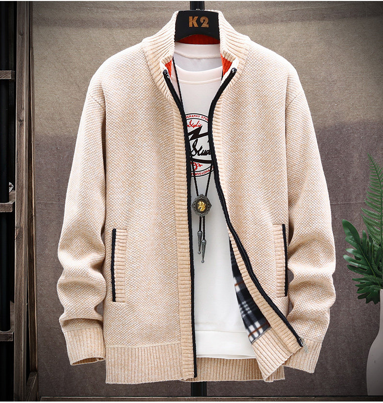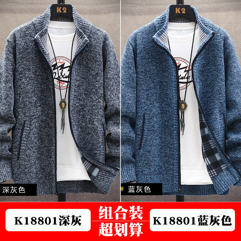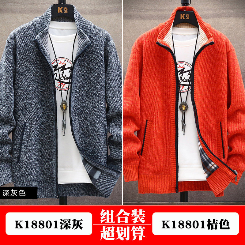 春秋季新款立领夹克潮流帅气休闲开衫毛线衣时尚潮牌男士针织外套