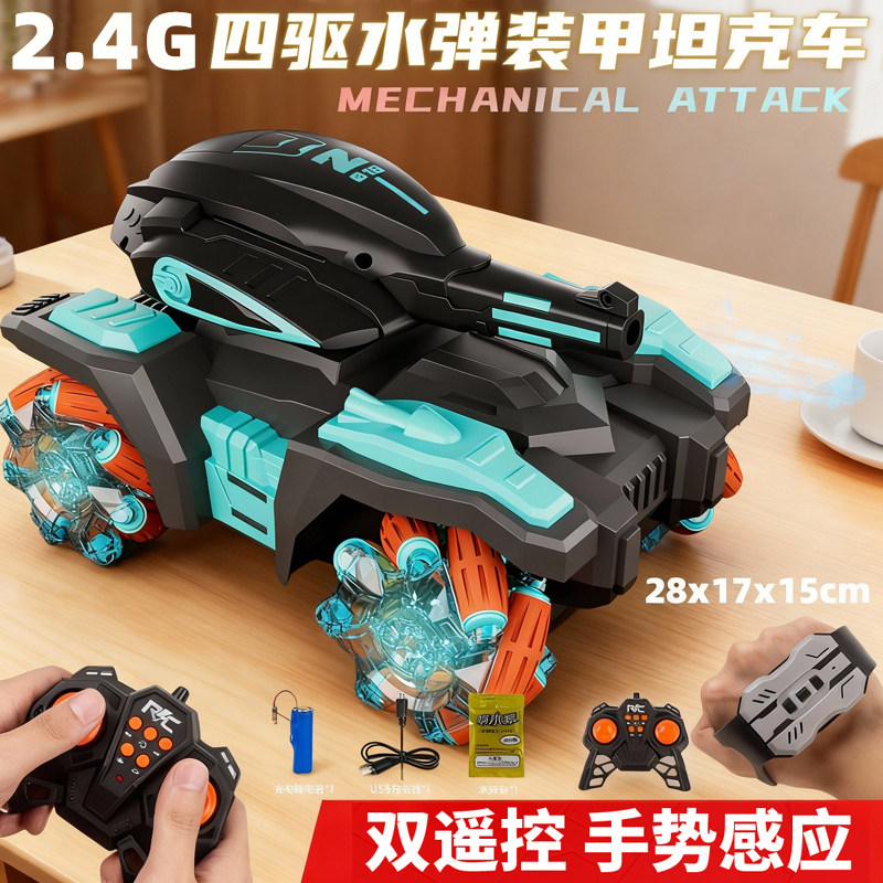 遥控坦克玩具可开炮发射水晶弹手表手势感应四驱越野汽车男孩礼物