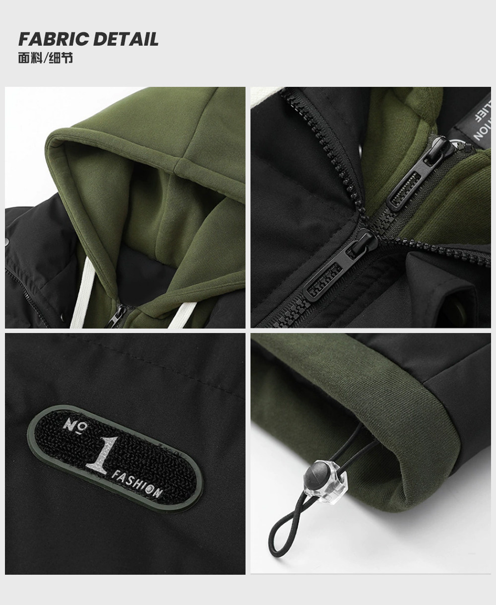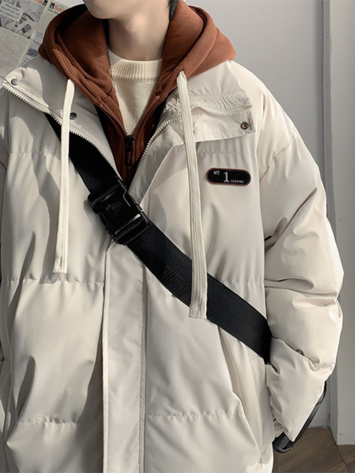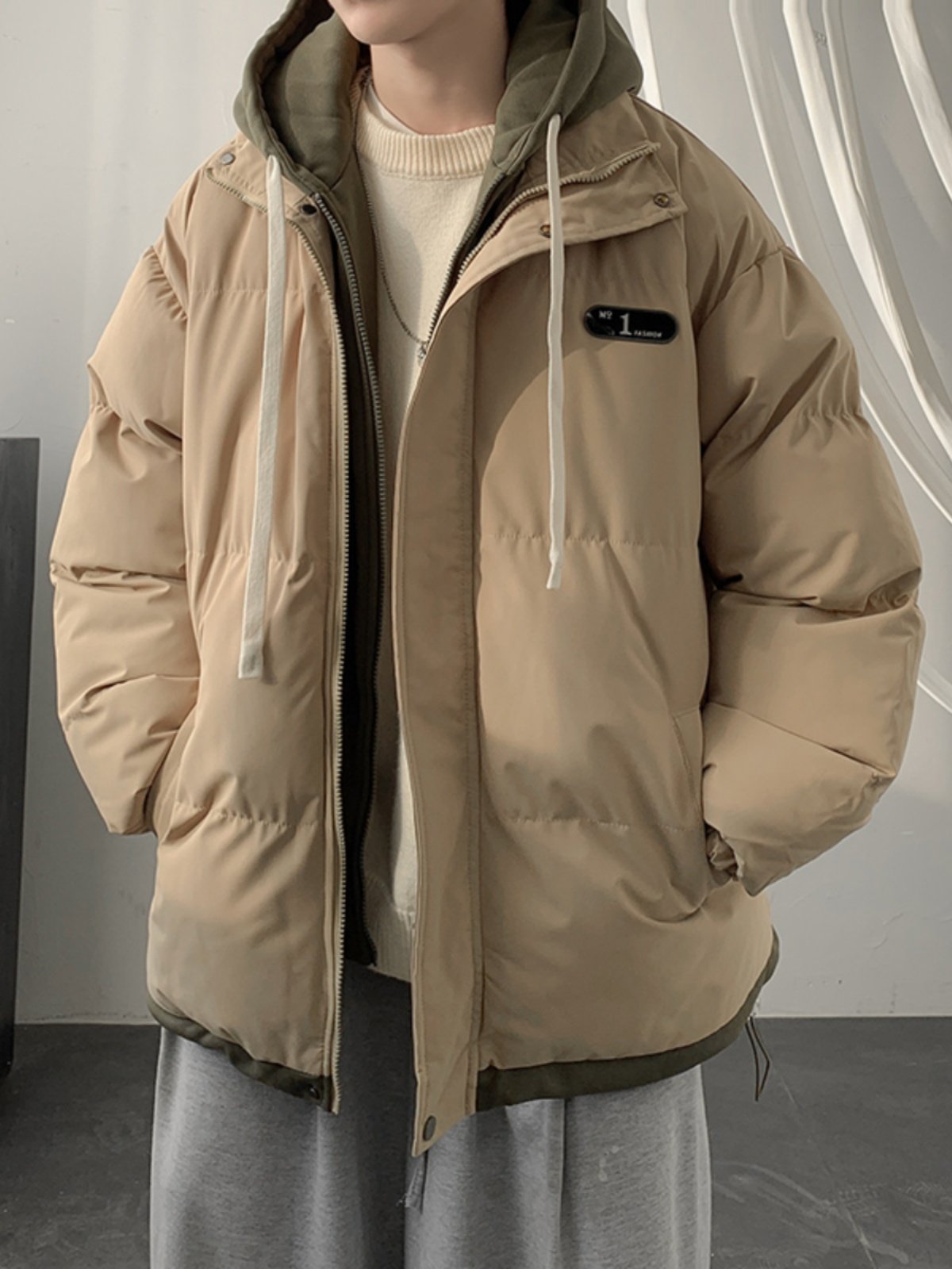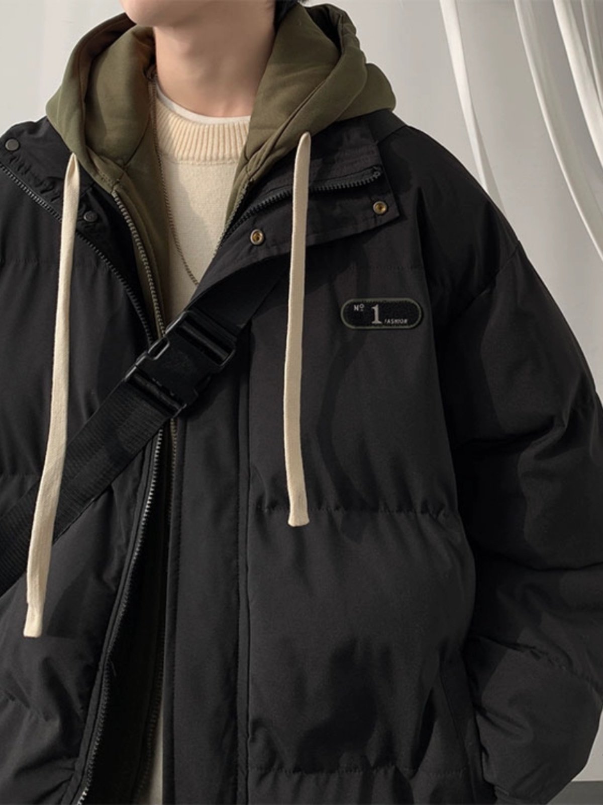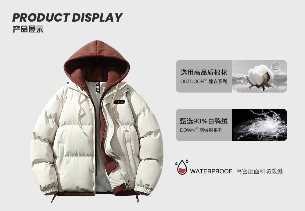 假两件羽绒棉服男款冬季hiphop高街工装外套日系厚连帽情侣面包服