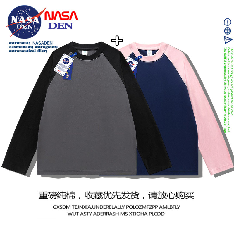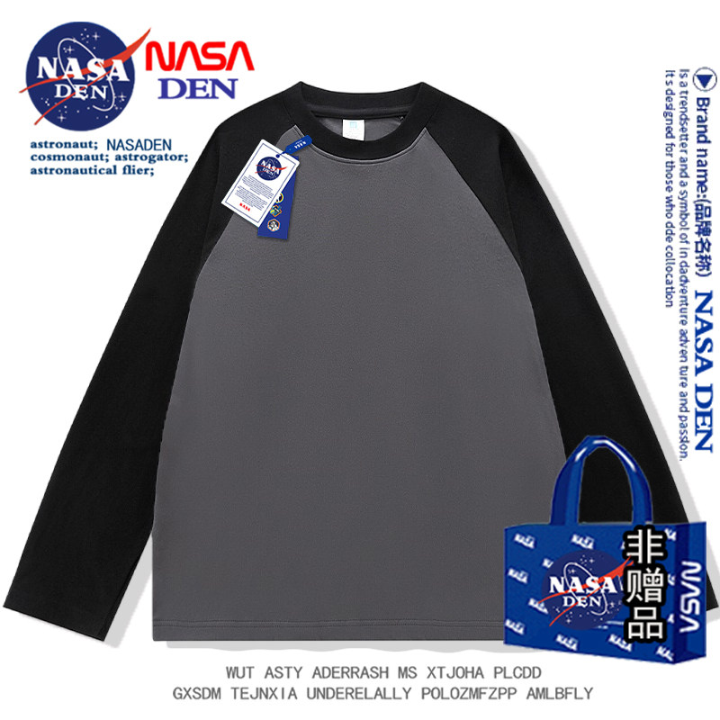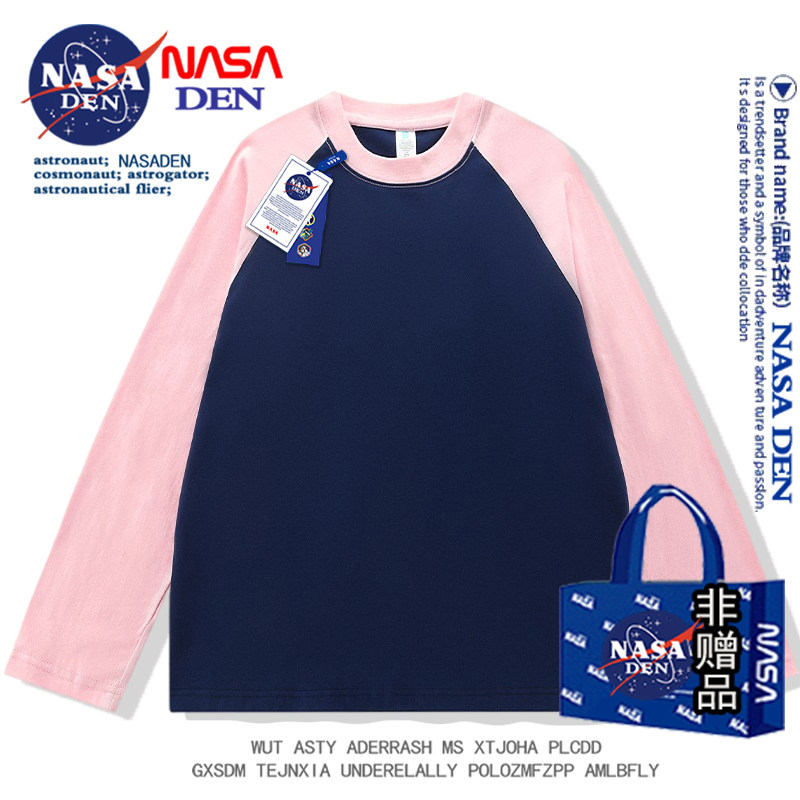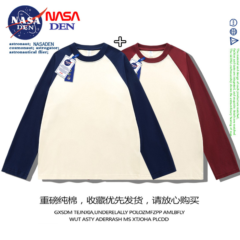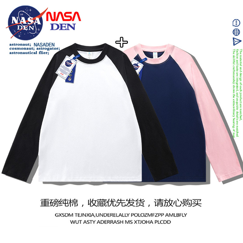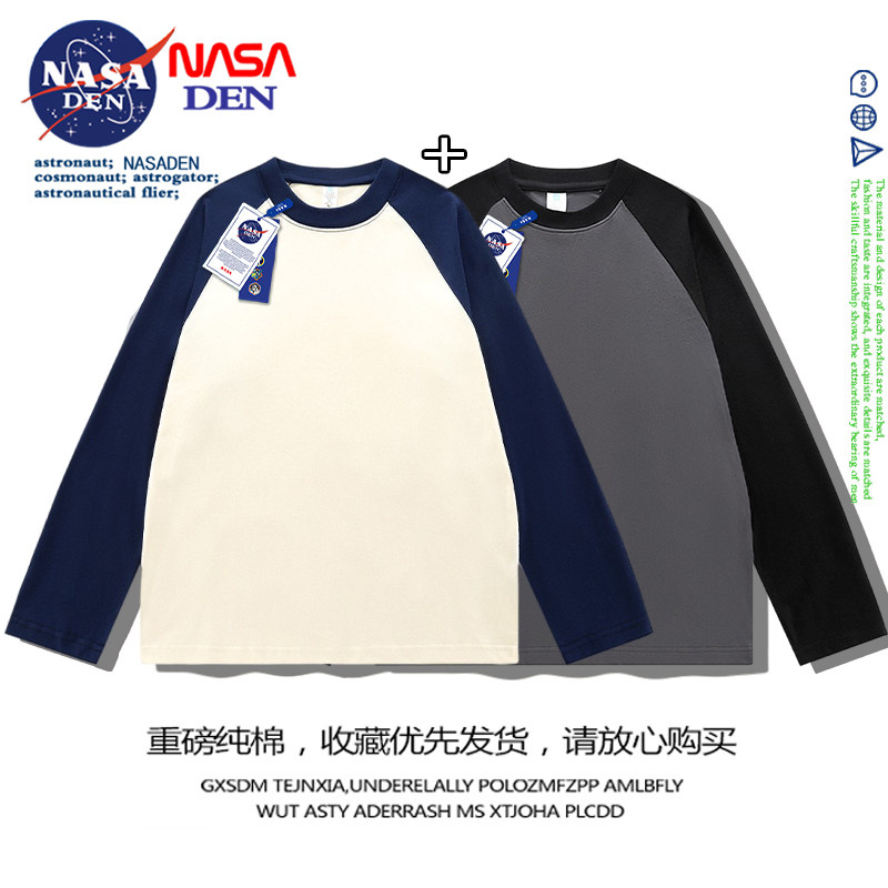 NASA联名春秋季纯棉插肩长袖t恤男女款美式内搭撞色拼接上衣服衫