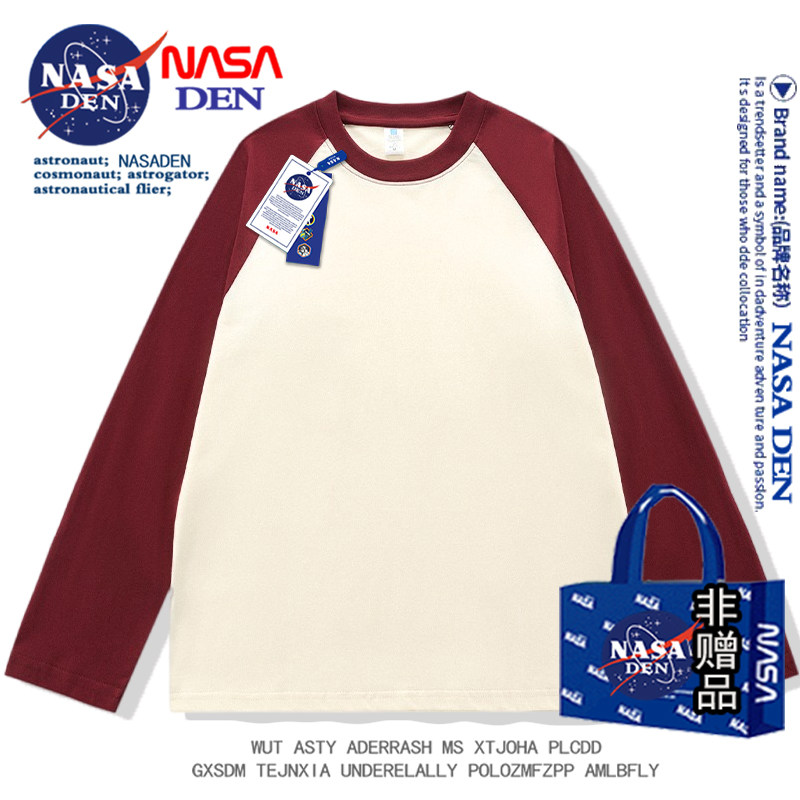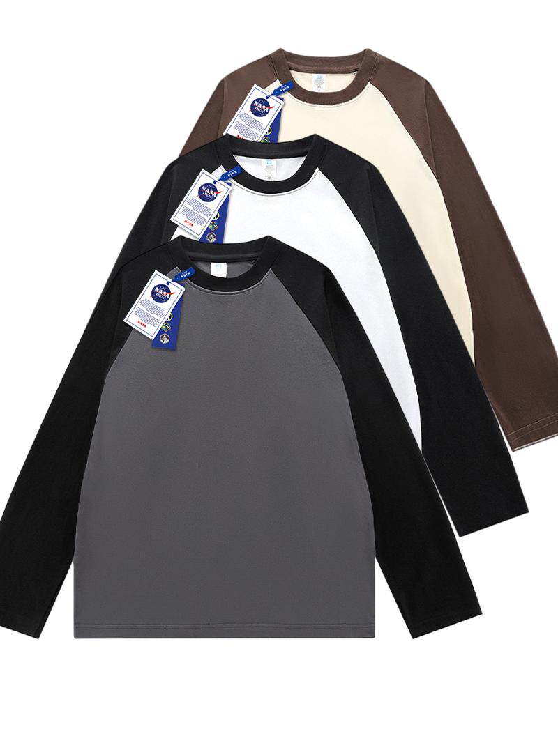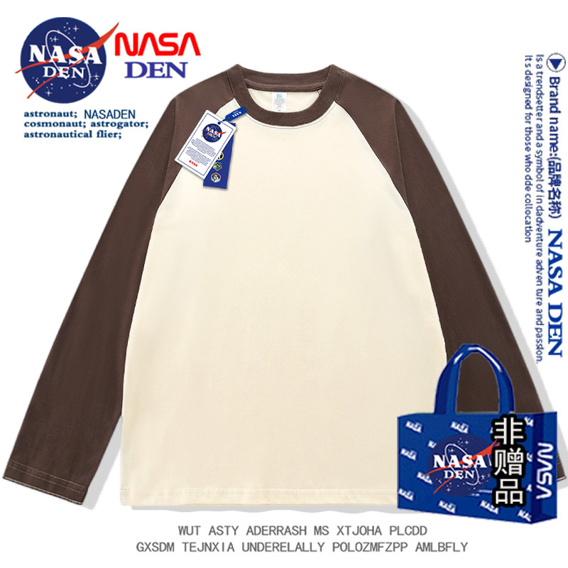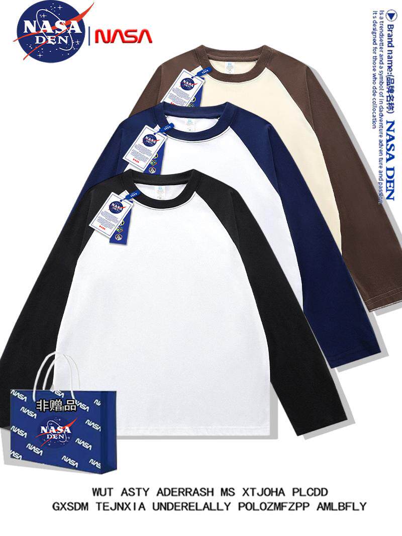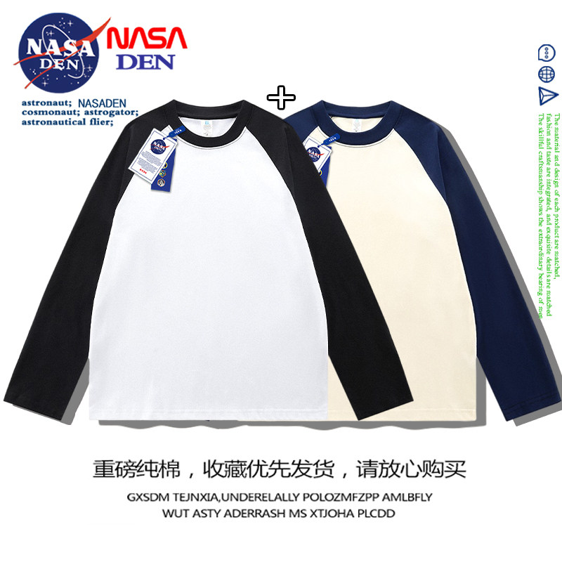 NASA联名春秋季纯棉插肩长袖t恤男女款美式内搭撞色拼接上衣服衫