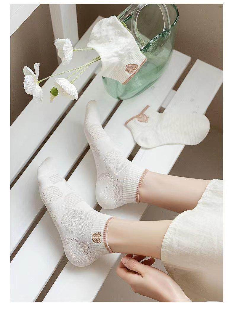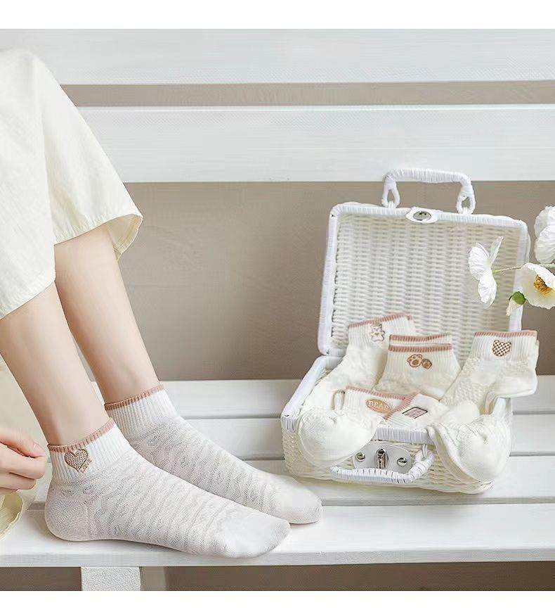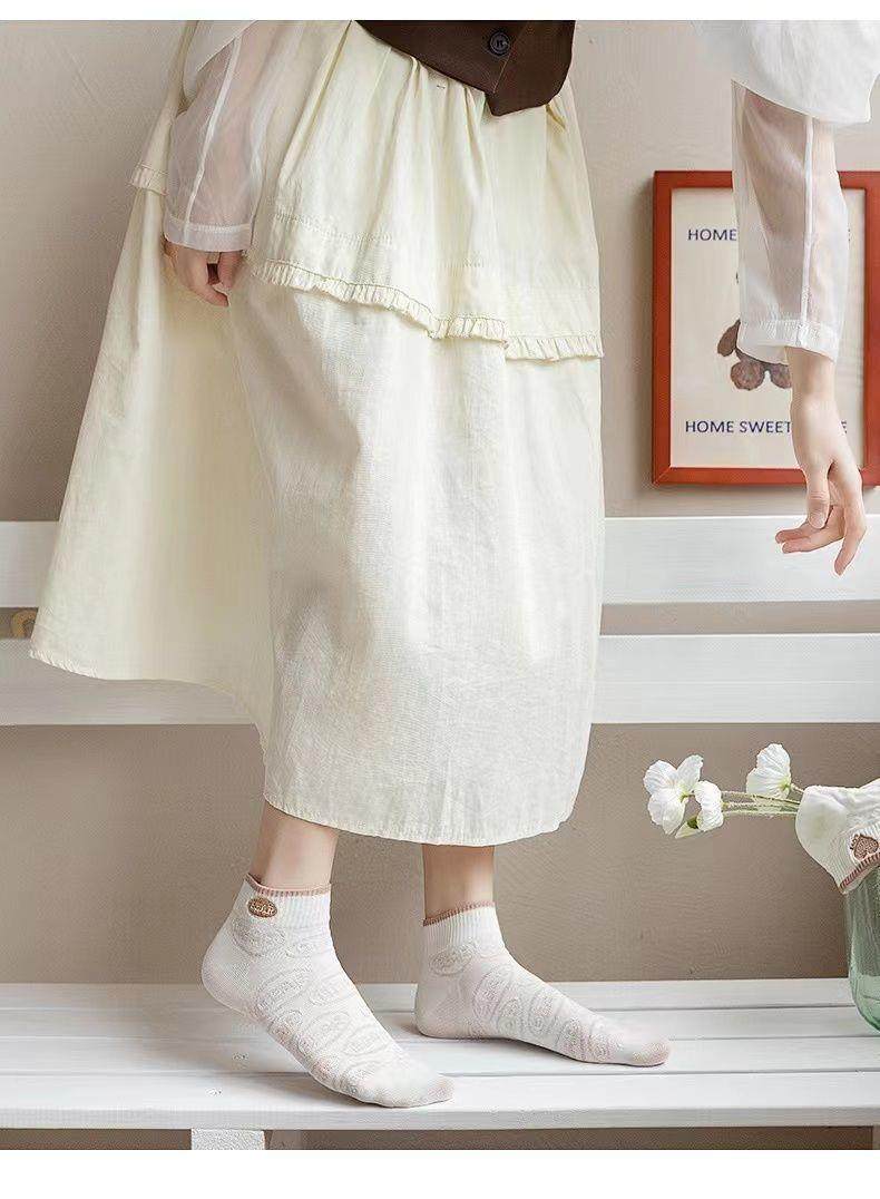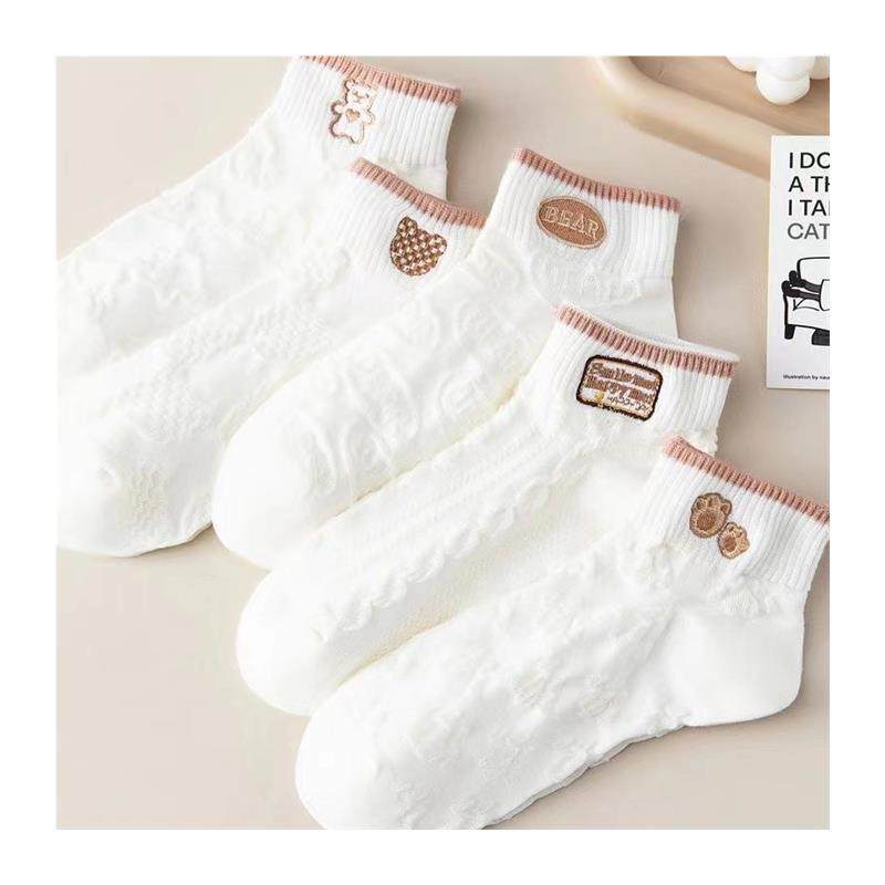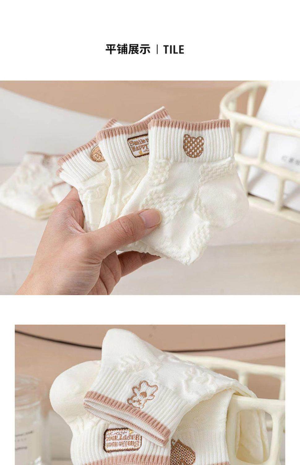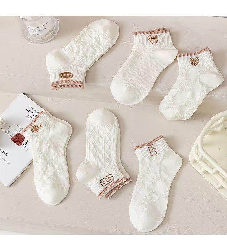 袜子女网红爆款短款潮百搭可爱小熊袜白色春夏季薄款低帮浅口船袜