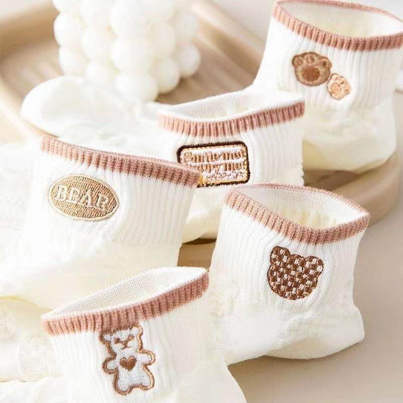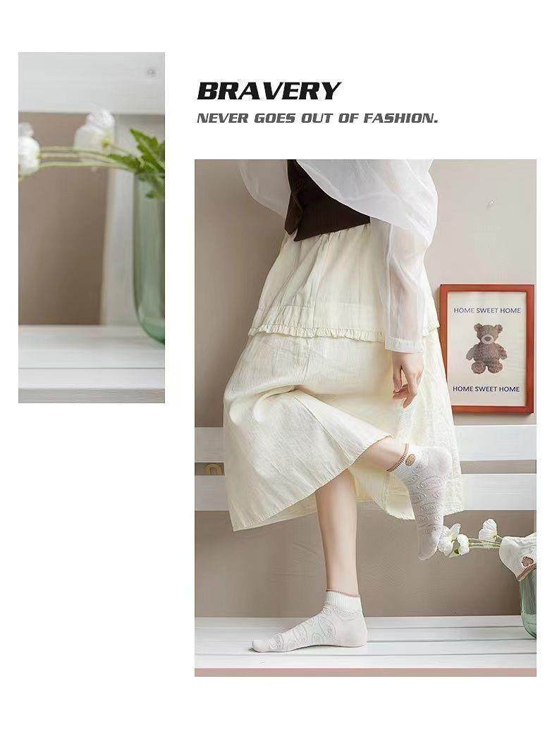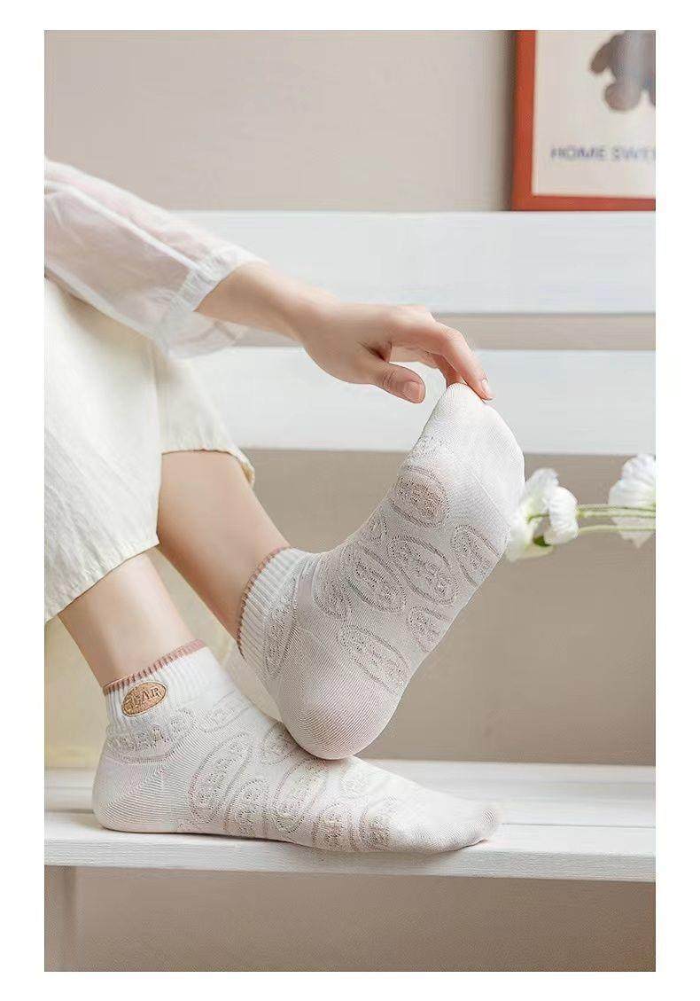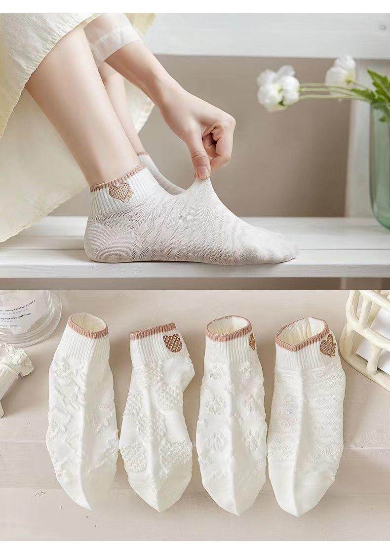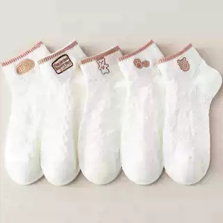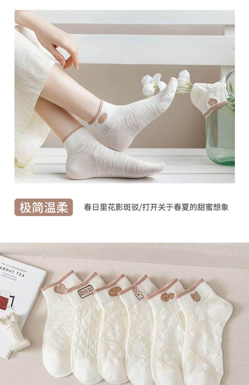 袜子女网红爆款短款潮百搭可爱小熊袜白色春夏季薄款低帮浅口船袜
