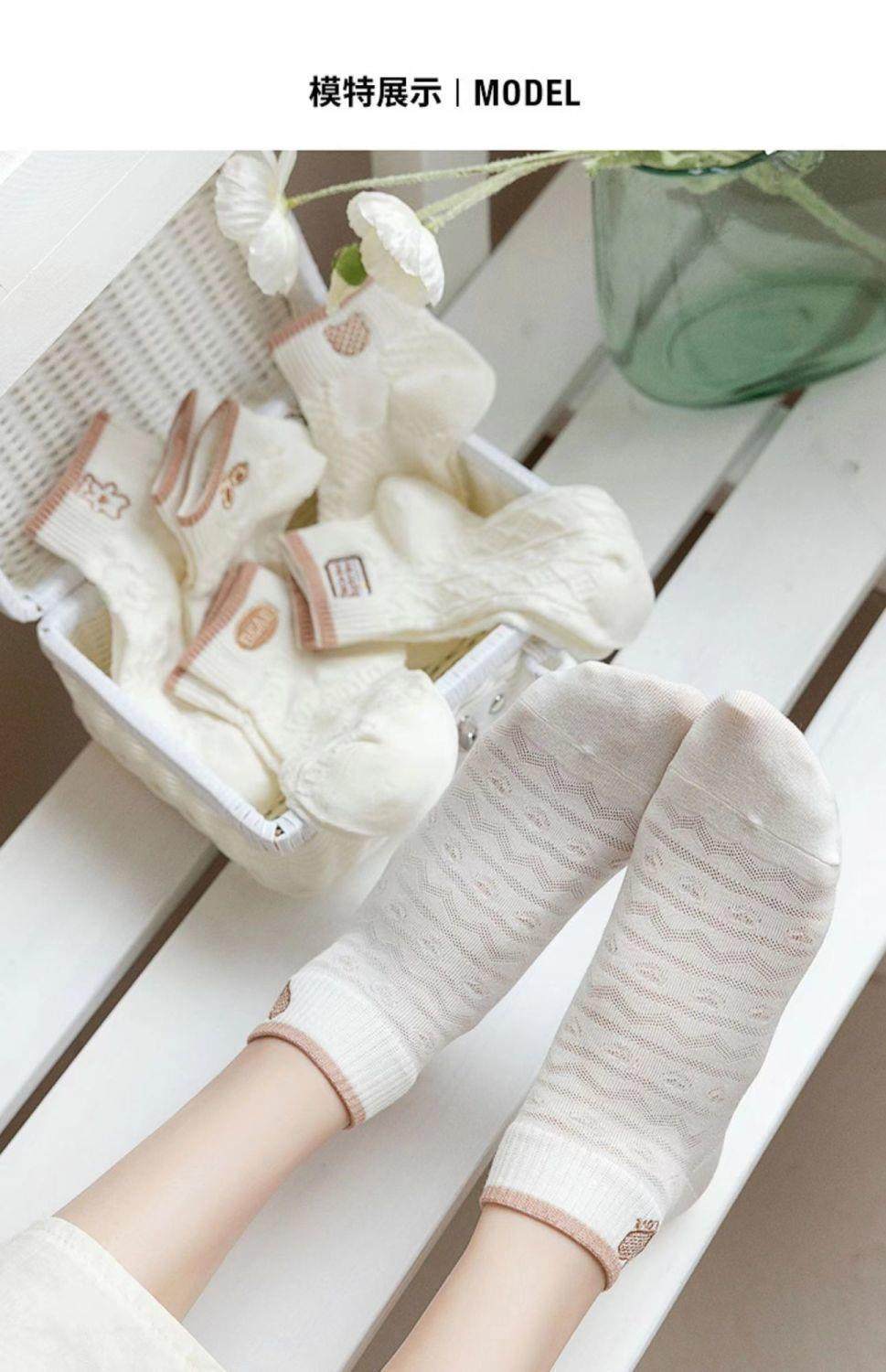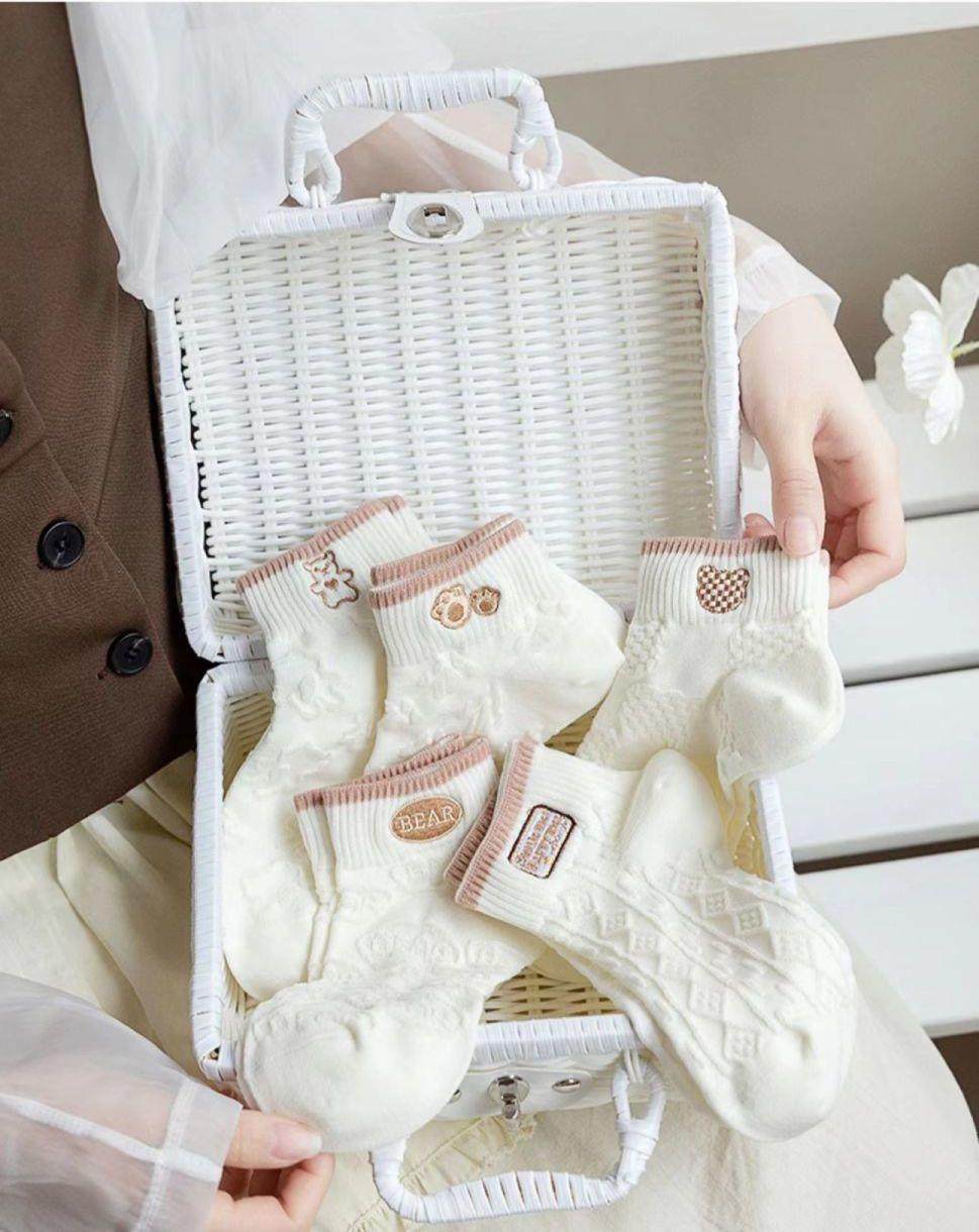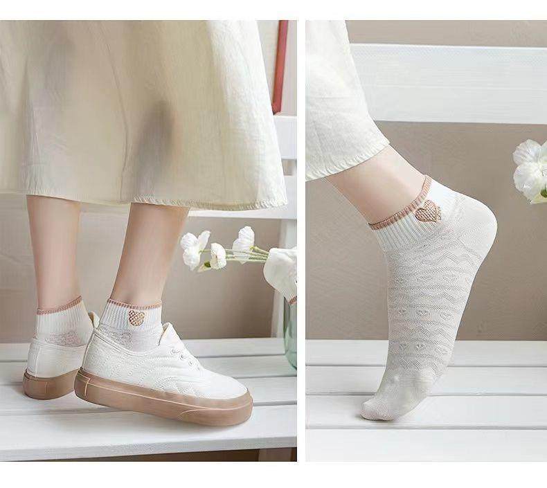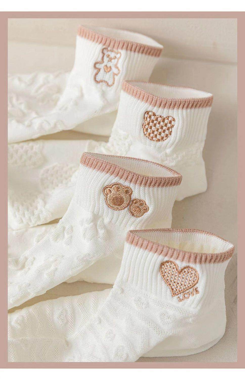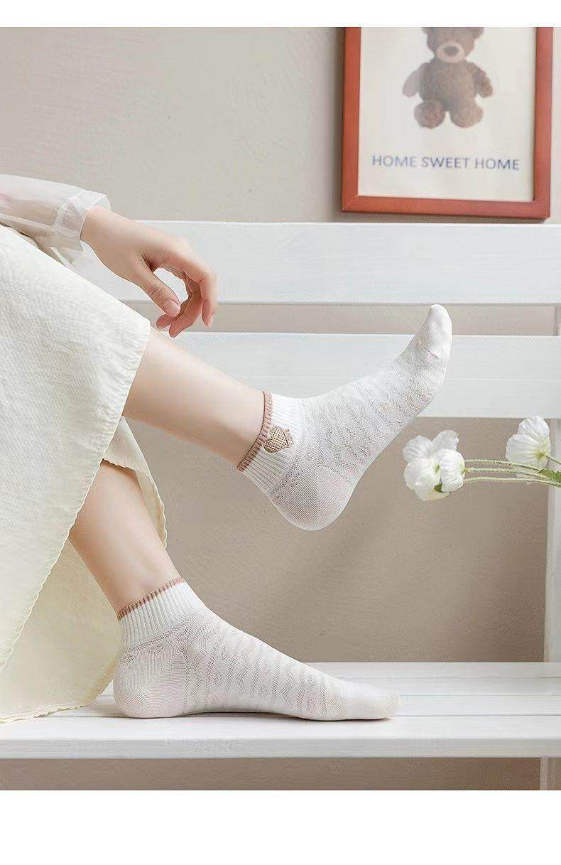 袜子女网红爆款短款潮百搭可爱小熊袜白色春夏季薄款低帮浅口船袜