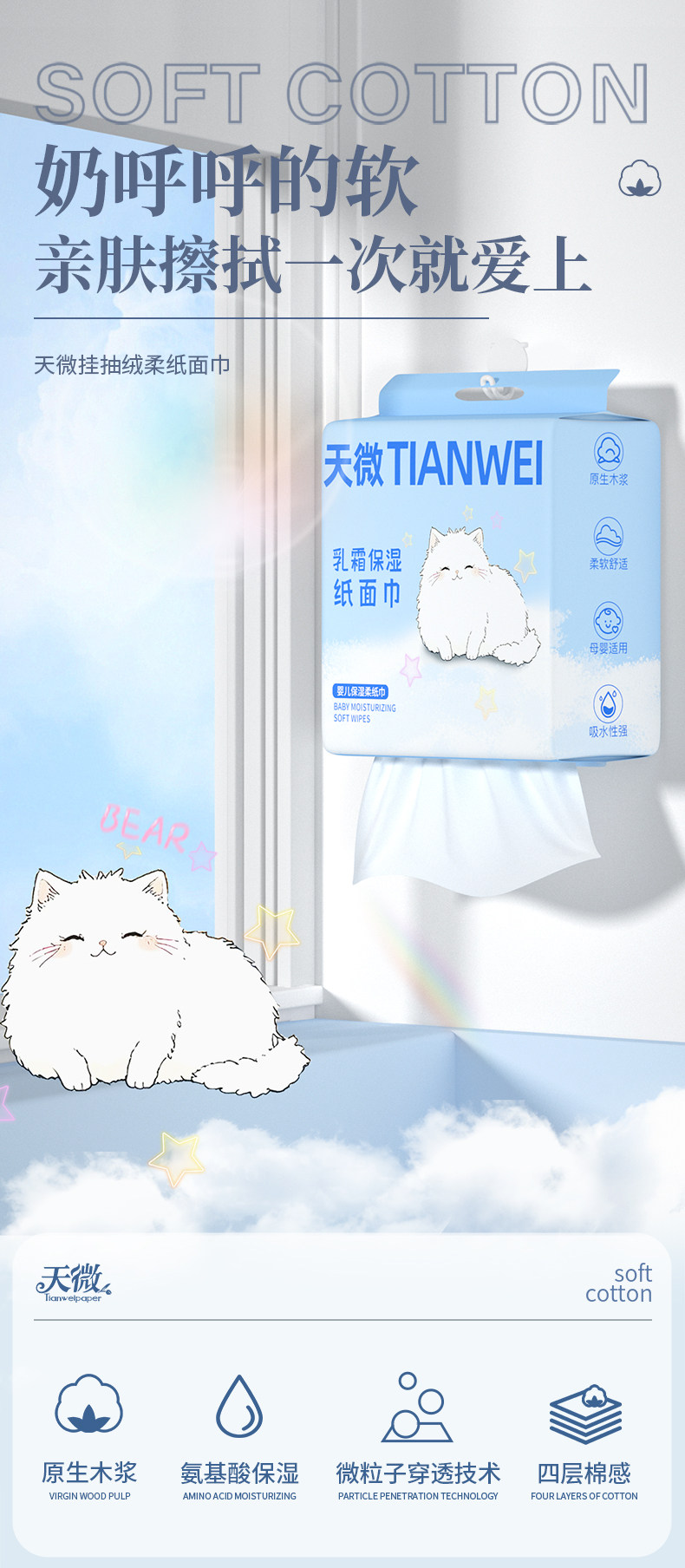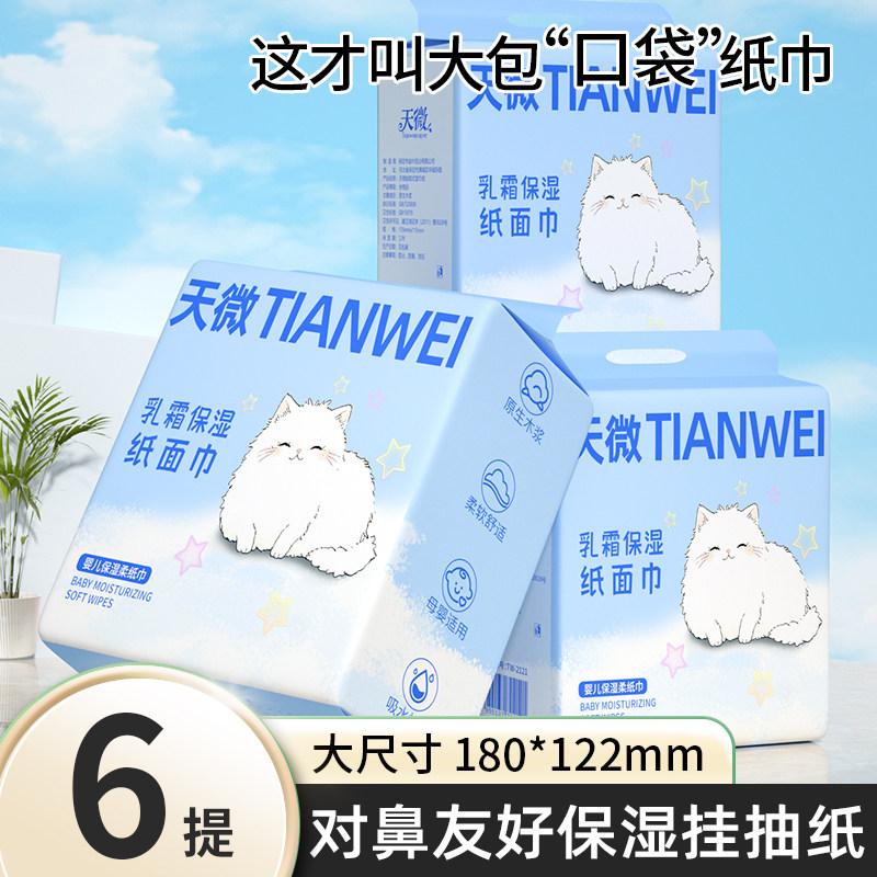 6大提乳霜纸婴儿云柔巾婴童乳霜纸巾保湿纸面巾纸悬挂式擦鼻涕纸