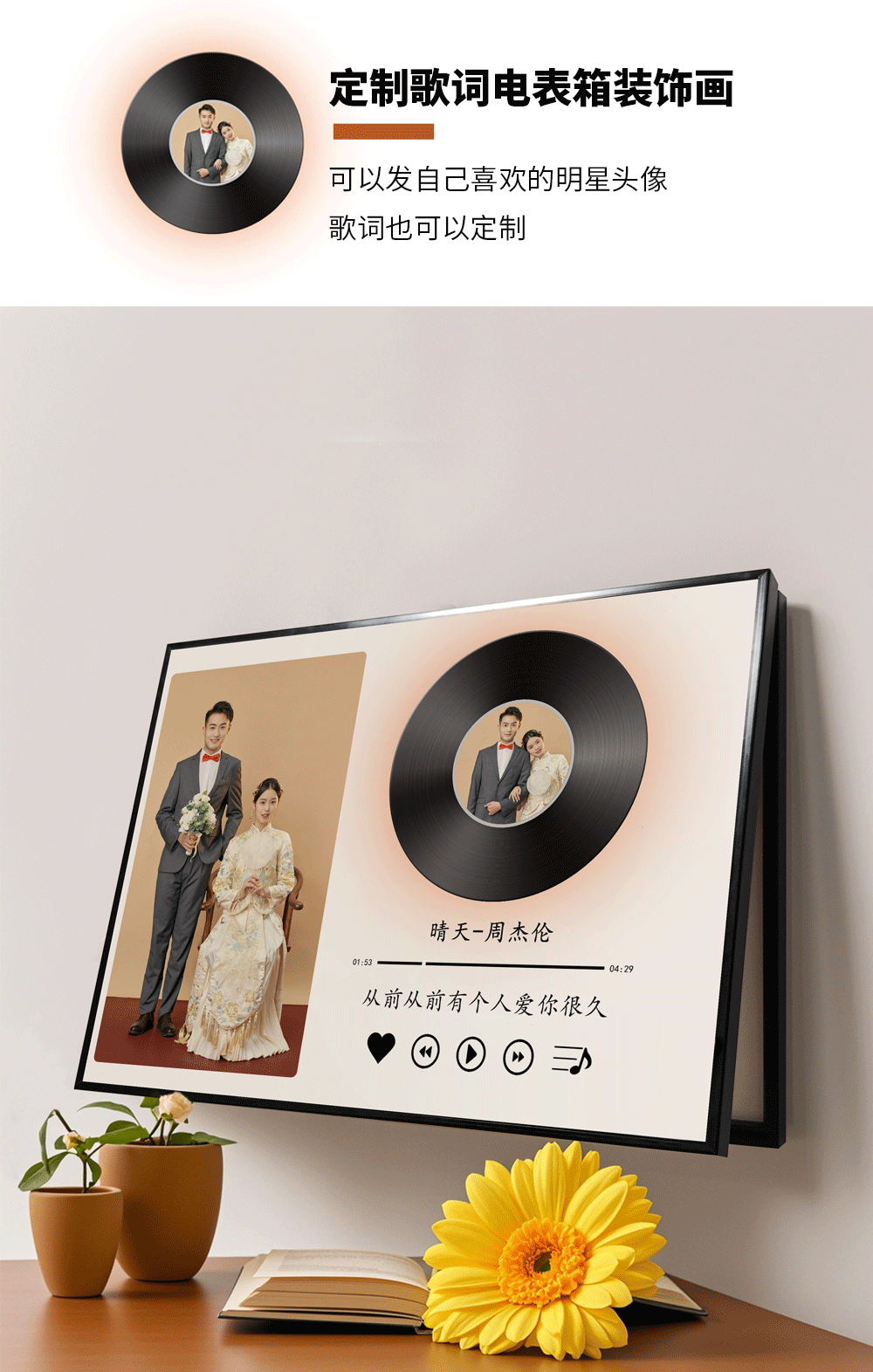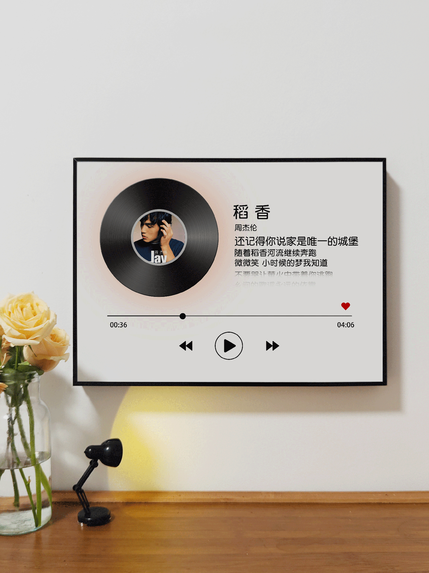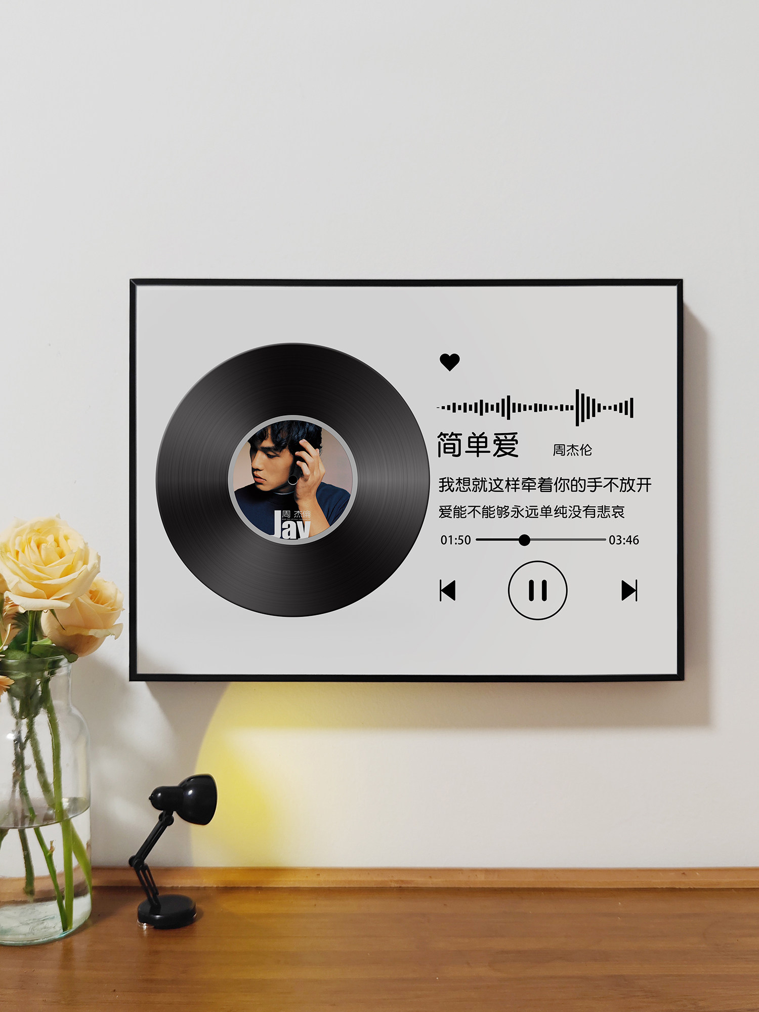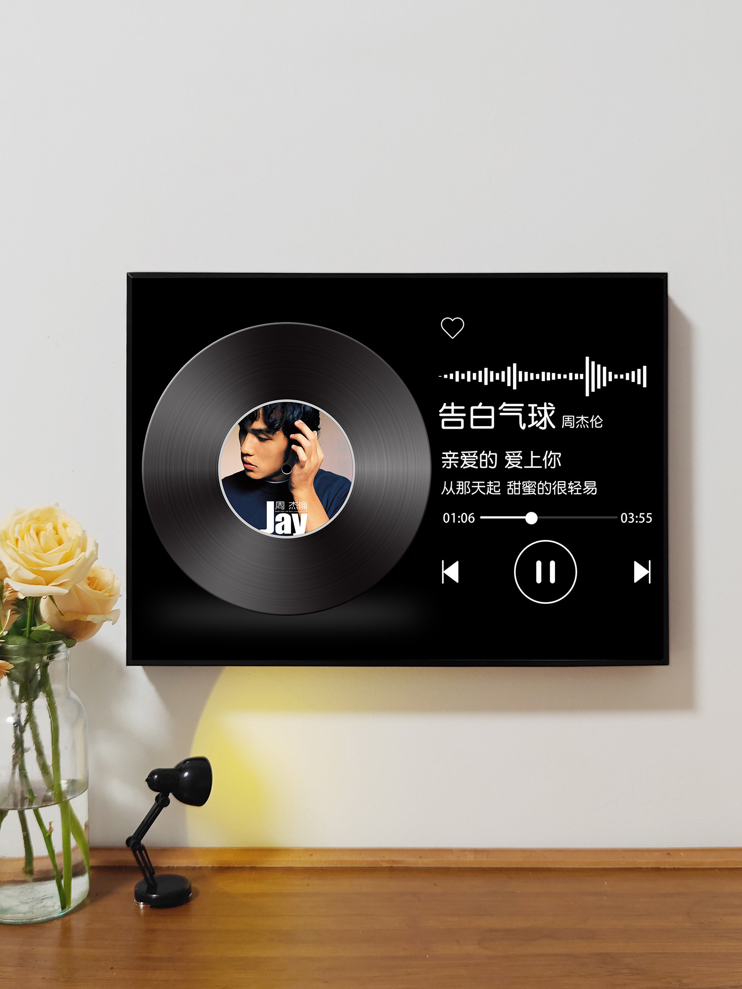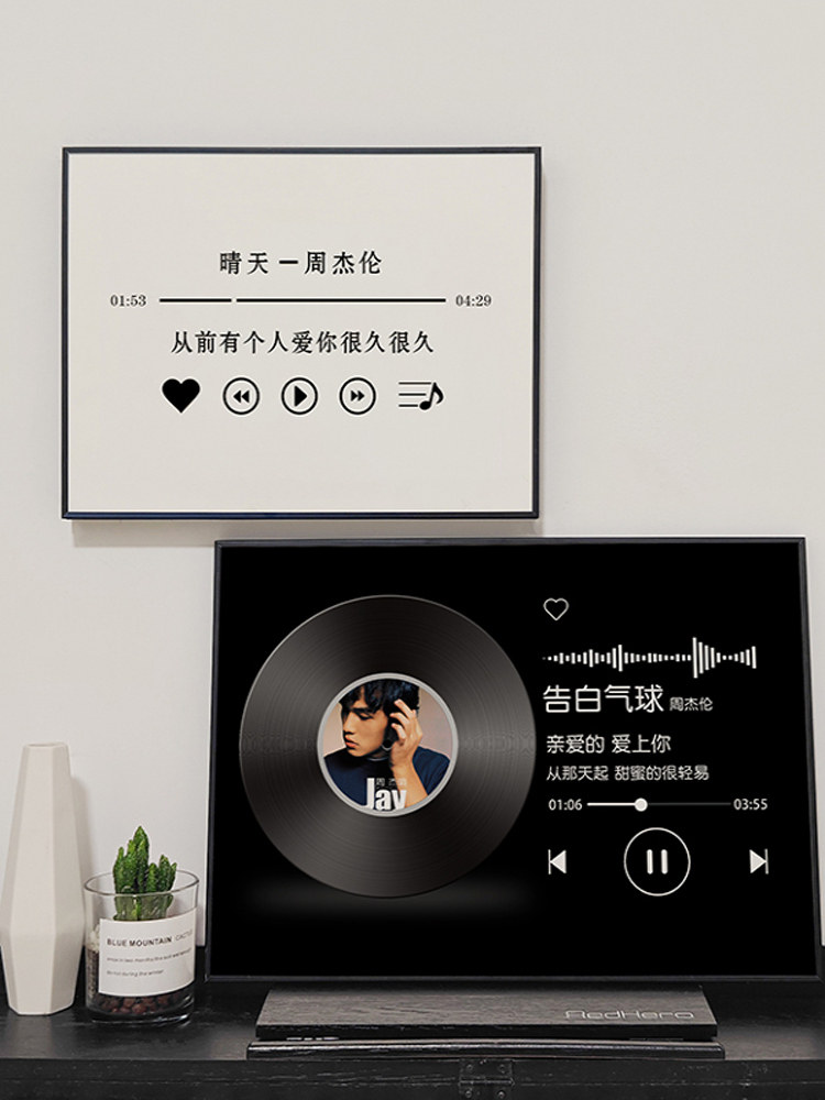 周杰伦歌词唱片黑白简约电表箱装饰画遮挡2025新款网红明星周边挂