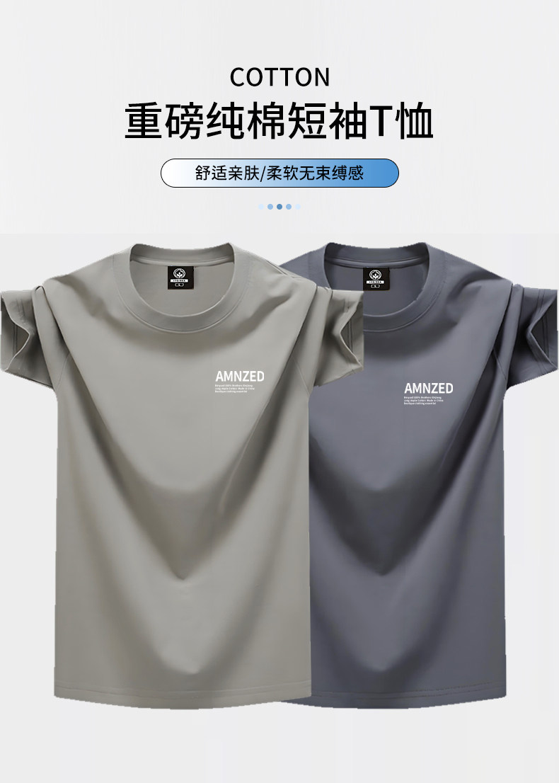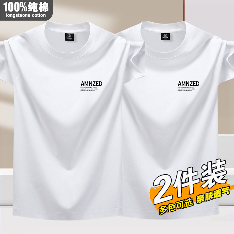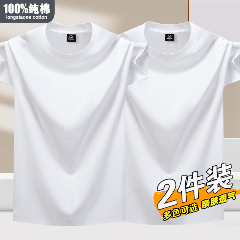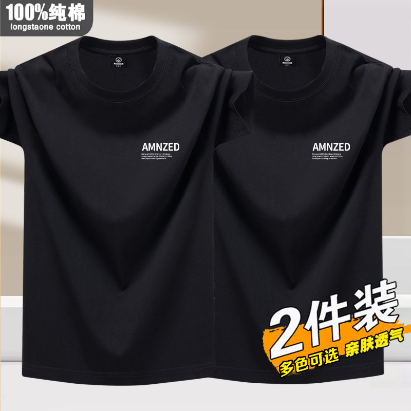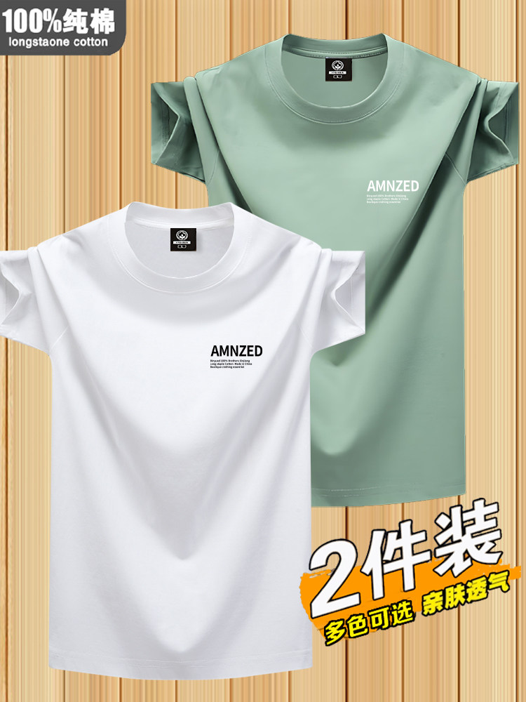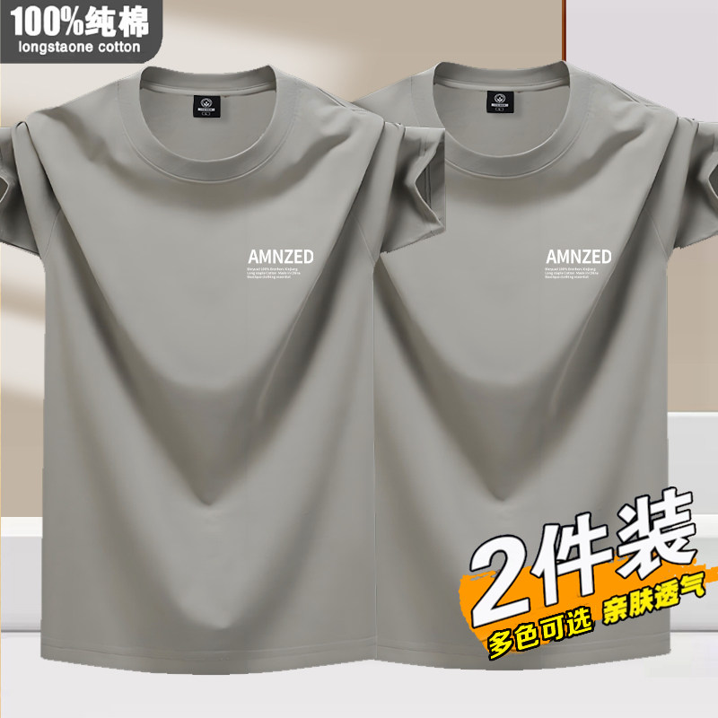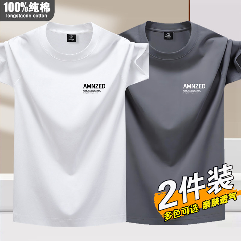 两件装100%棉短袖t恤男2025新款夏季薄款圆领宽松体恤上衣打底衫