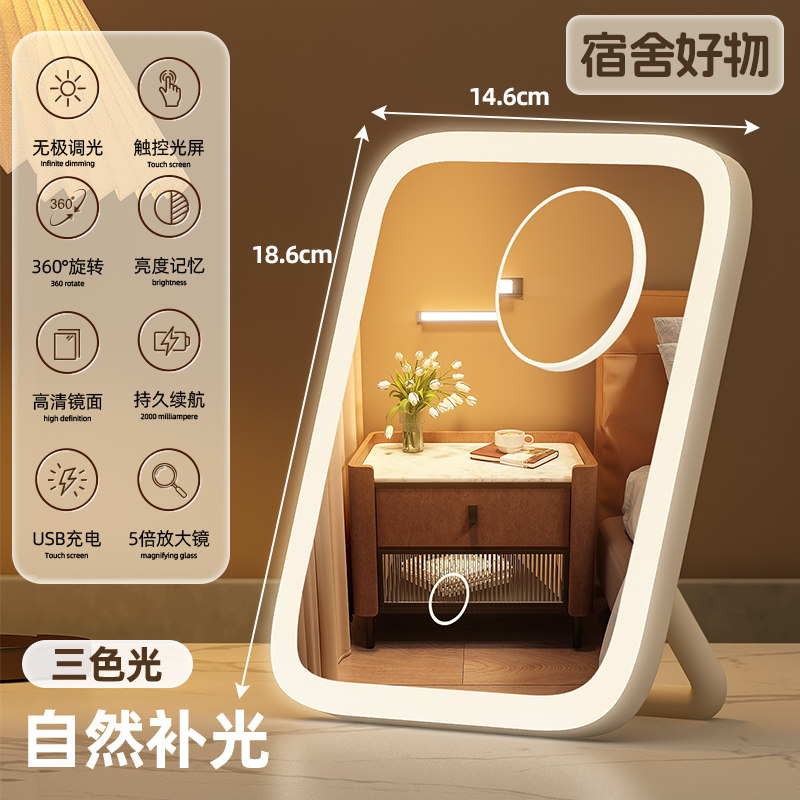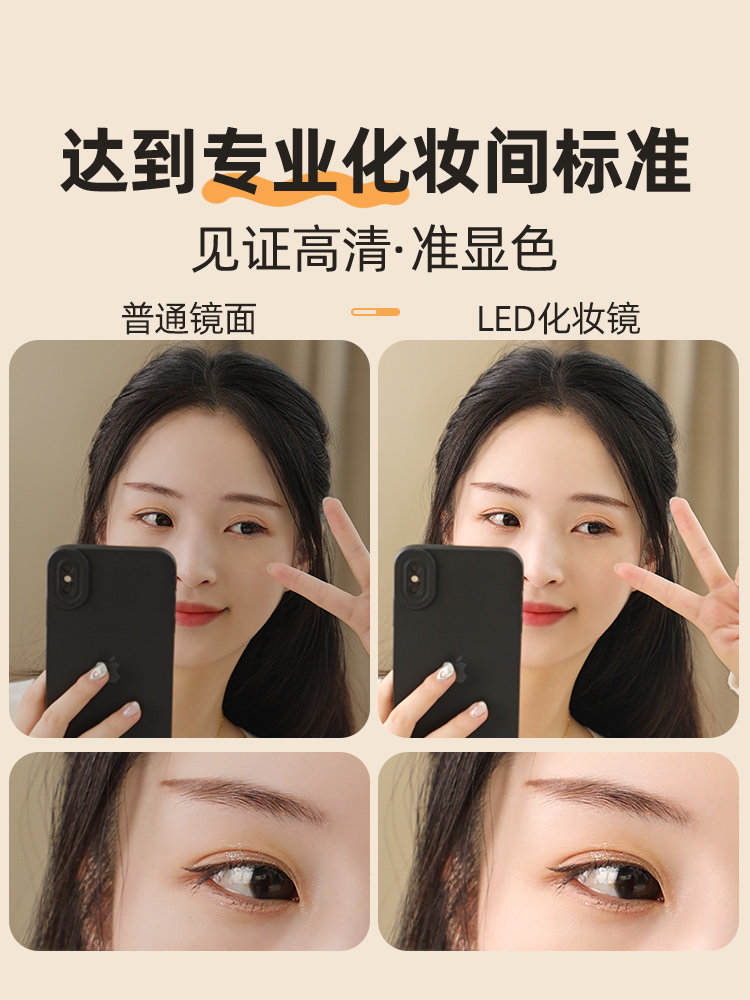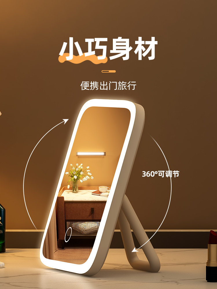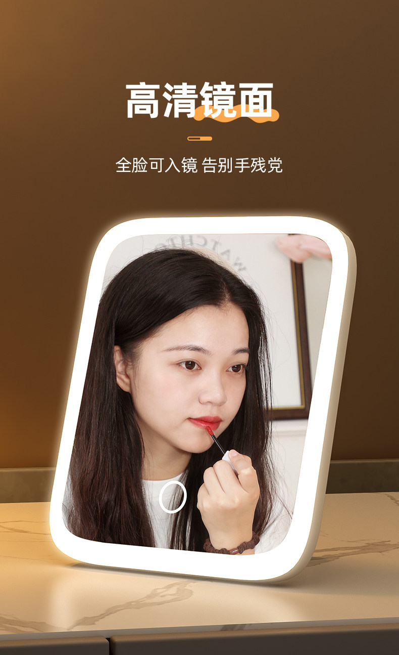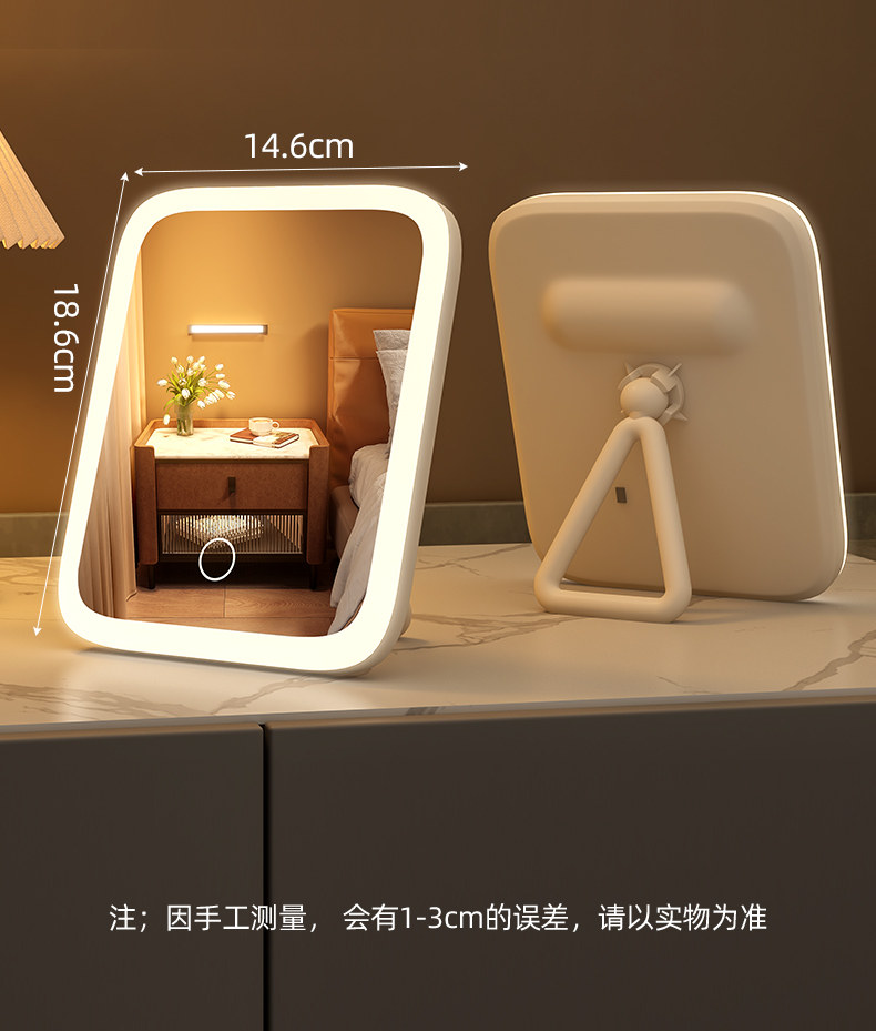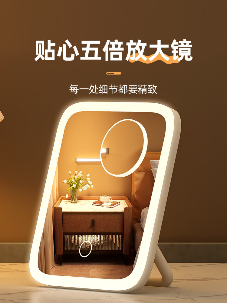 led化妆镜带灯台式女补光小镜子宿舍桌面可立便携小型家用梳妆镜