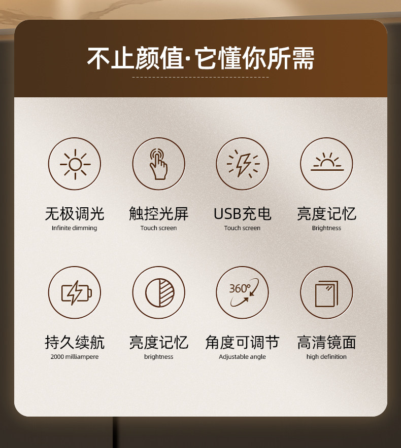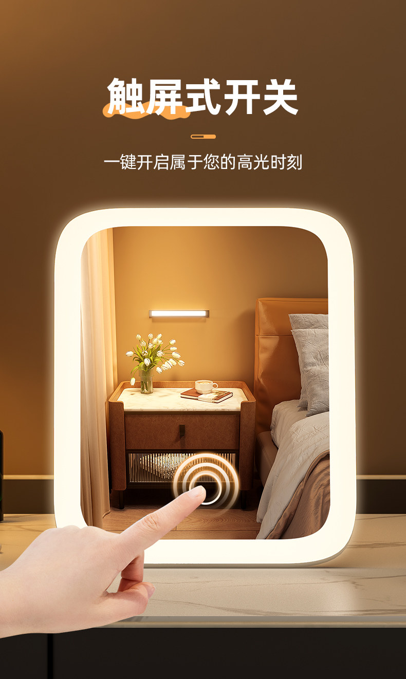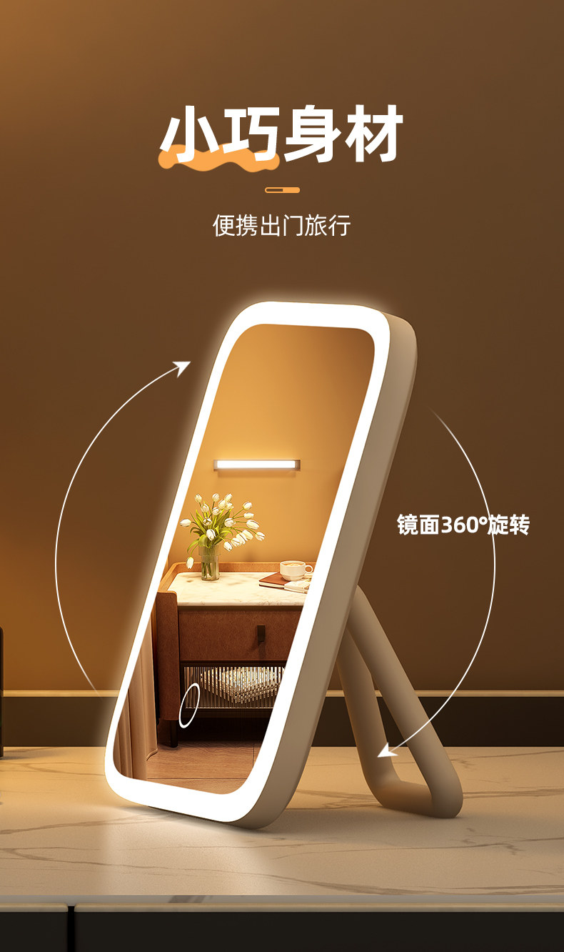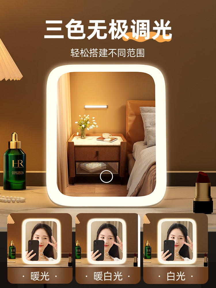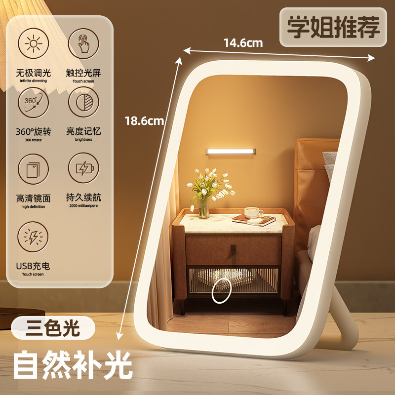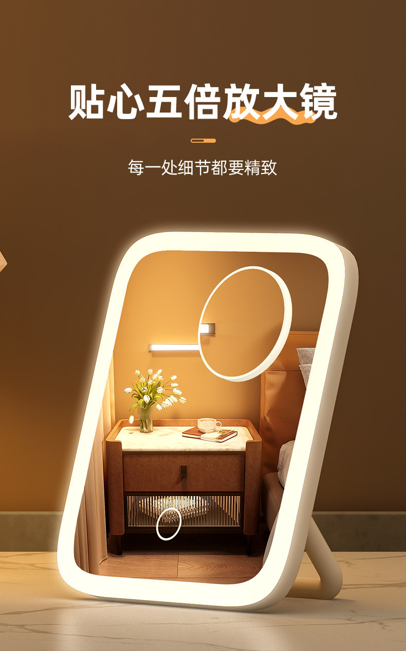 led化妆镜带灯台式女补光小镜子宿舍桌面可立便携小型家用梳妆镜
