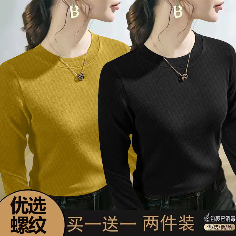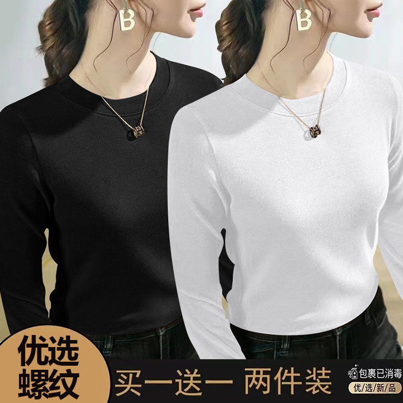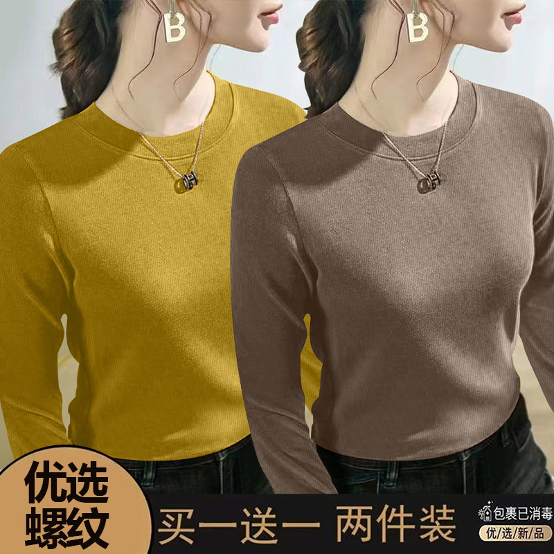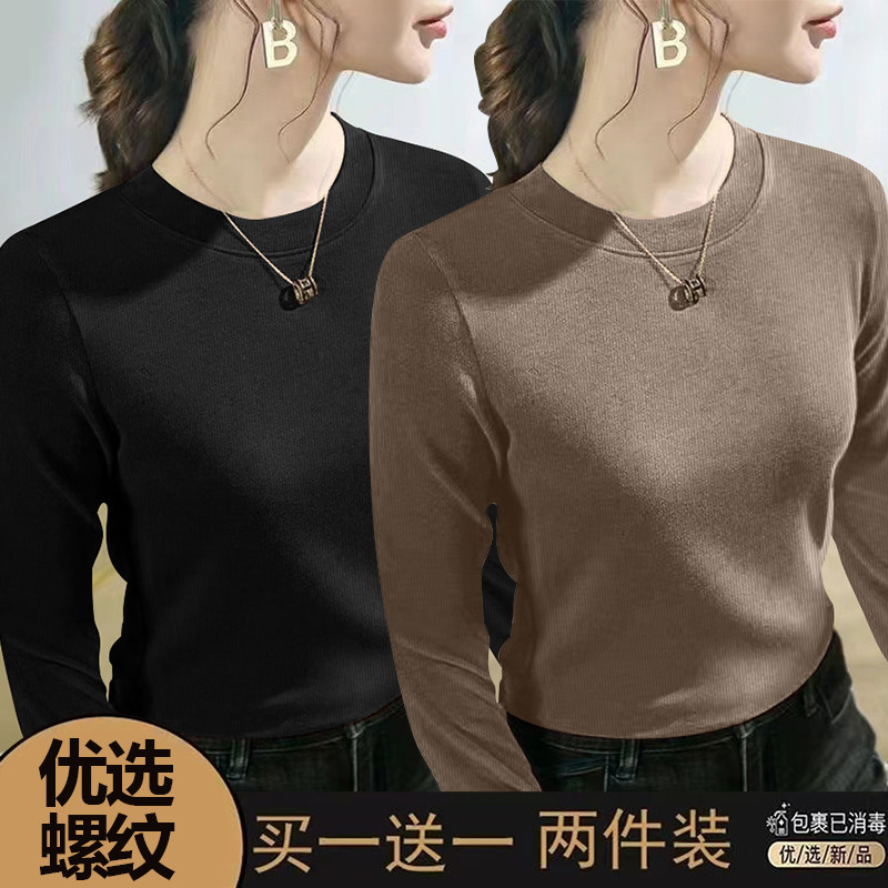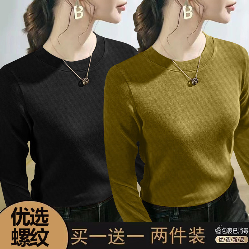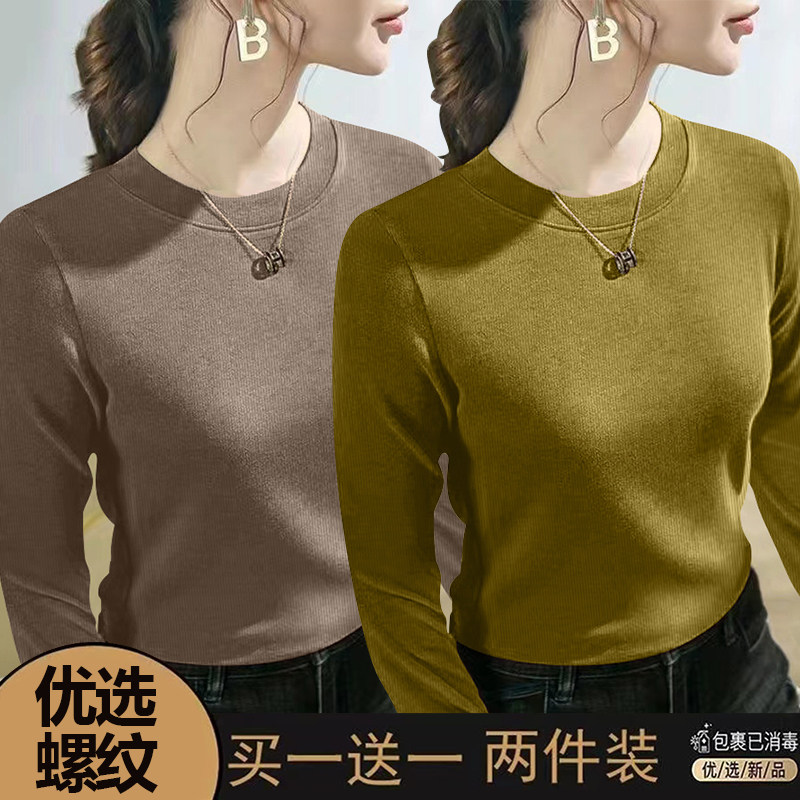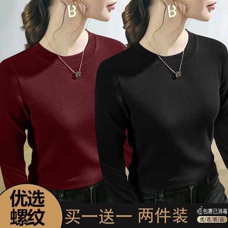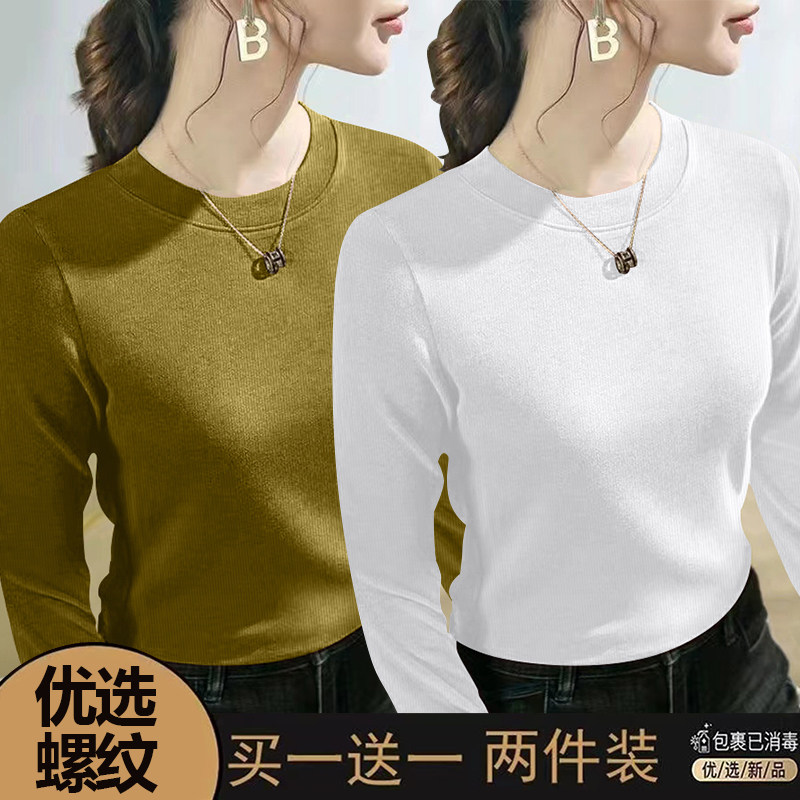 螺纹长袖t恤女士2024春秋季新款爆款时尚圆领百搭正肩打底衫上衣