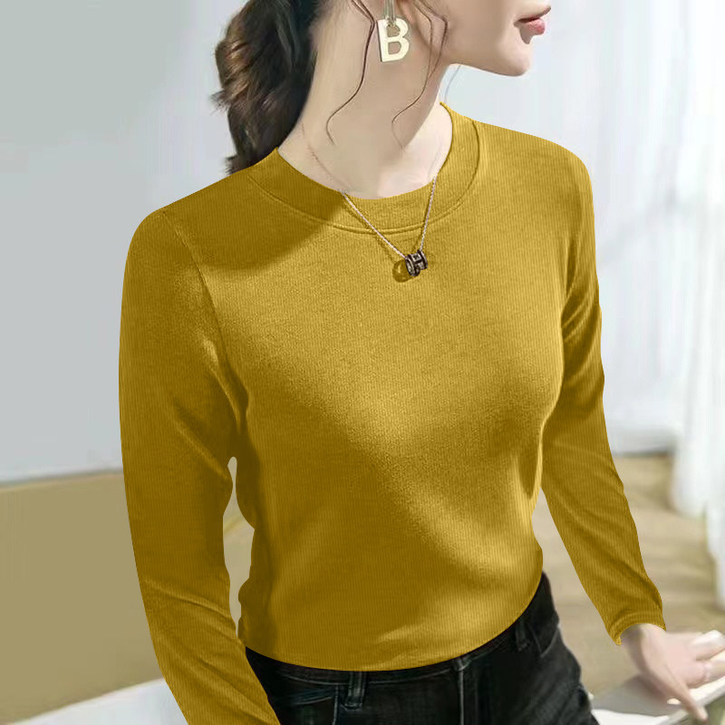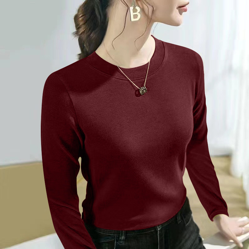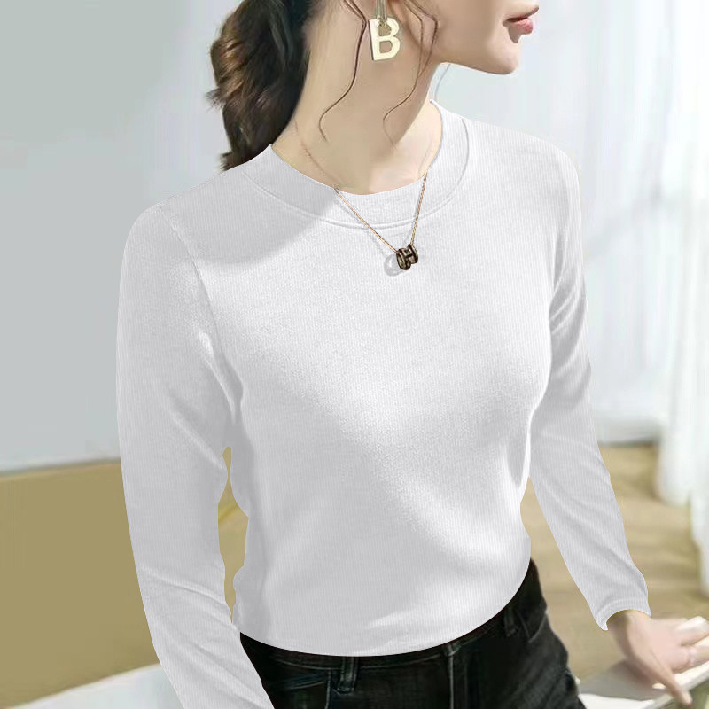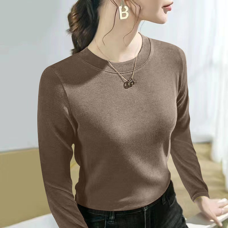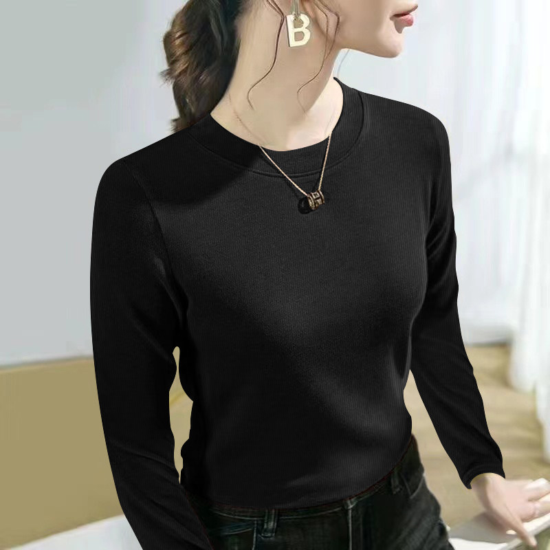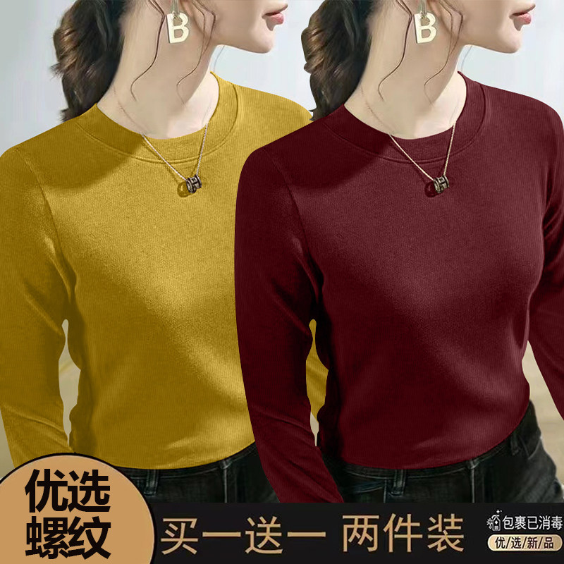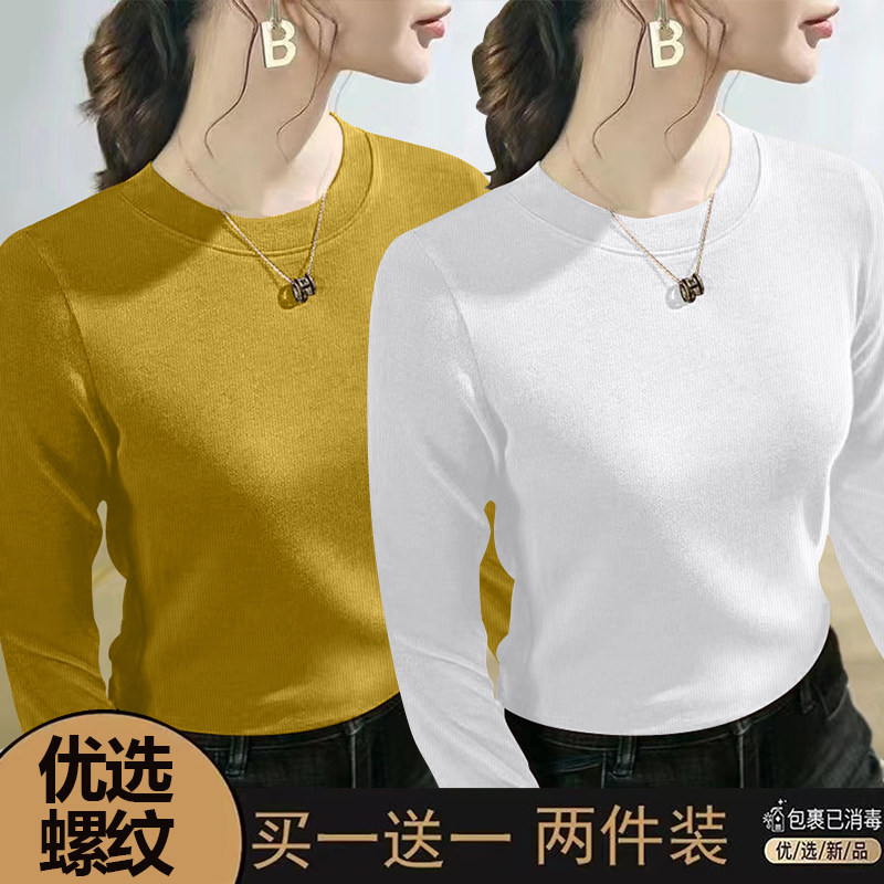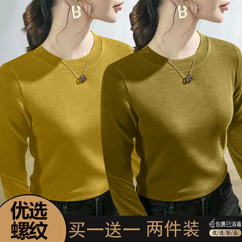 螺纹长袖t恤女士2024春秋季新款爆款时尚圆领百搭正肩打底衫上衣