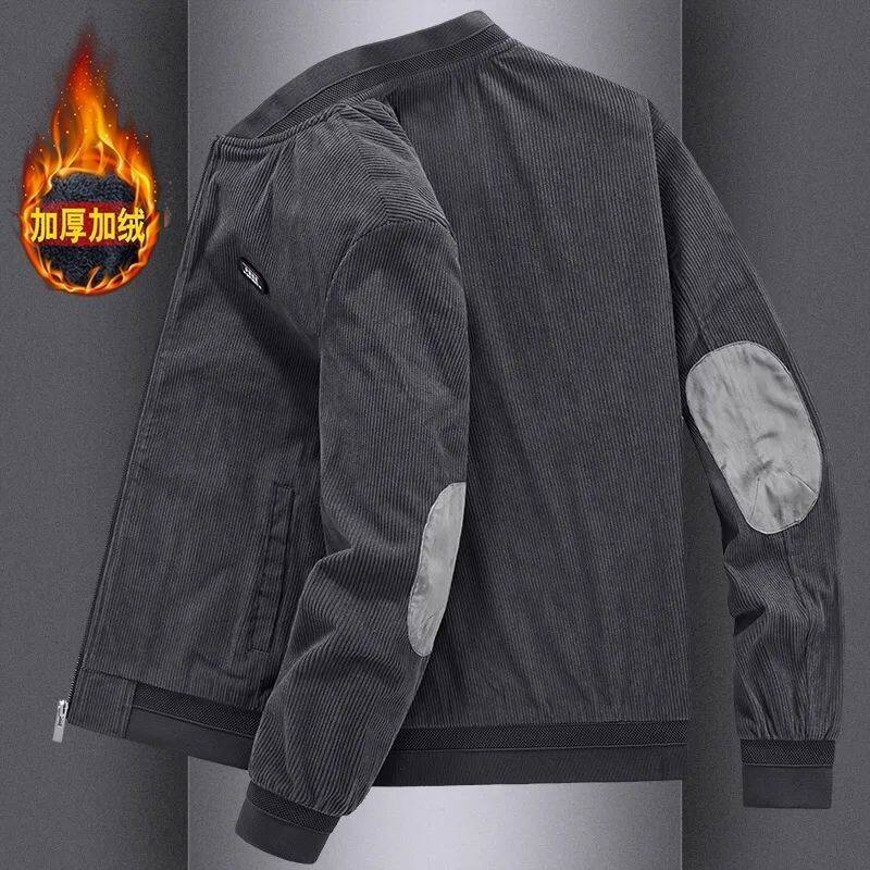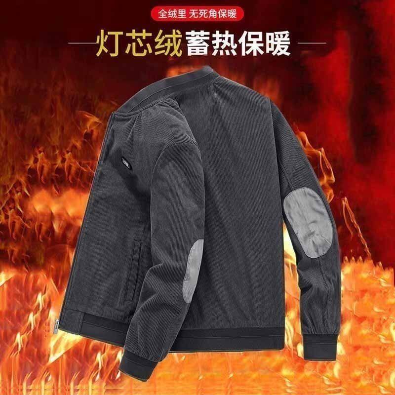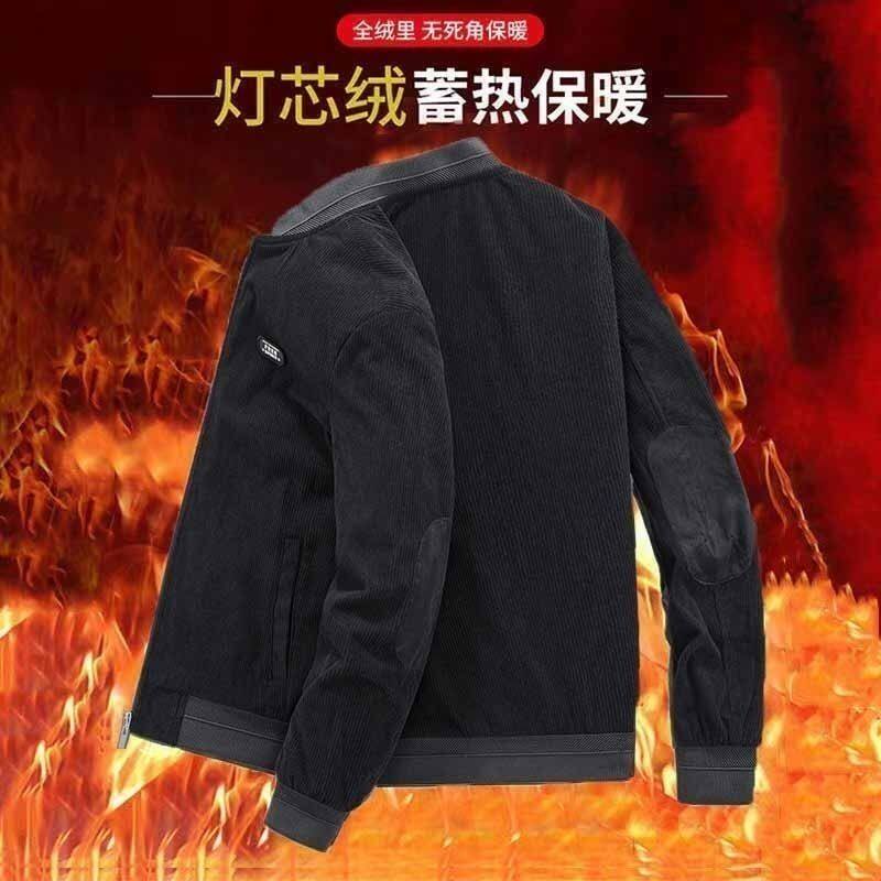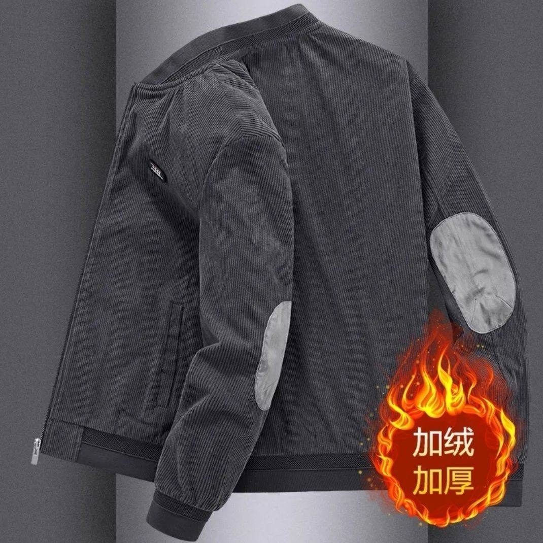 加绒加厚外套男2025秋冬季新款工装宽松中年男灯芯绒复古夹克男潮