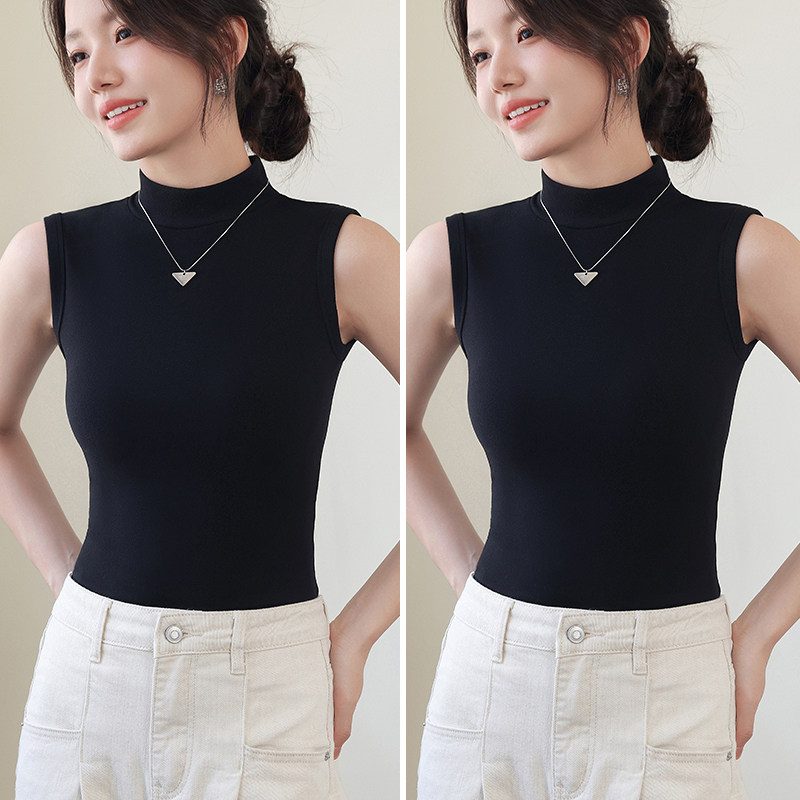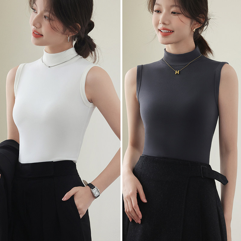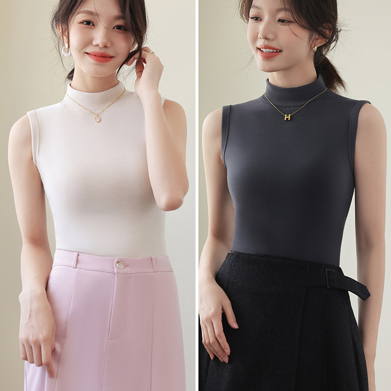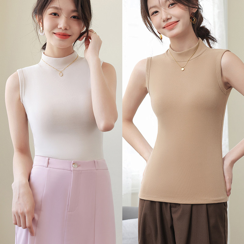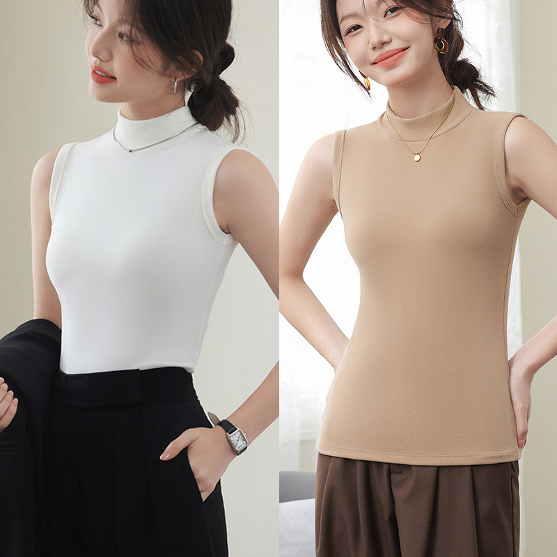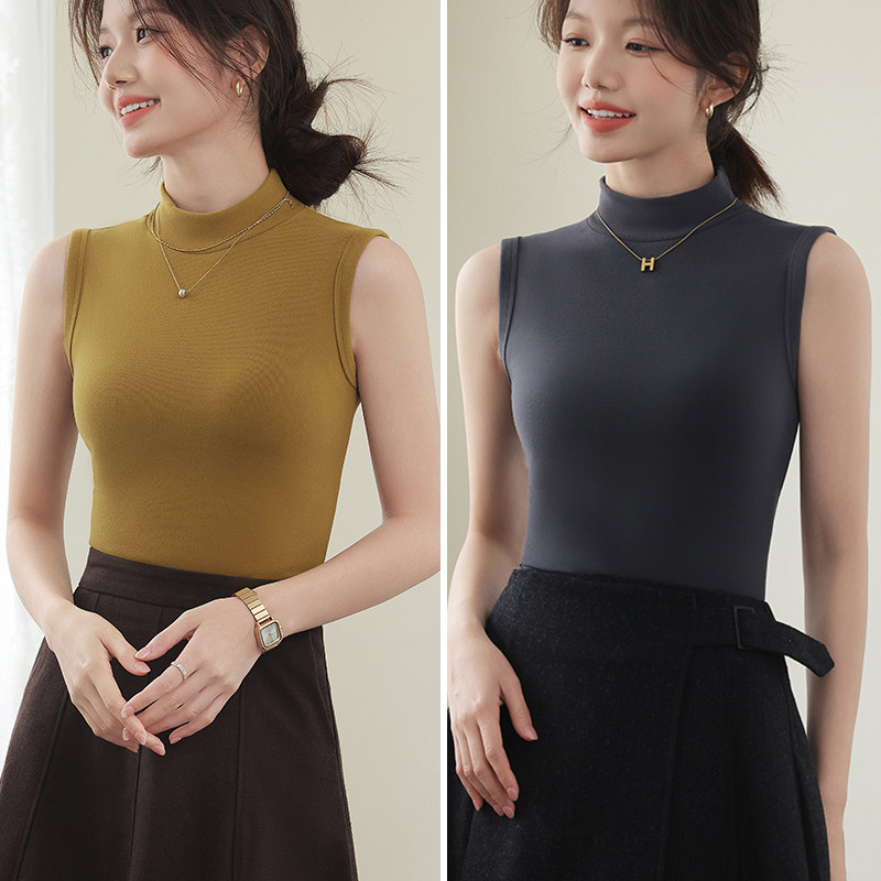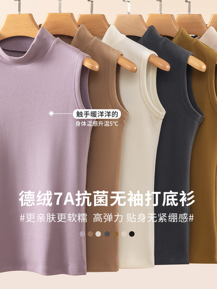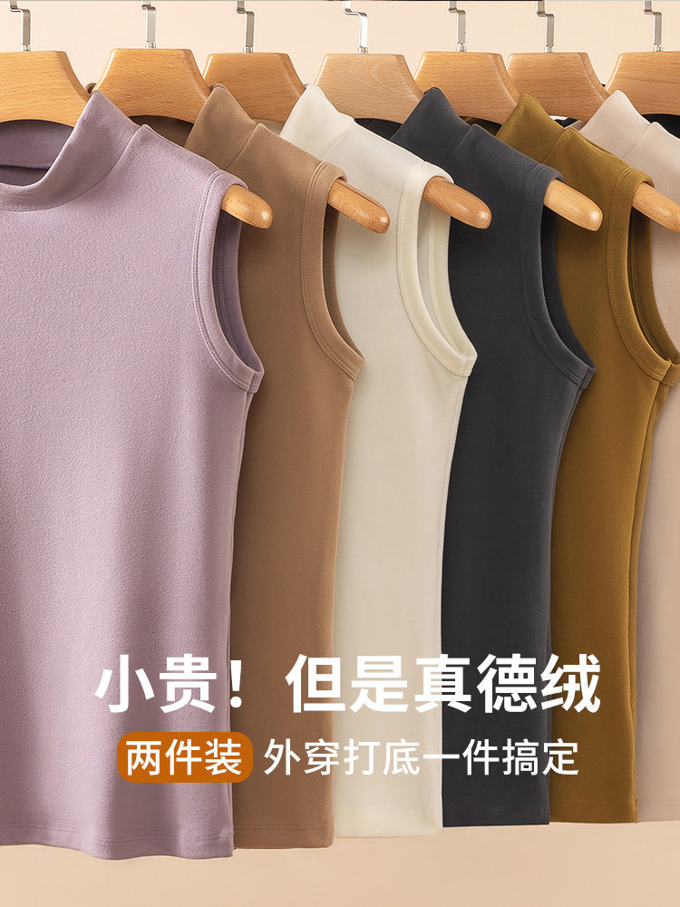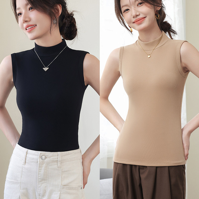 德绒打底衫女半高领内搭加绒加厚秋冬季弹力无袖背心百搭外穿上衣