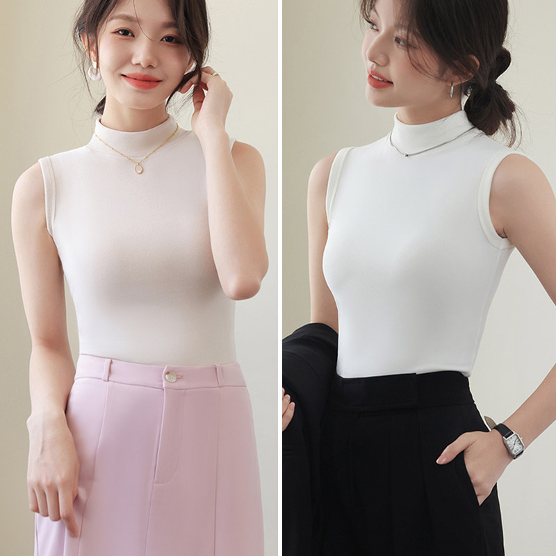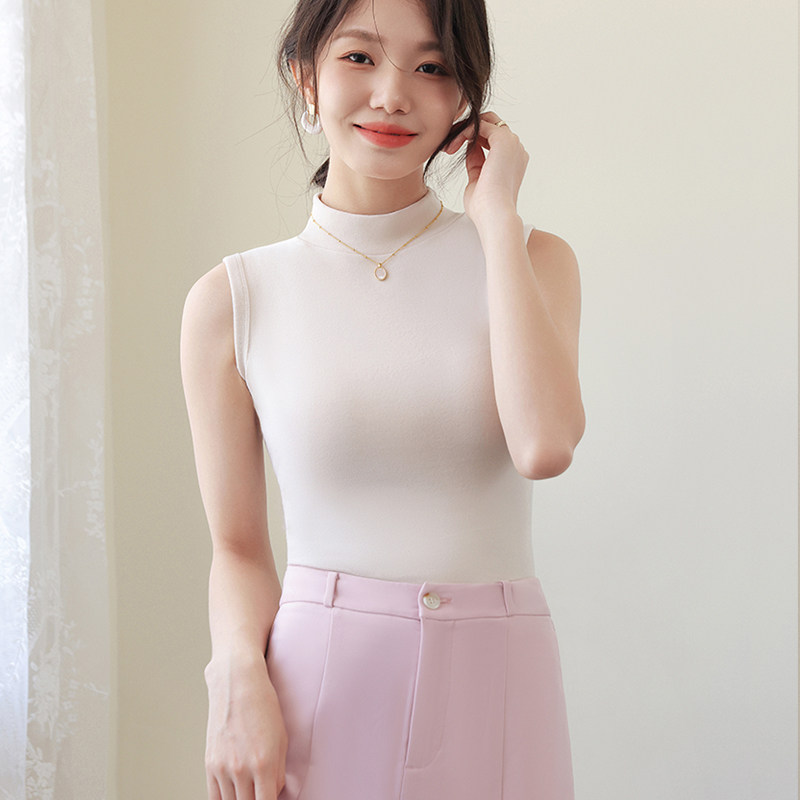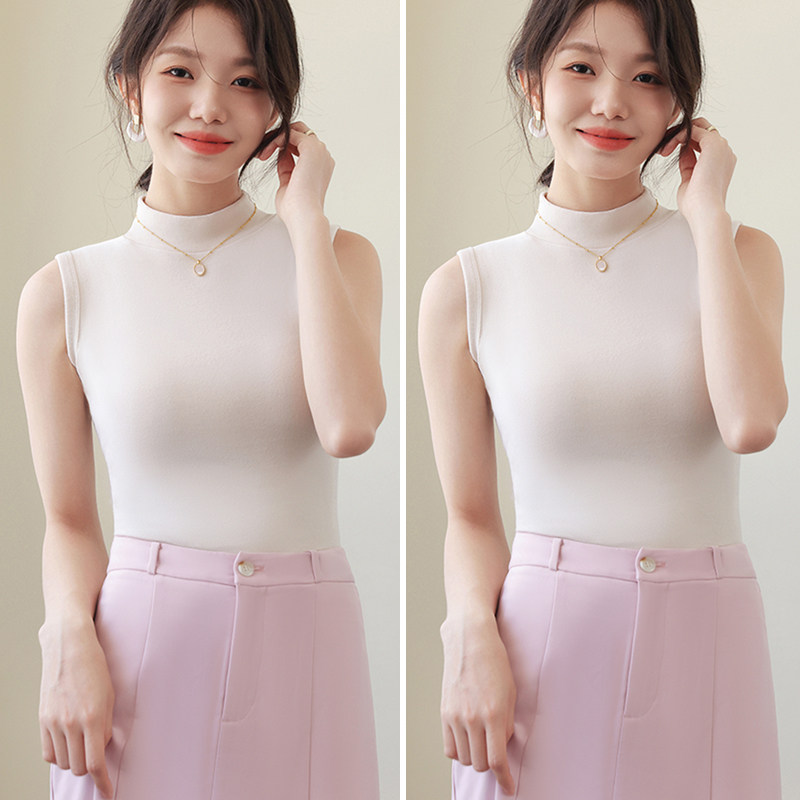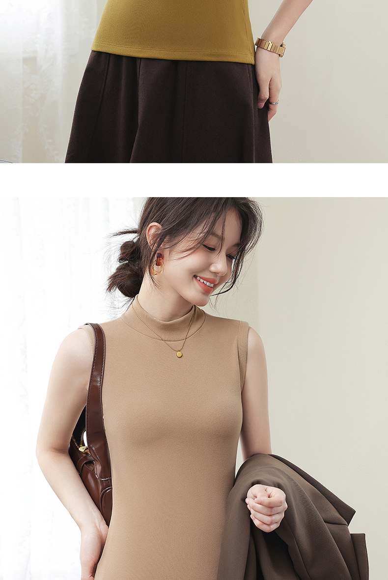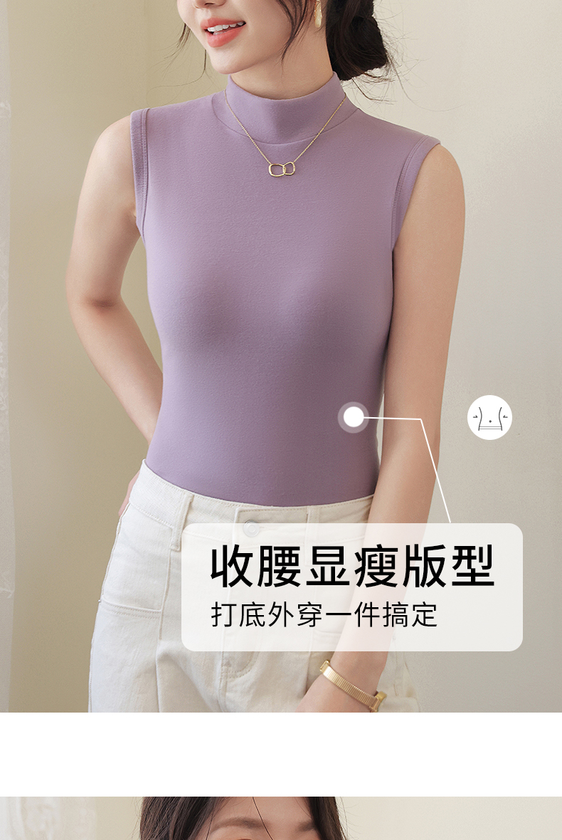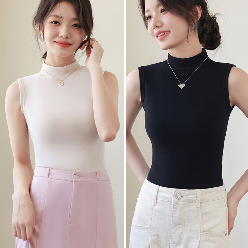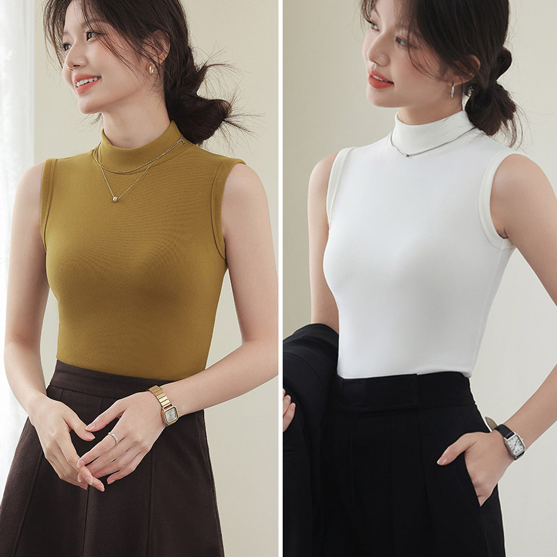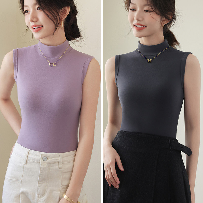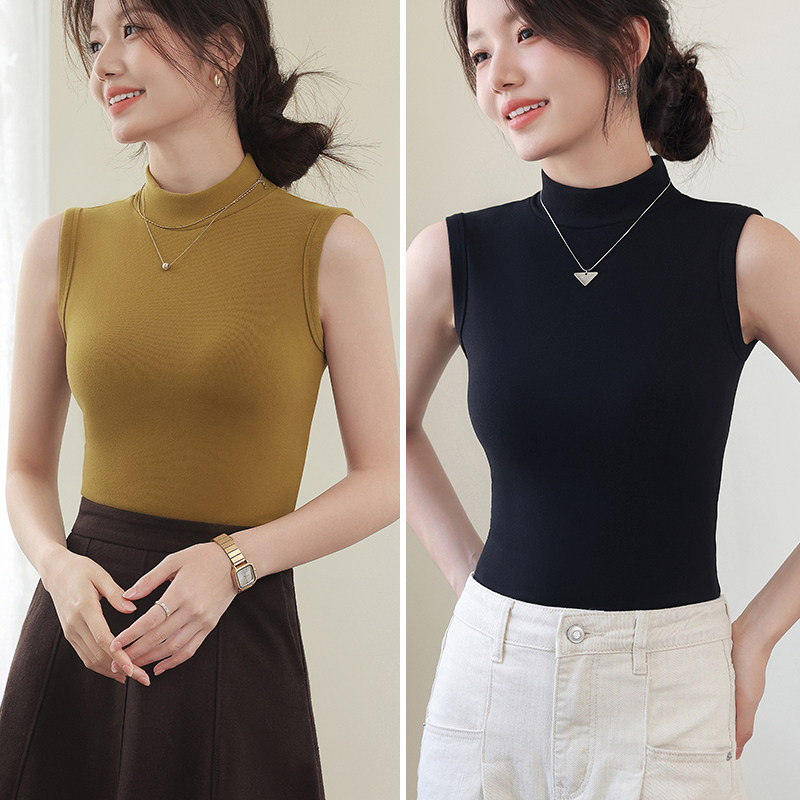 德绒打底衫女半高领内搭加绒加厚秋冬季弹力无袖背心百搭外穿上衣