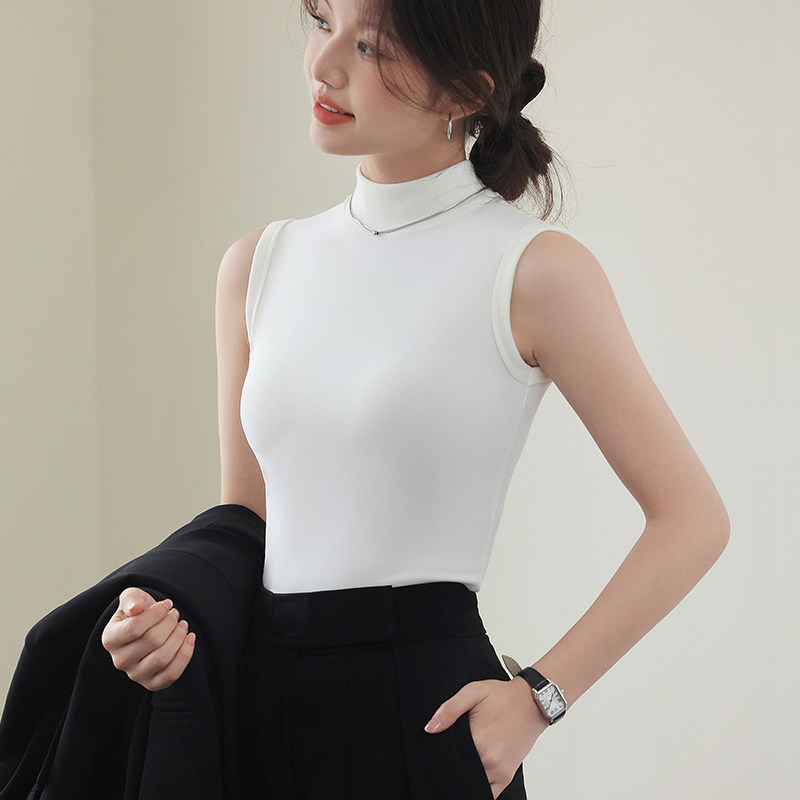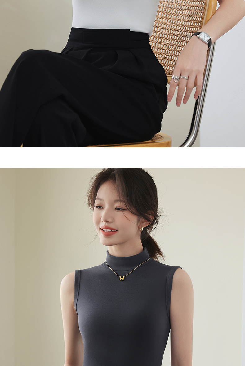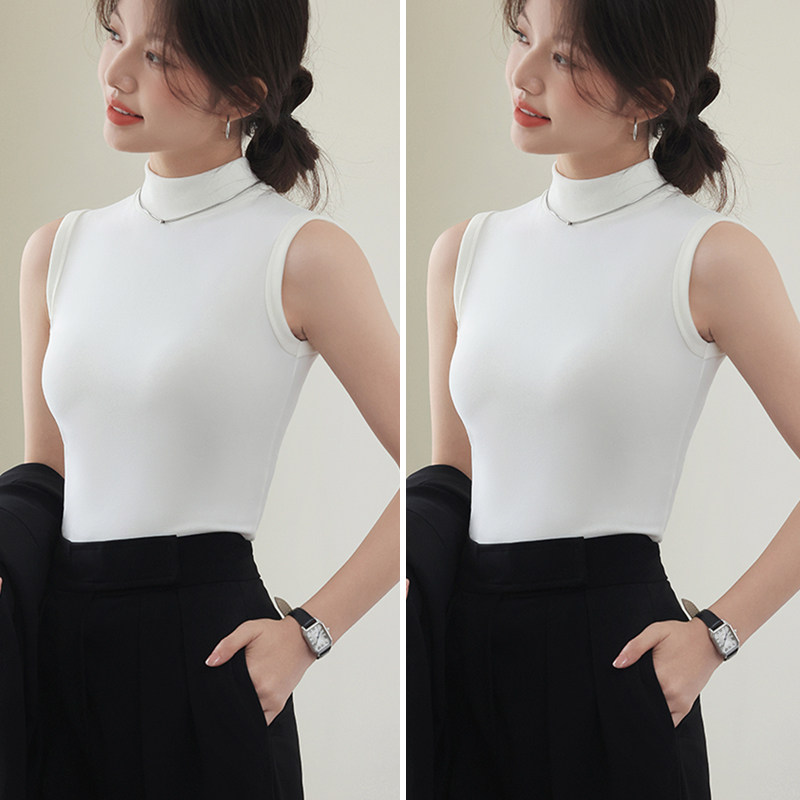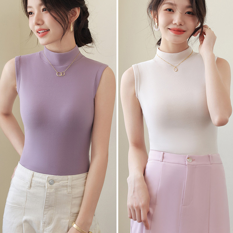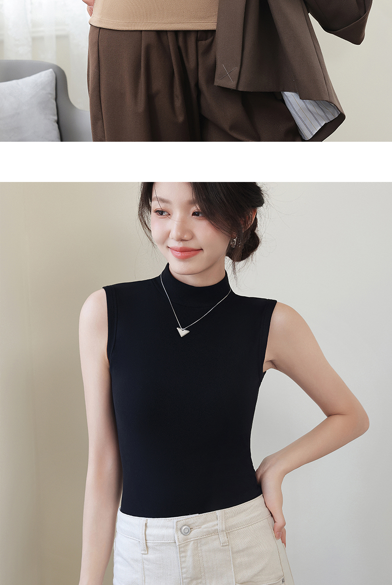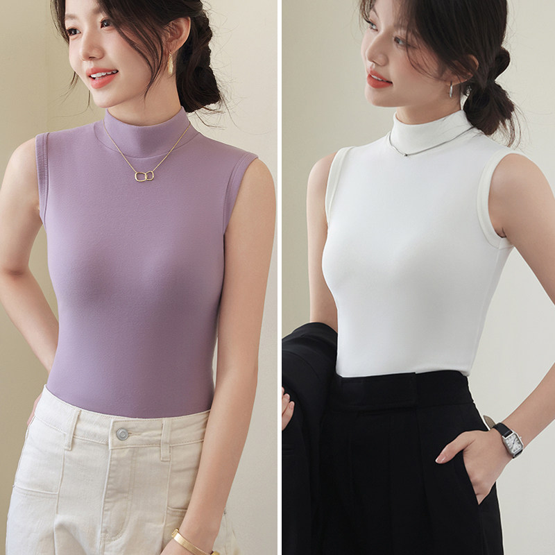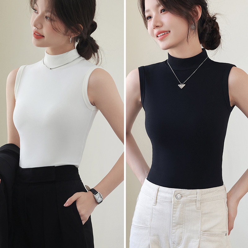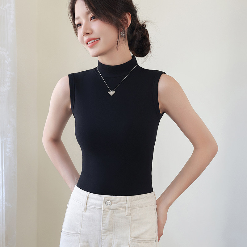 德绒打底衫女半高领内搭加绒加厚秋冬季弹力无袖背心百搭外穿上衣