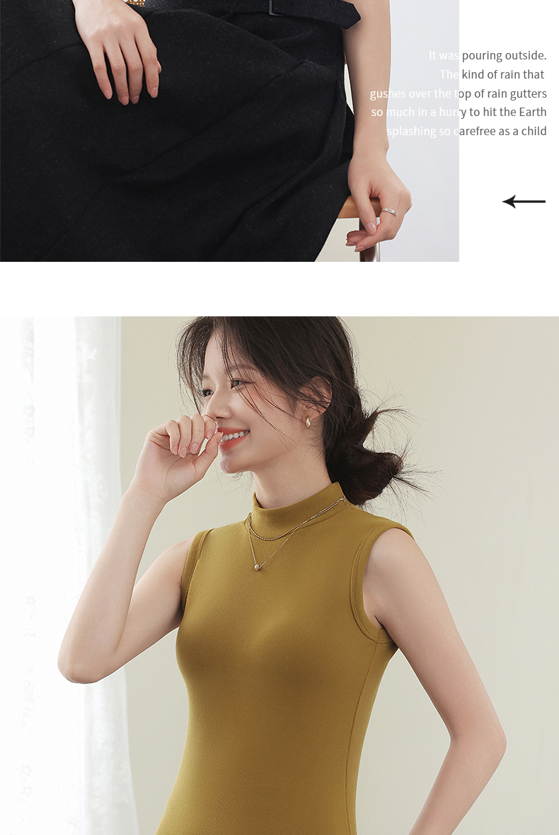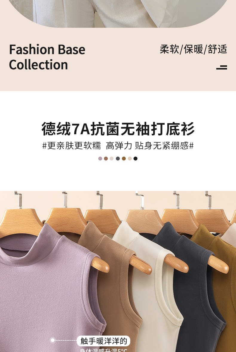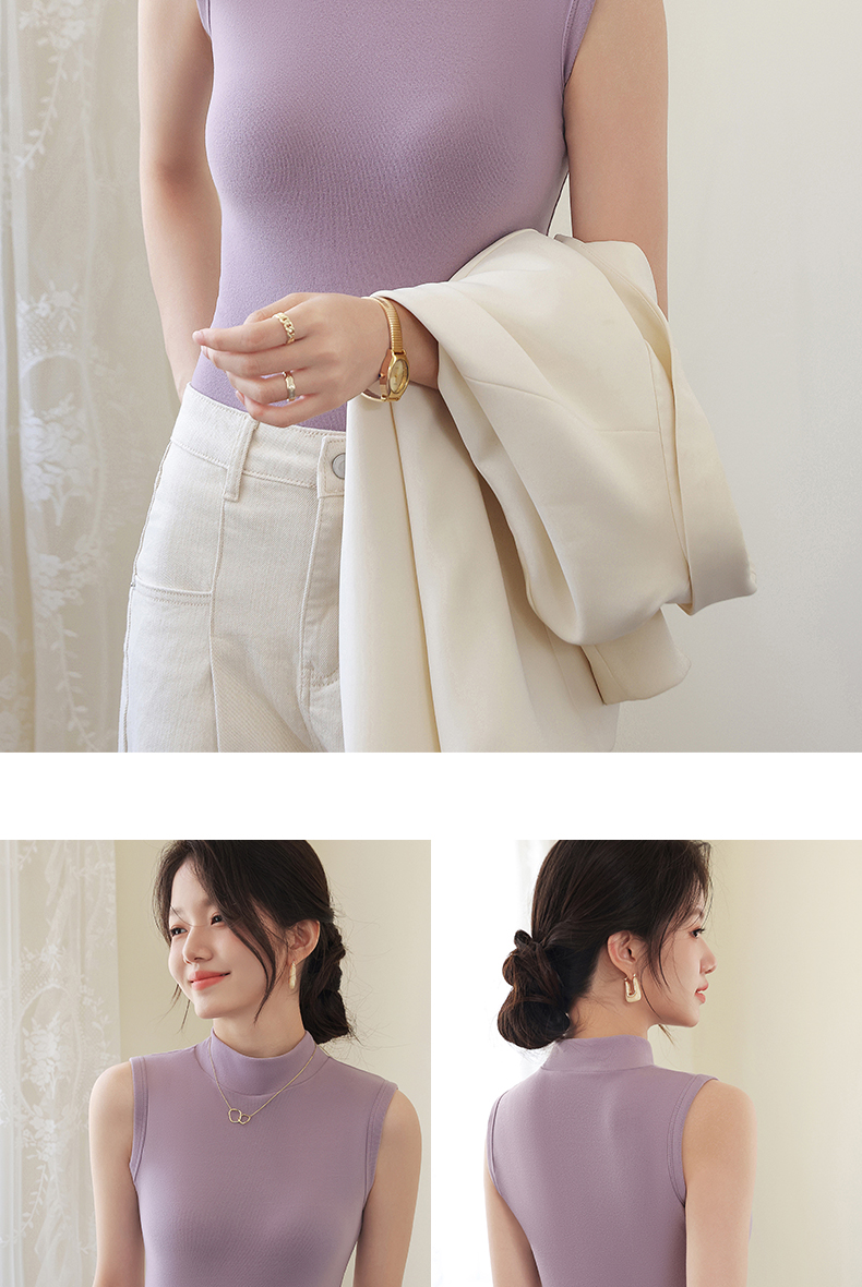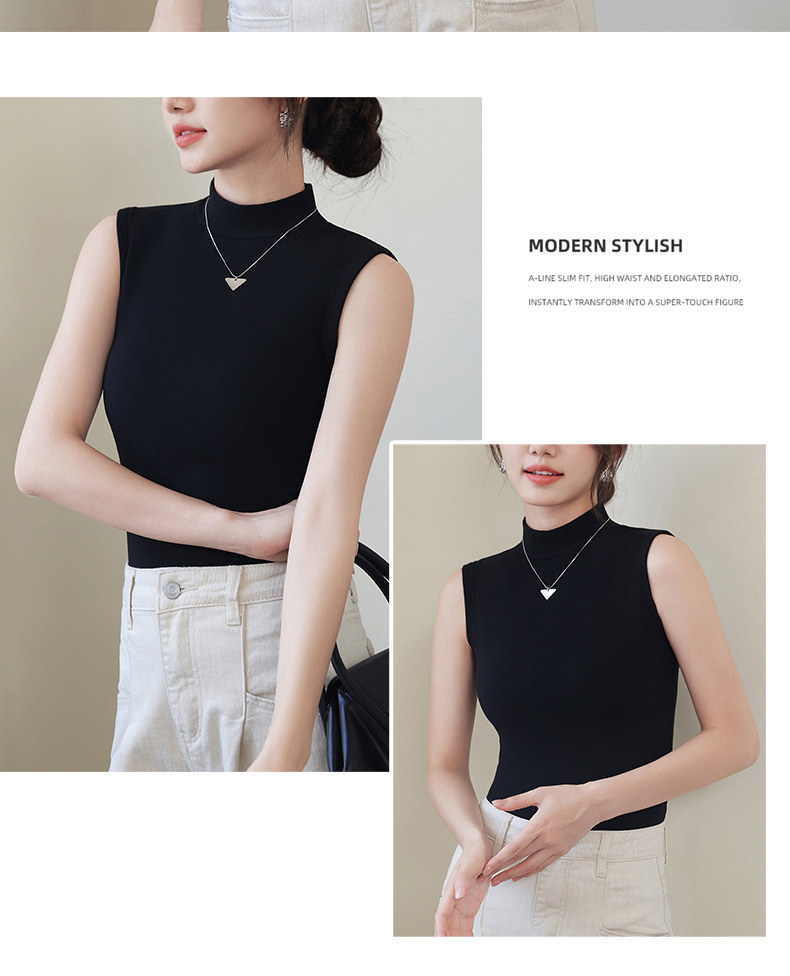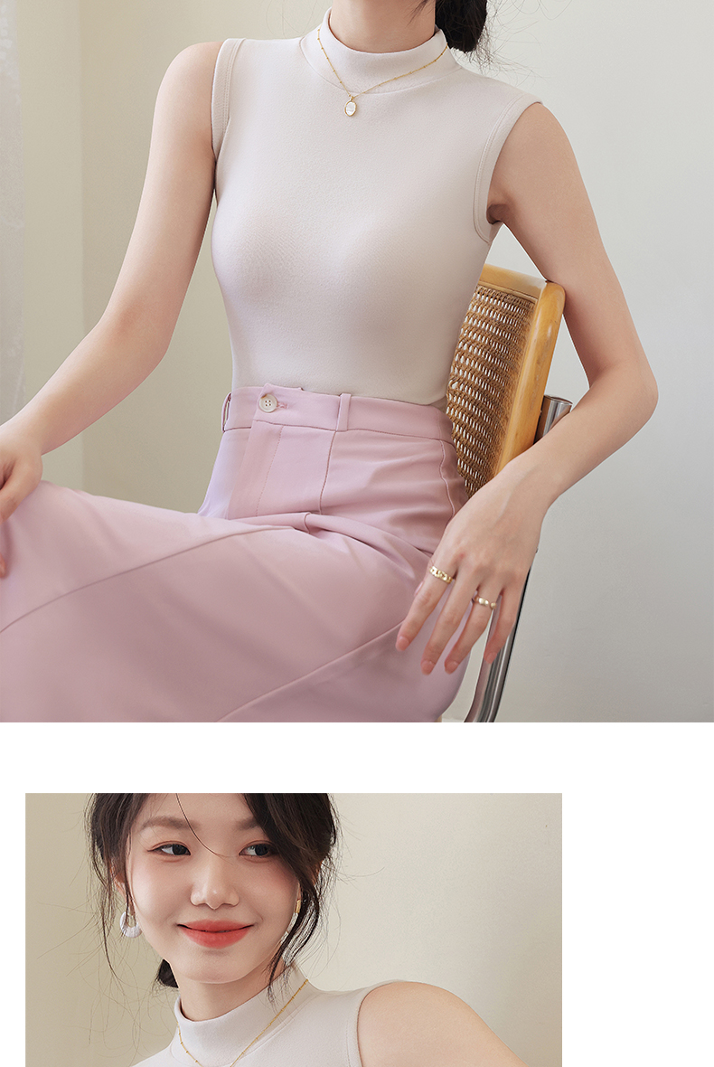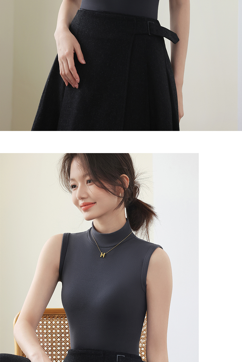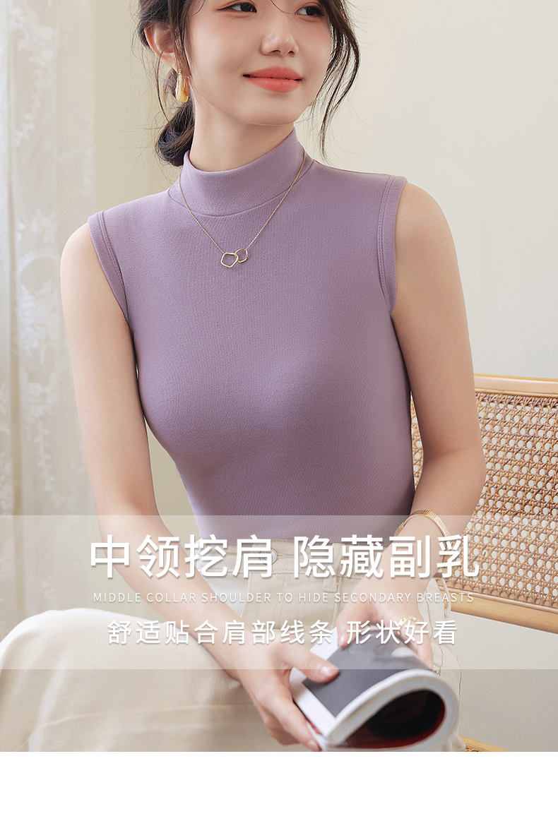 德绒打底衫女半高领内搭加绒加厚秋冬季弹力无袖背心百搭外穿上衣