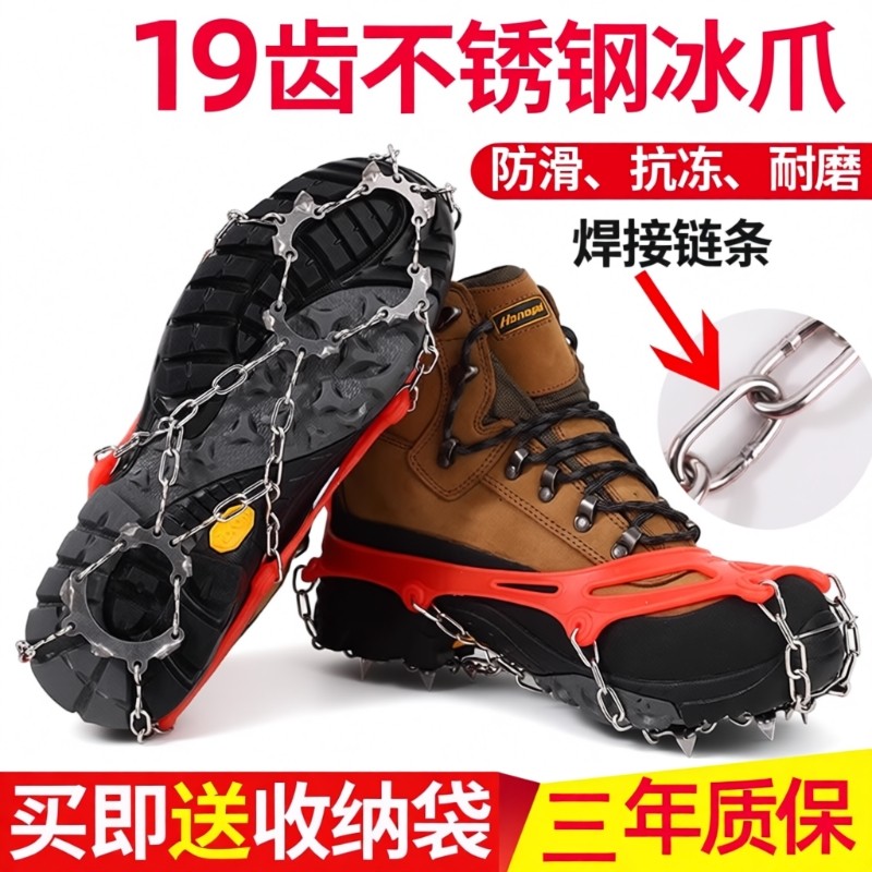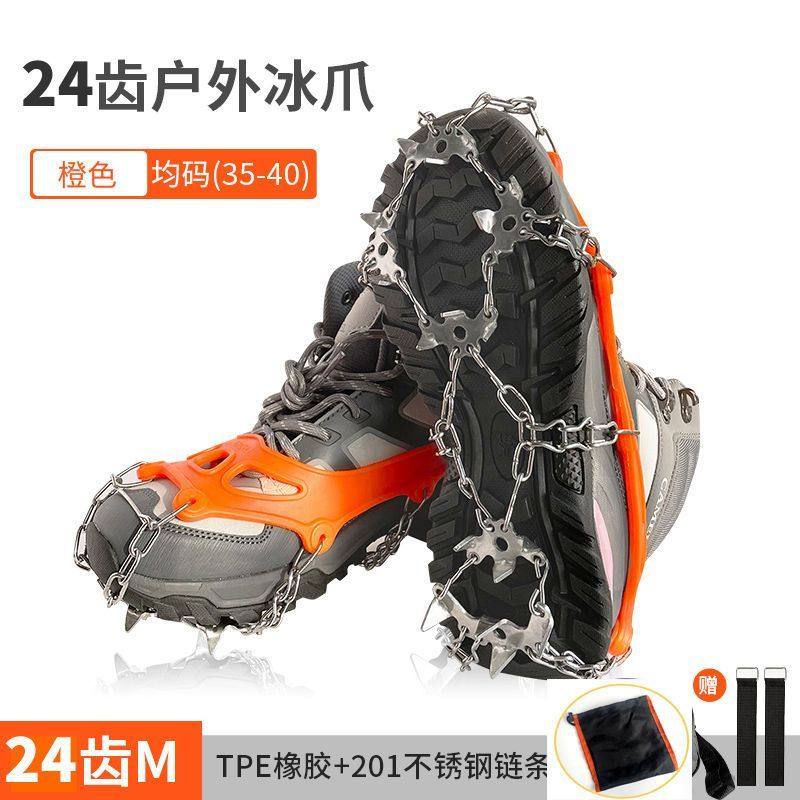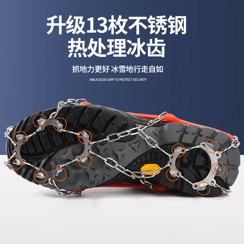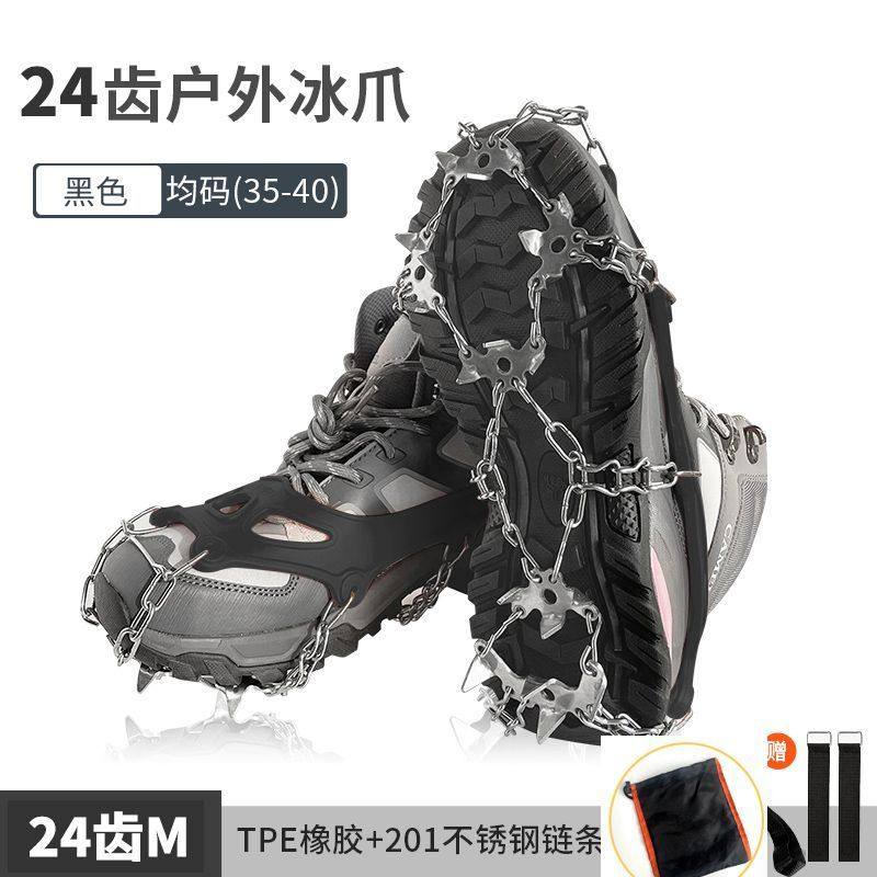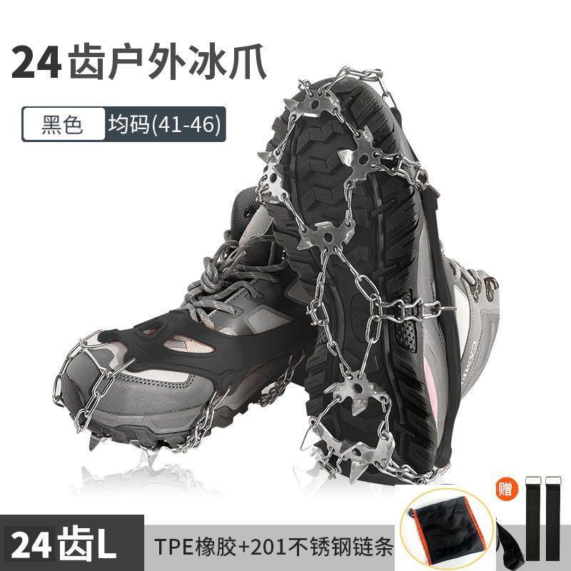 冰爪防滑鞋套户外24齿不锈钢雪地雪爪专业装备冰抓男女登山鞋钉链