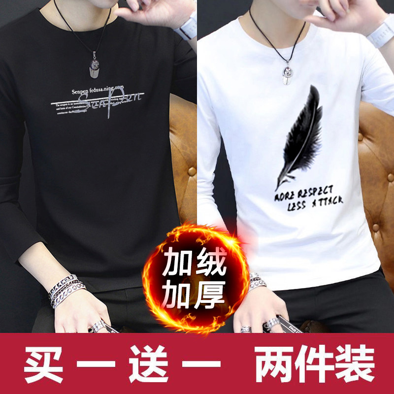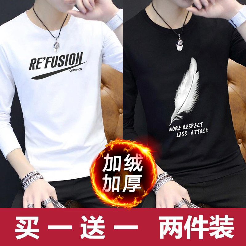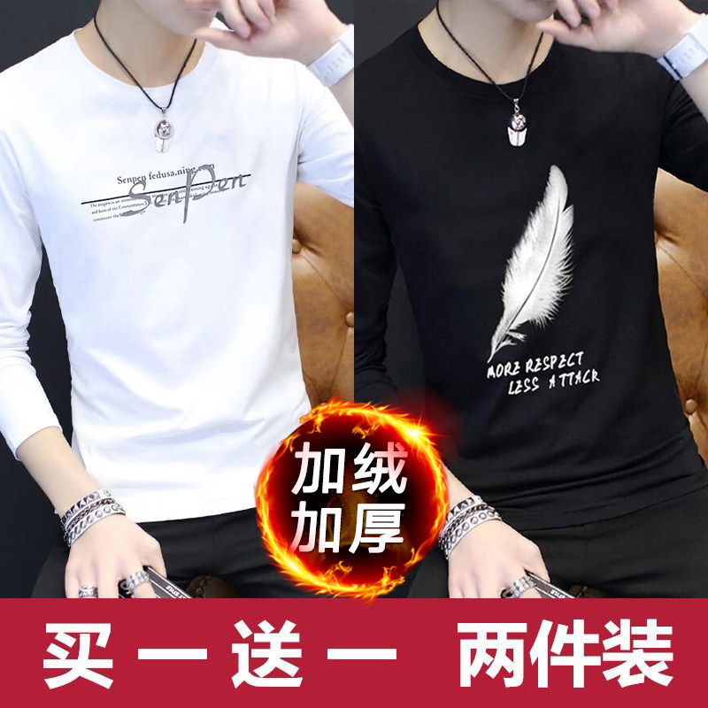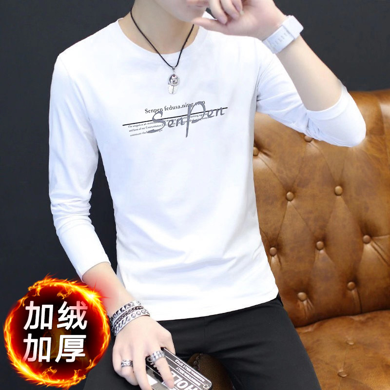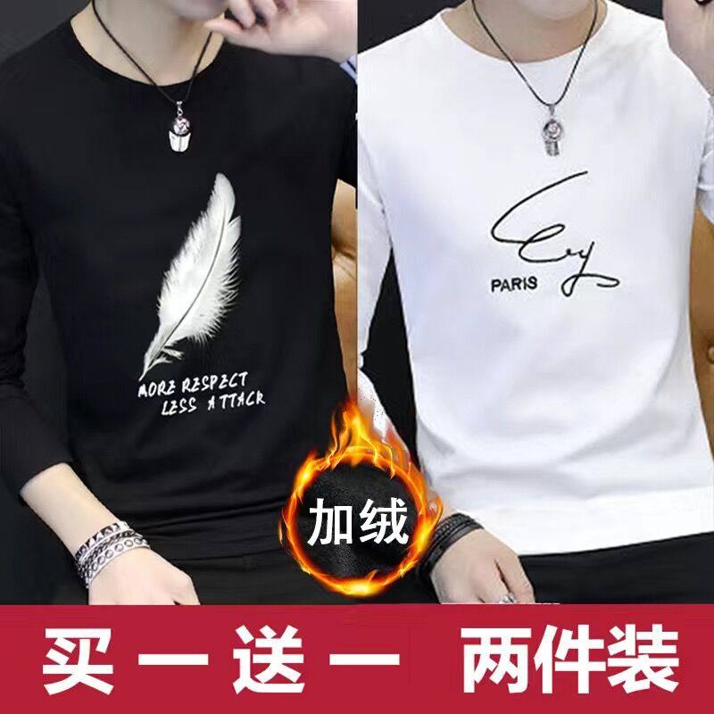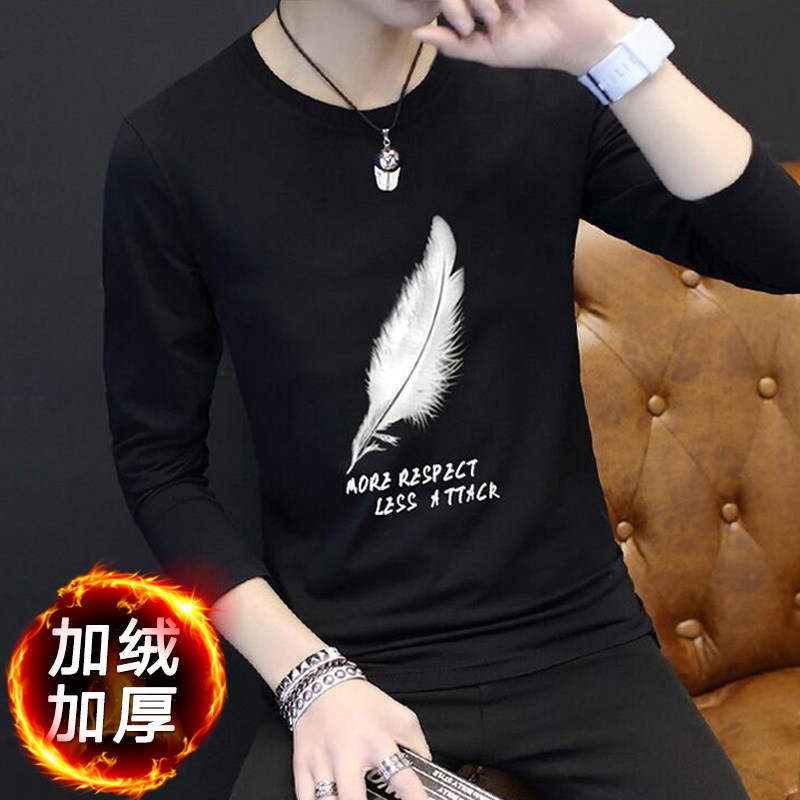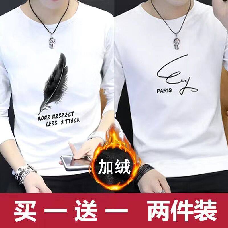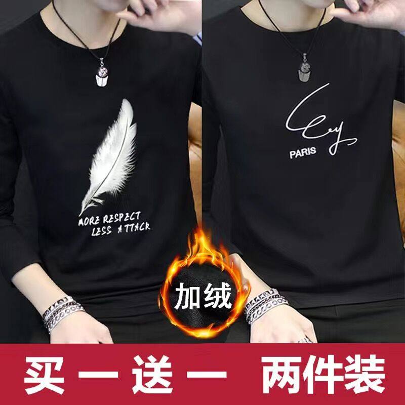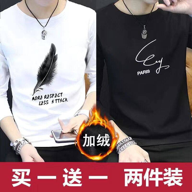 2024新款韩版潮流长袖春秋季打底衫加绒男士卫衣ins潮牌男装冬装