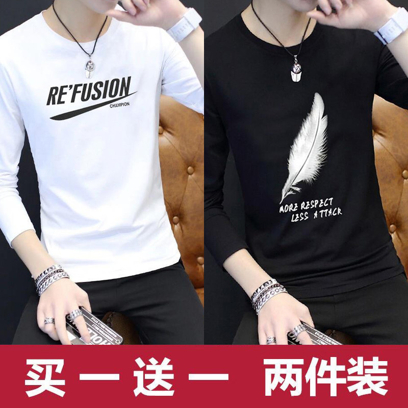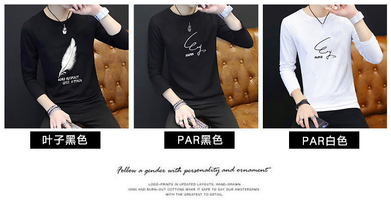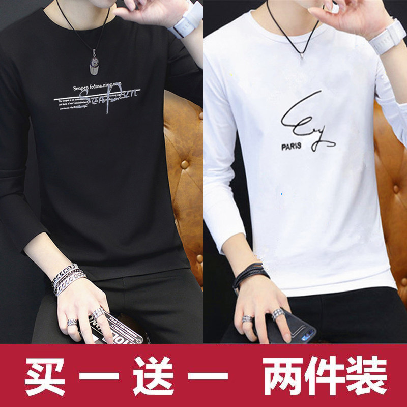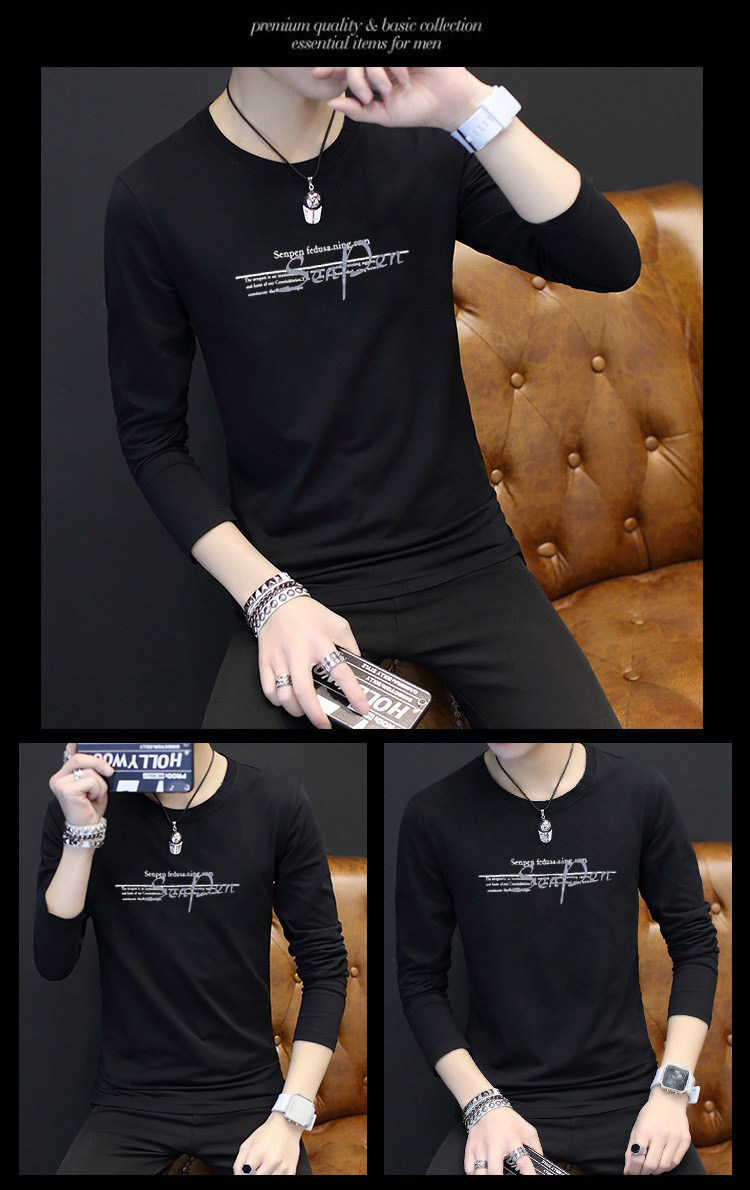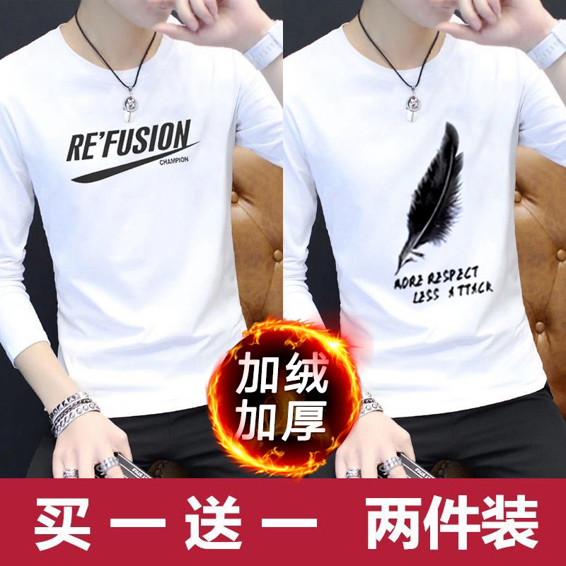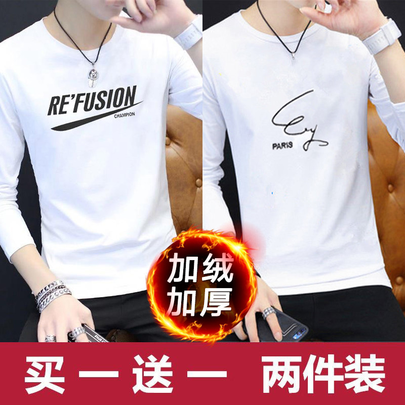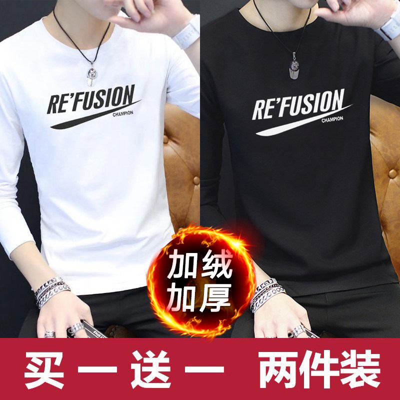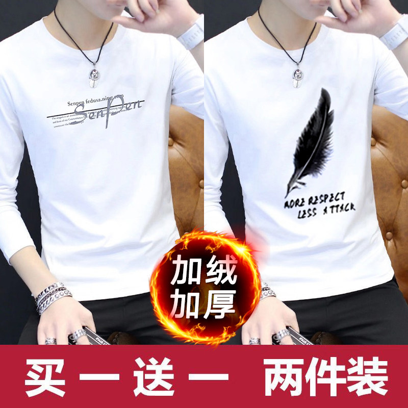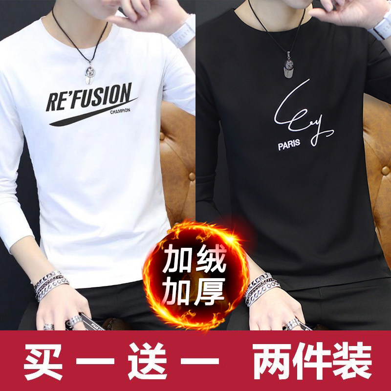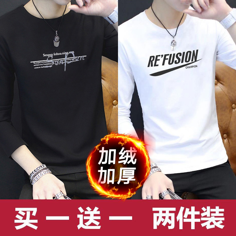 2024新款韩版潮流长袖春秋季打底衫加绒男士卫衣ins潮牌男装冬装
