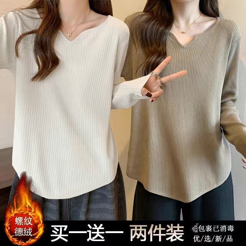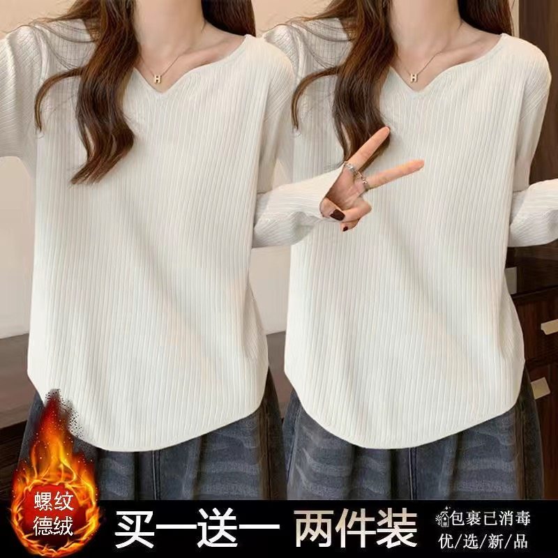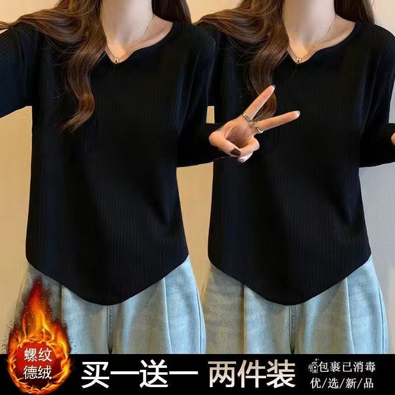 单/两件装 大码女装200斤胖mm宽松t恤女秋冬洋气德绒保暖打底衫女