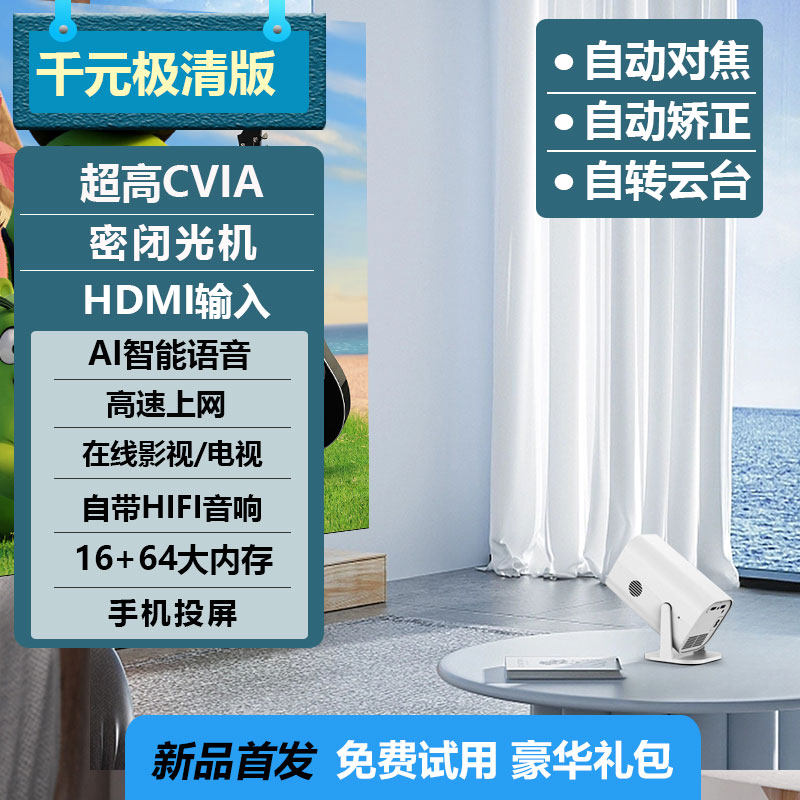 【千元配置】2025新款超高清智能投影仪家用墙投卧室客厅家庭影院手机投屏微小型便携宿舍学生投影机电视