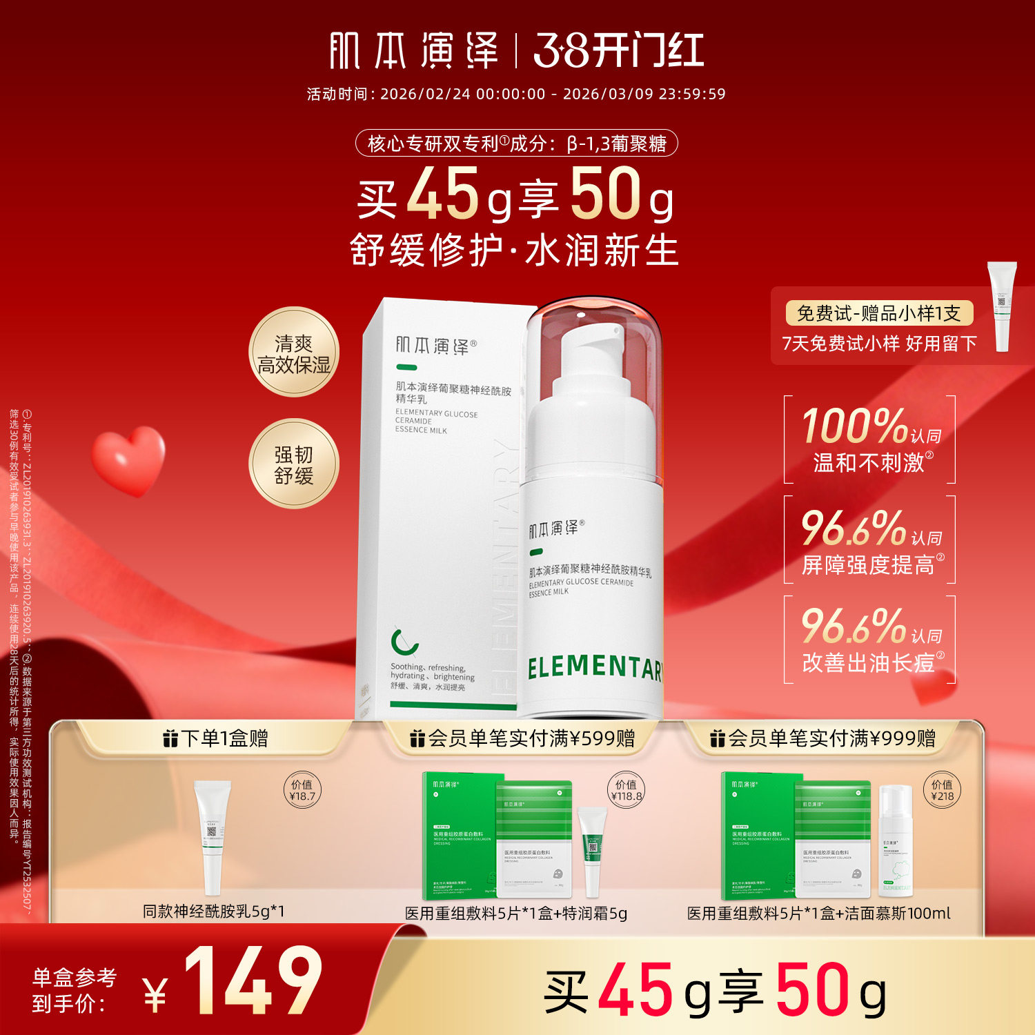 肌本演绎舒缓修护保湿补水神经酰胺精华乳液β葡聚糖敏肌受损屏障
