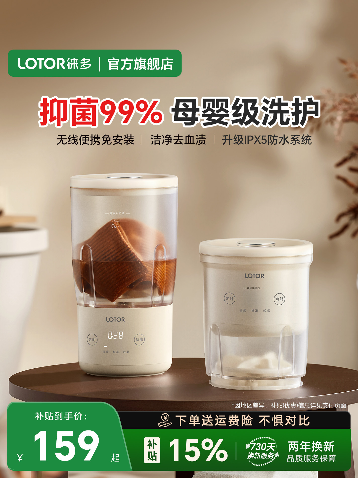 lotor徕多双杯洗衣机无线迷你洗内衣内裤袜子专用小型便携洗衣杯