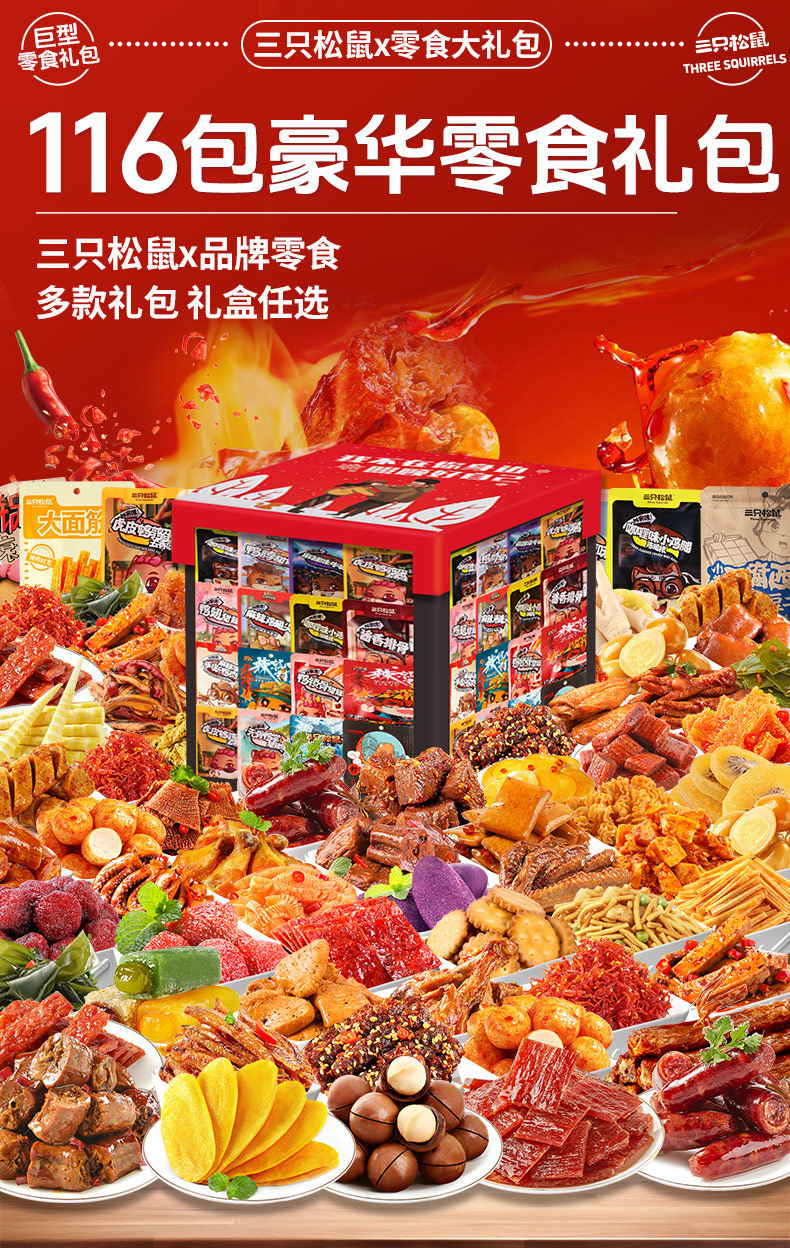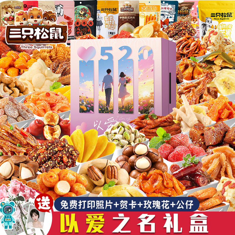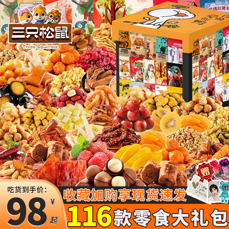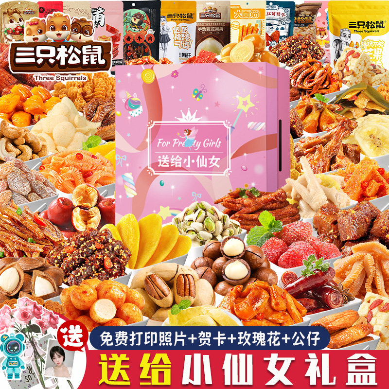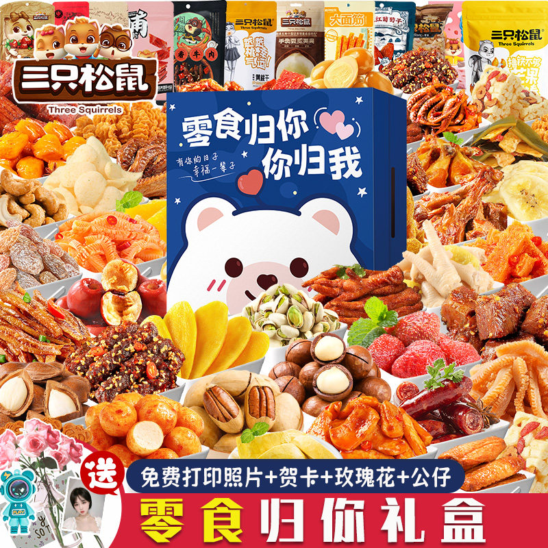 三只松鼠零食大礼包巨型整箱送男女朋友生日礼物解馋休闲食品小吃