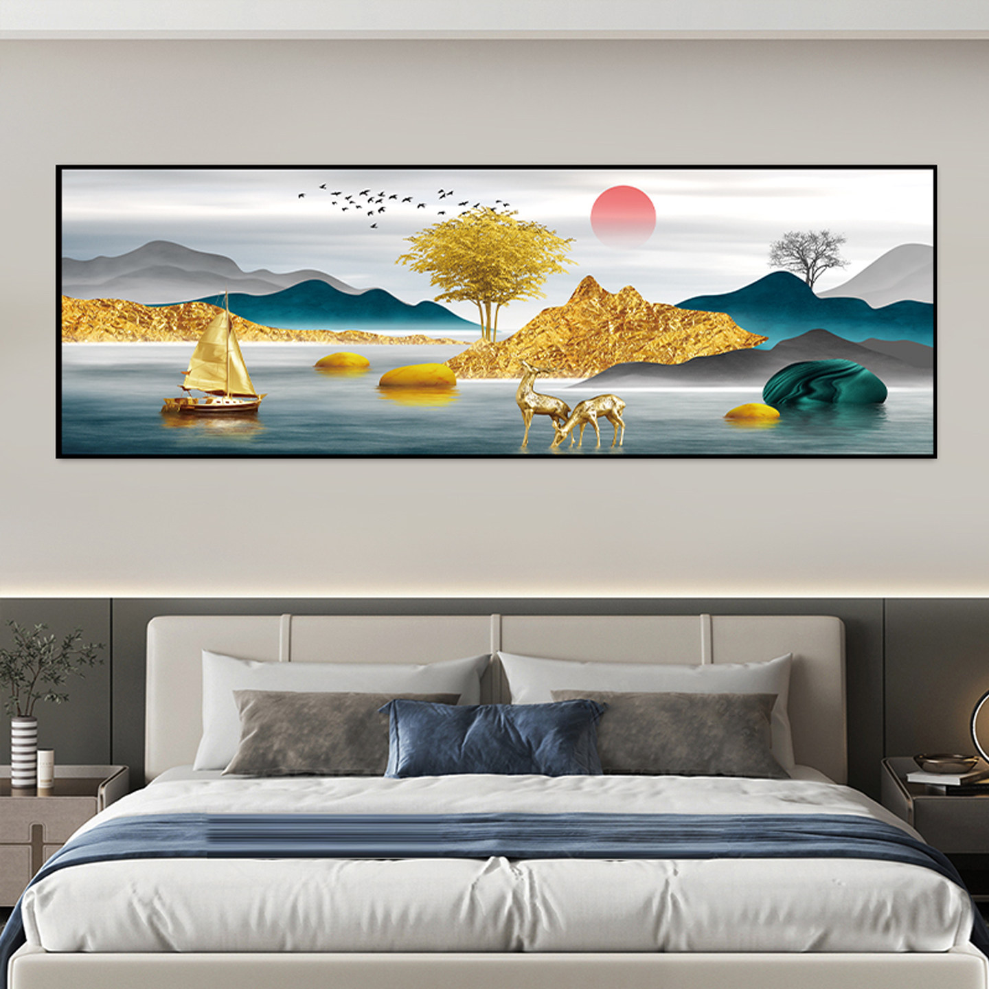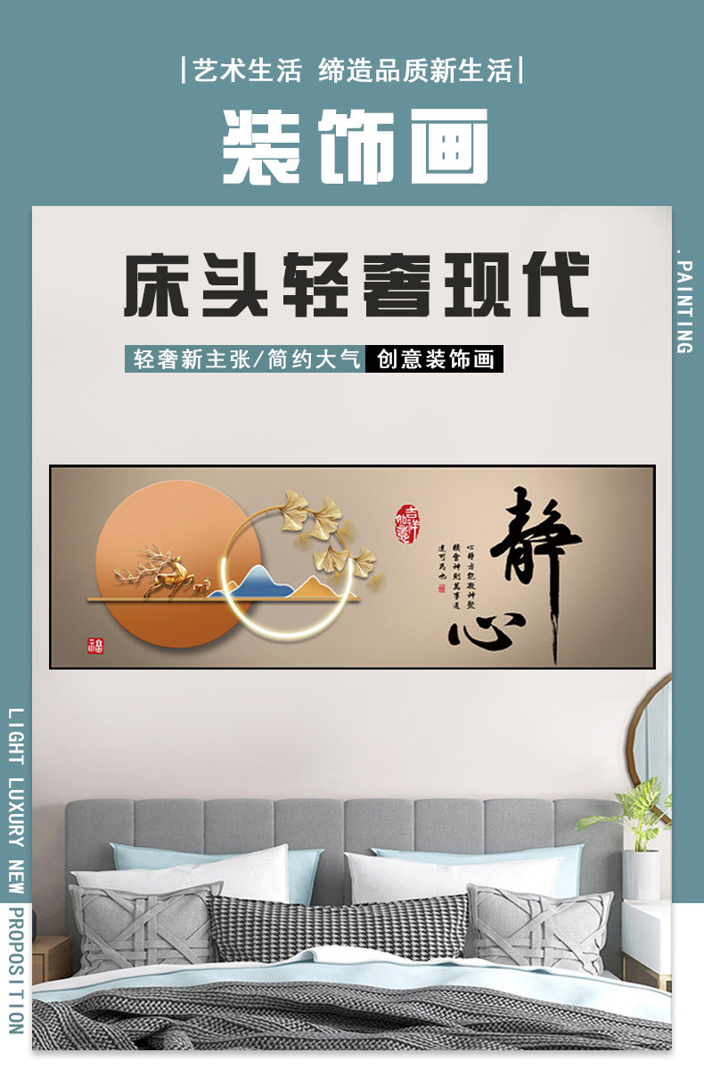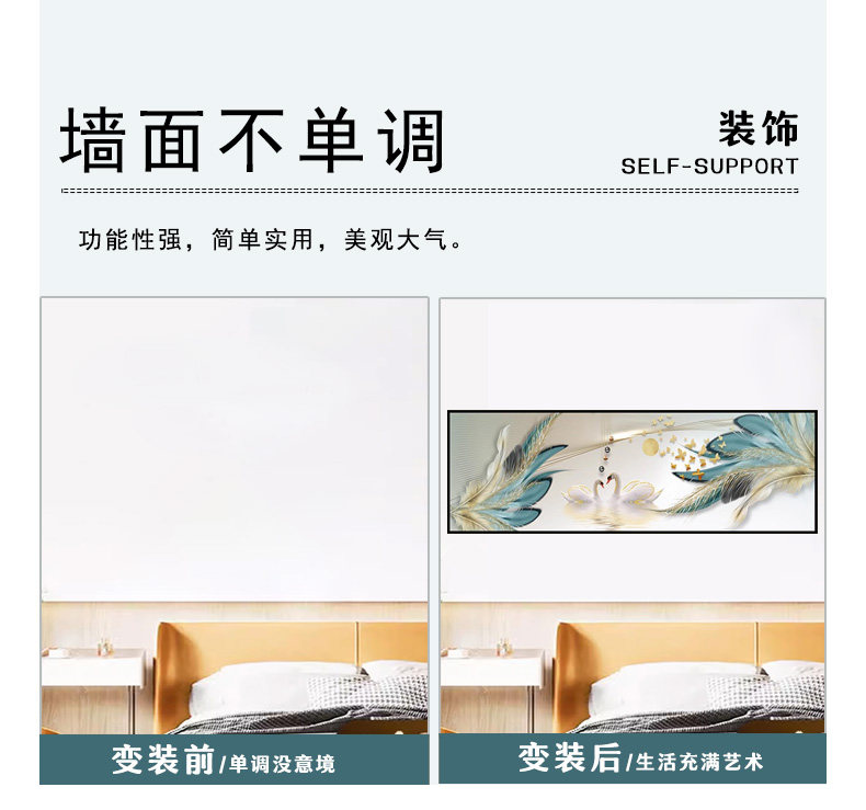 卧室床头装饰画自粘贴画贴纸房间主卧酒店民宿客厅背景墙壁画挂画