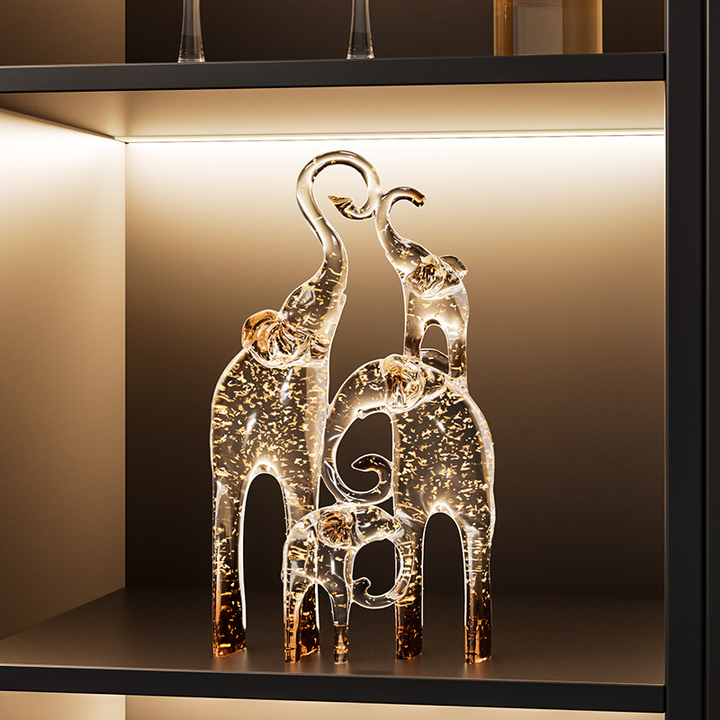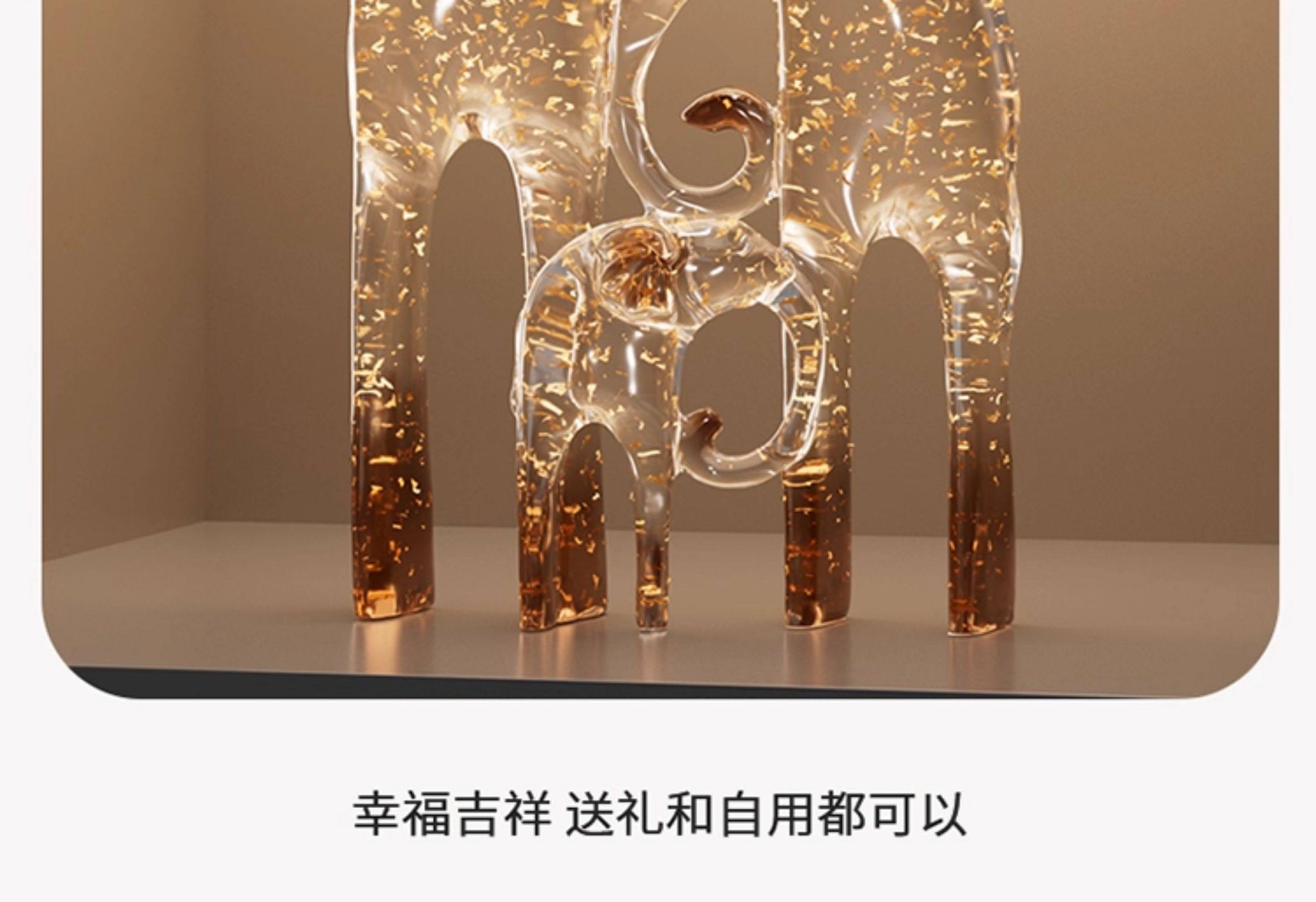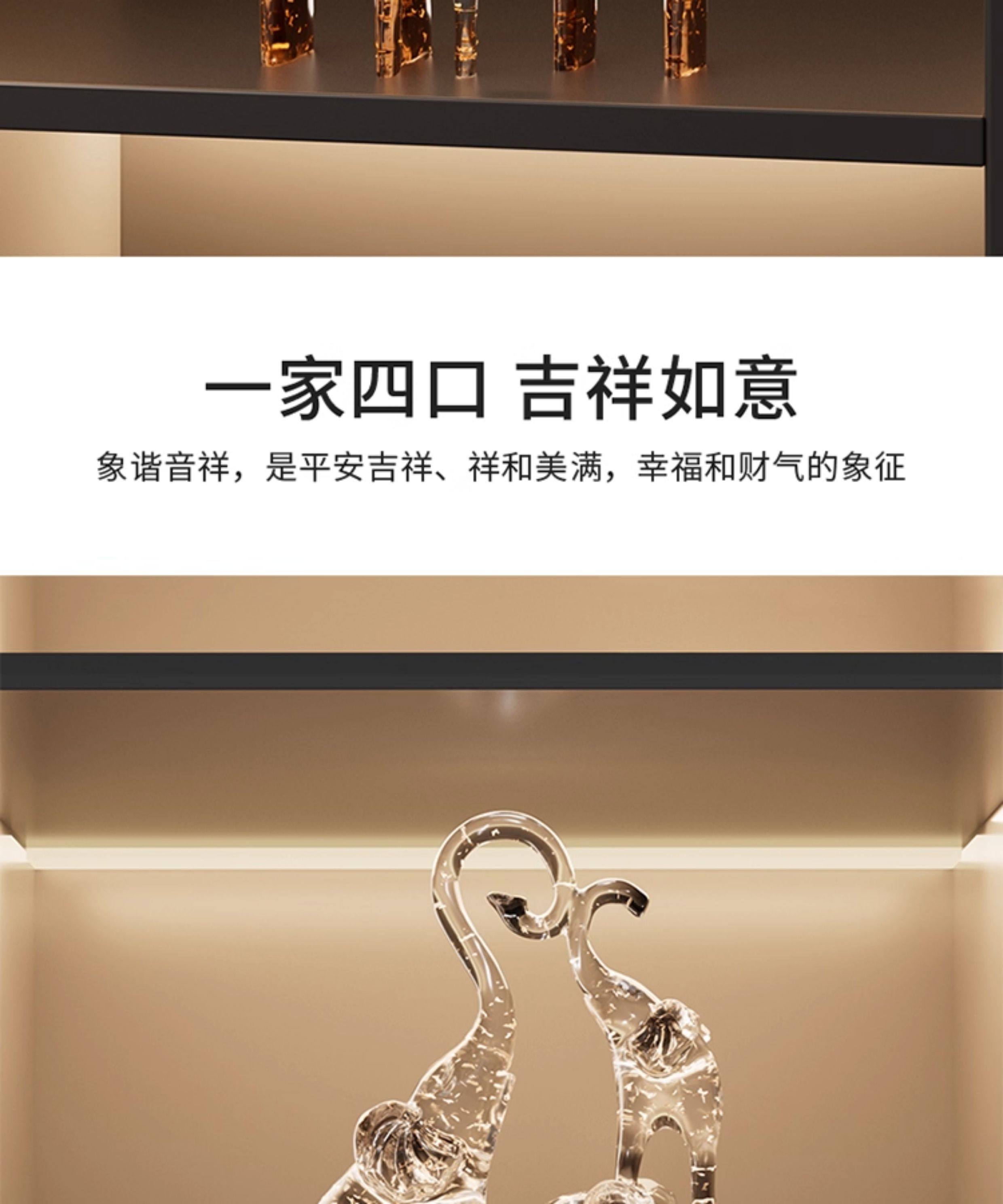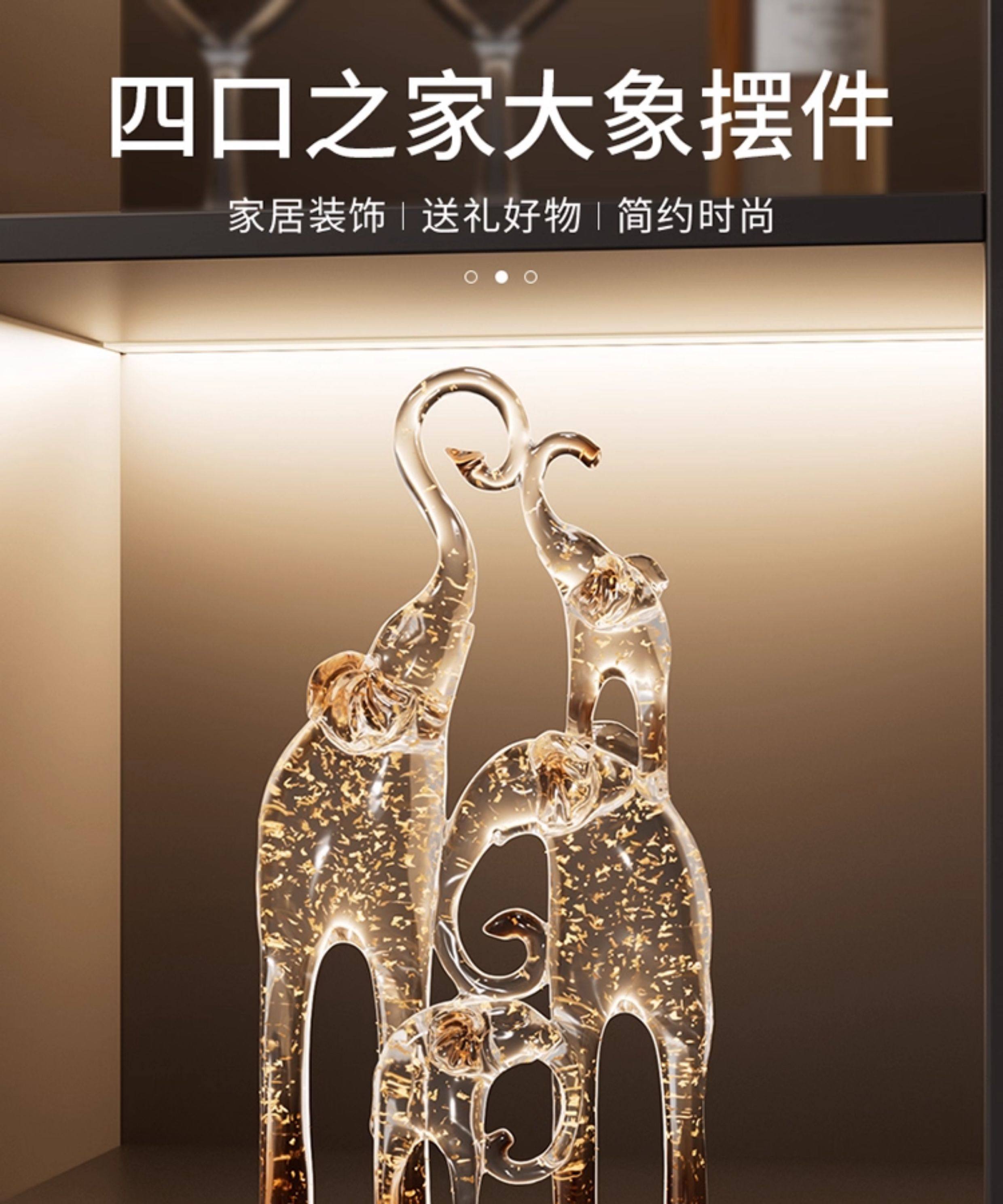 一家四口大象摆件客厅电视柜酒柜装饰品仿水晶新房子乔迁之喜礼物