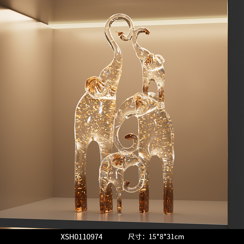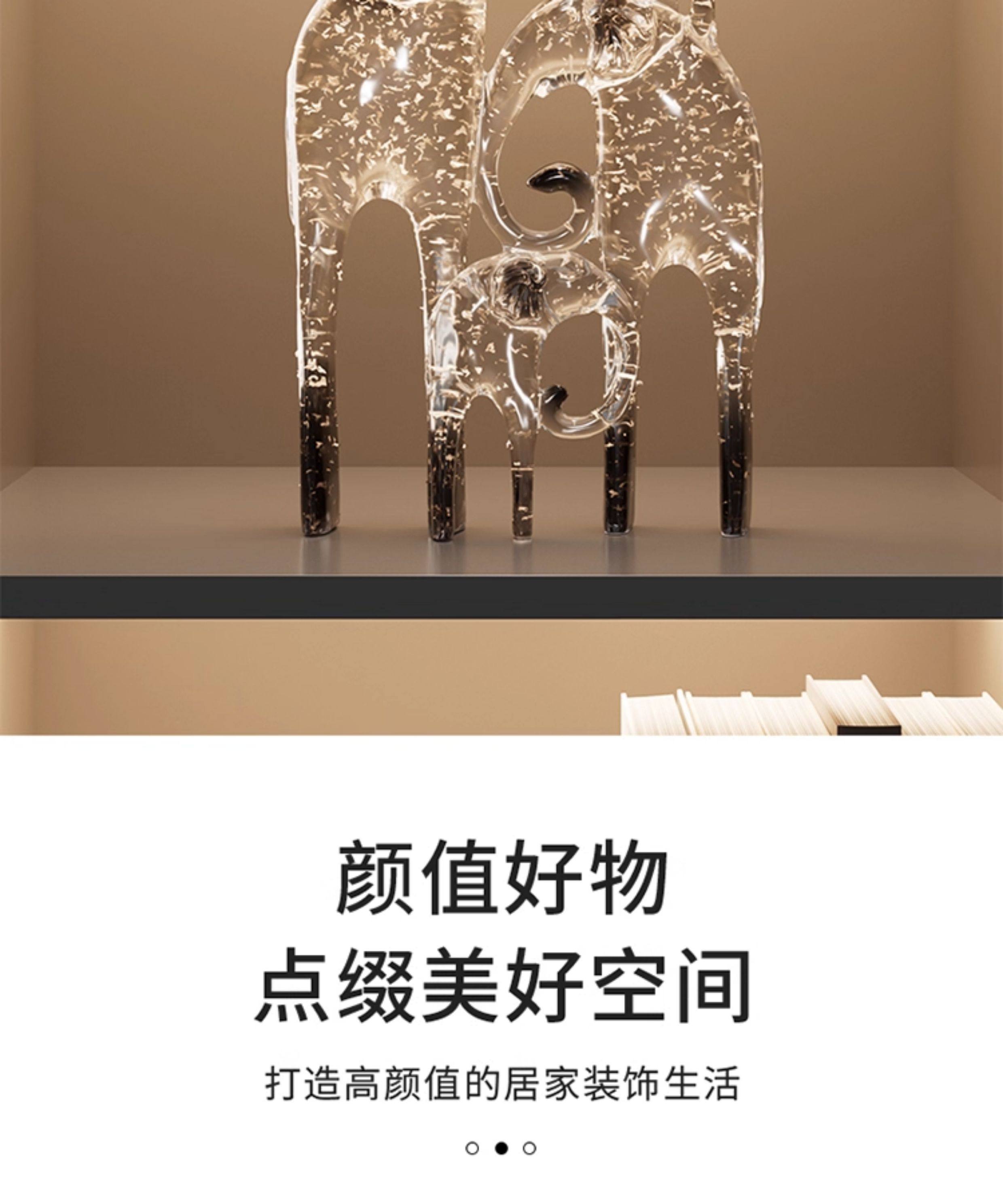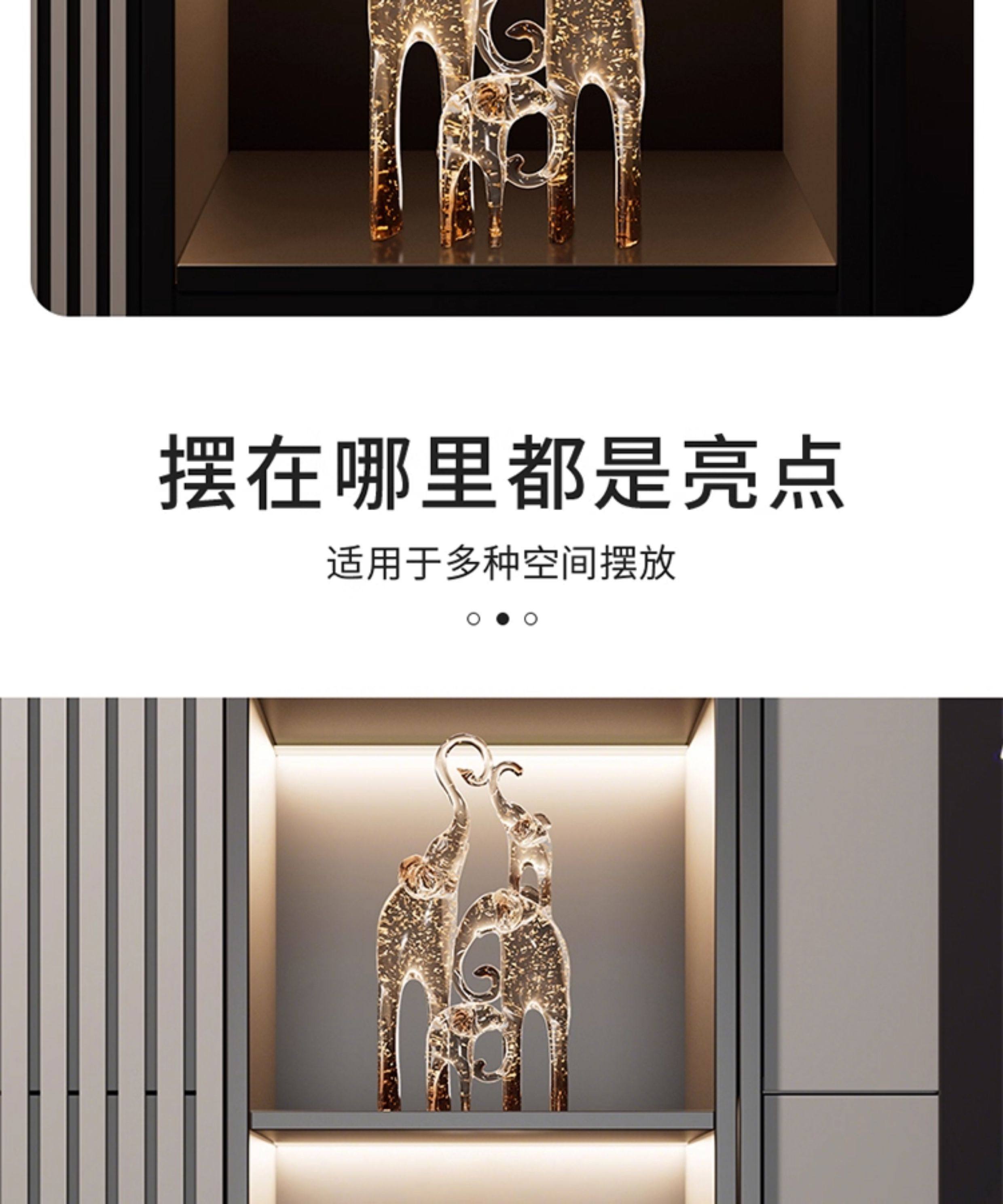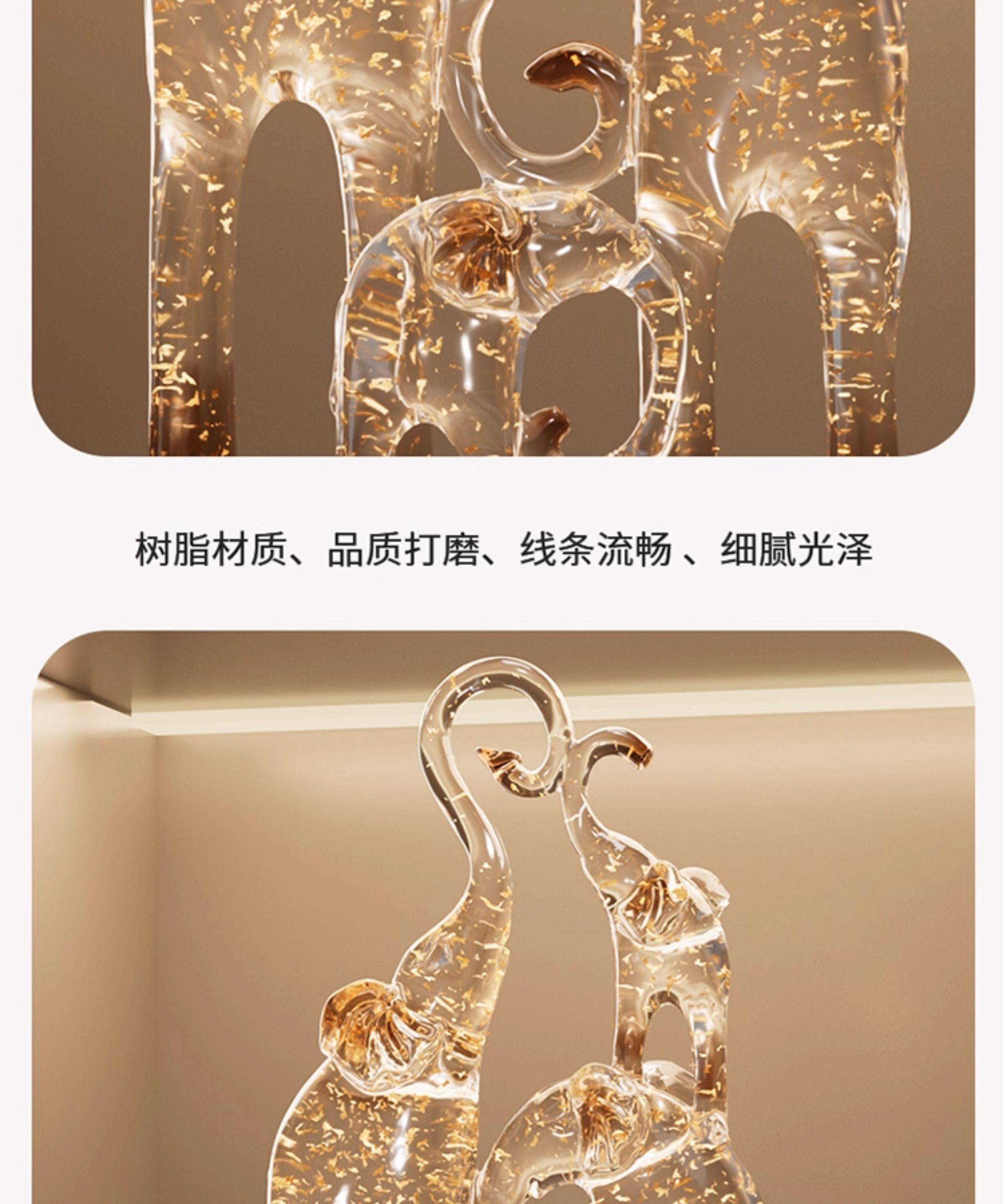 一家四口大象摆件客厅电视柜酒柜装饰品仿水晶新房子乔迁之喜礼物