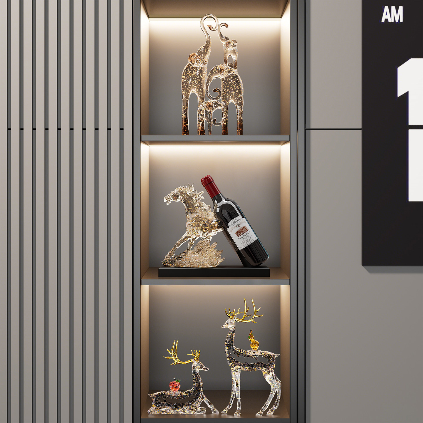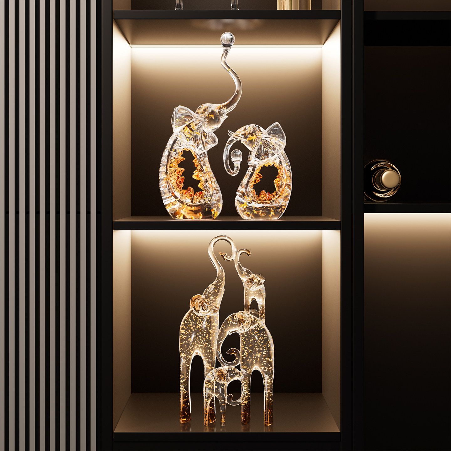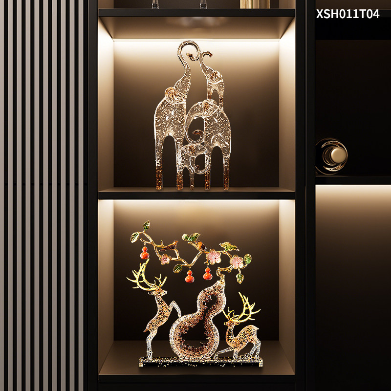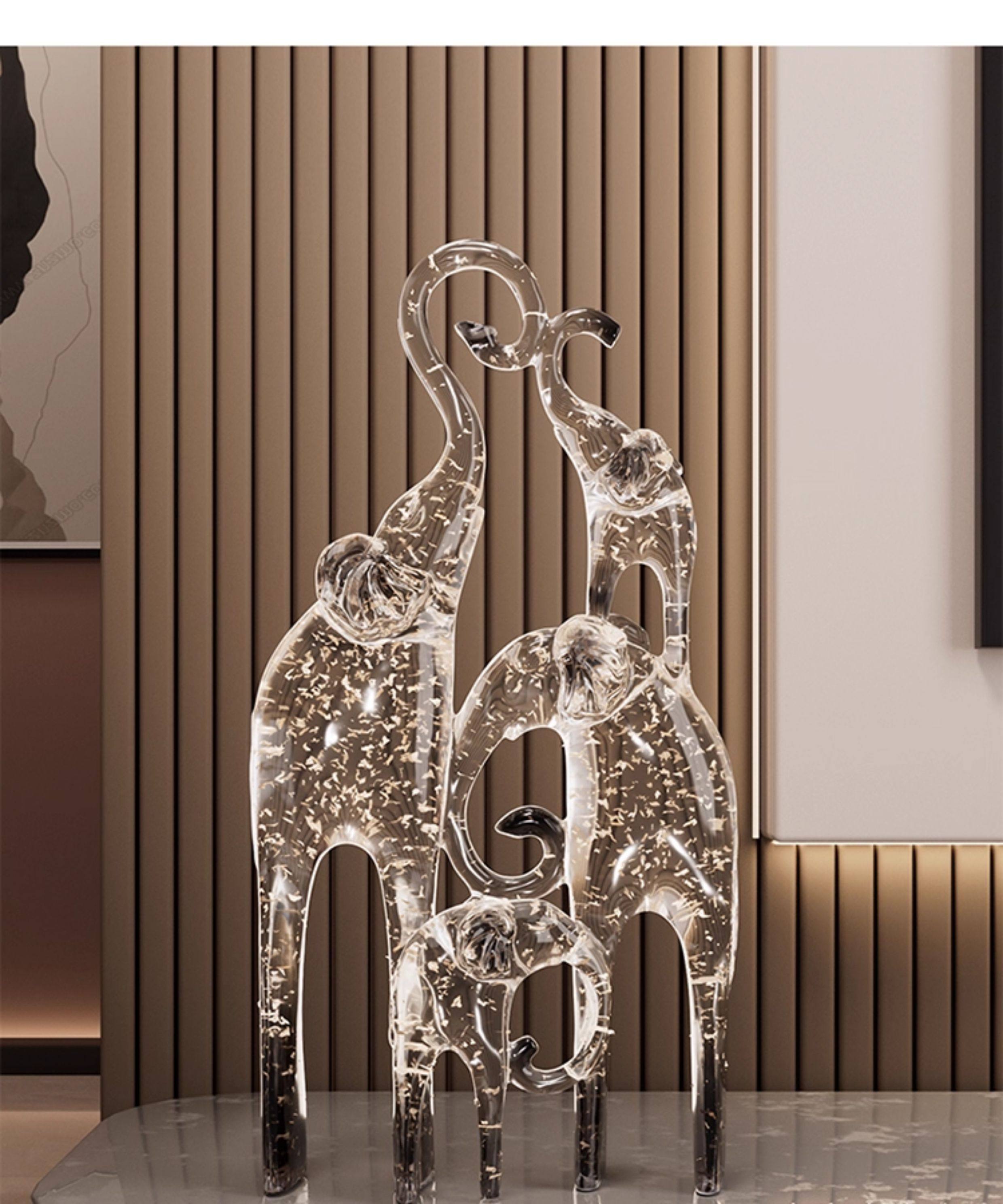 一家四口大象摆件客厅电视柜酒柜装饰品仿水晶新房子乔迁之喜礼物