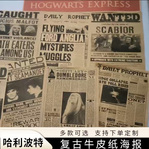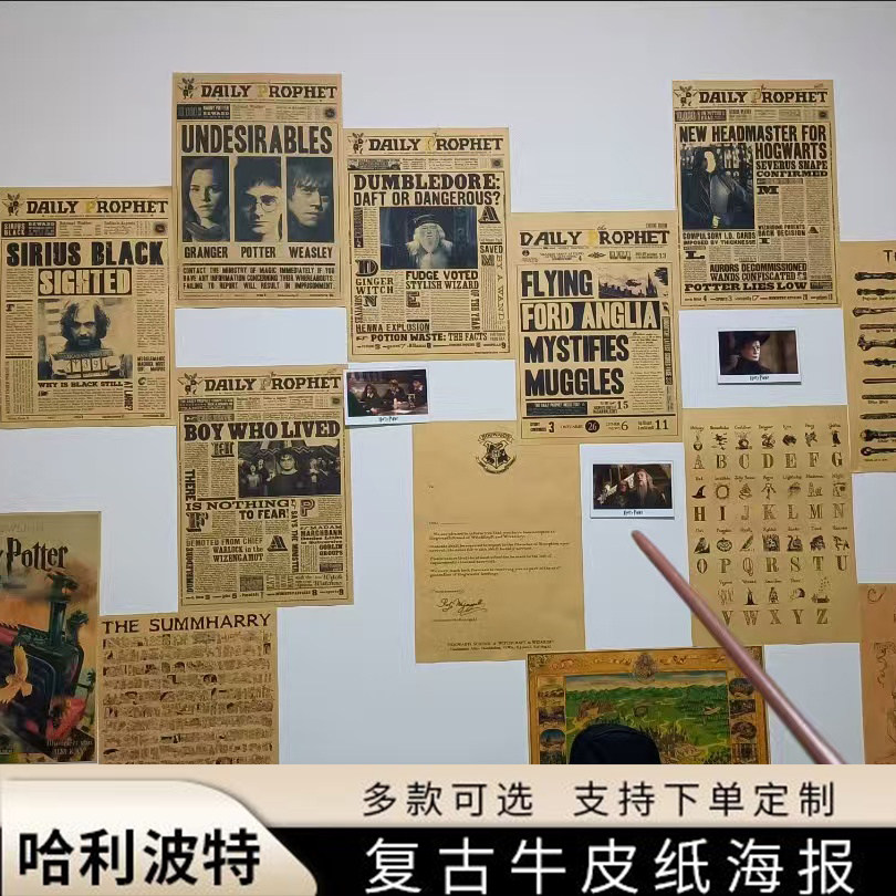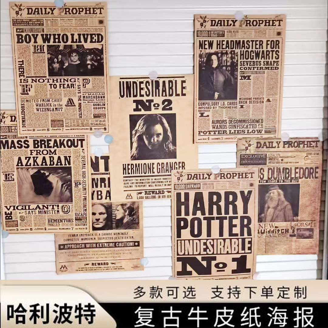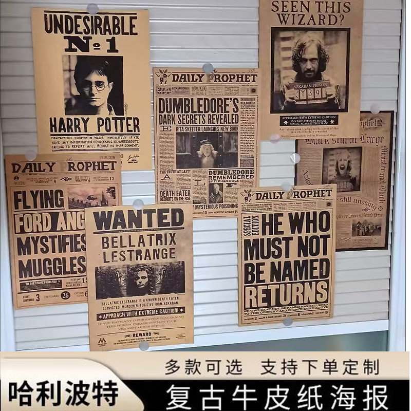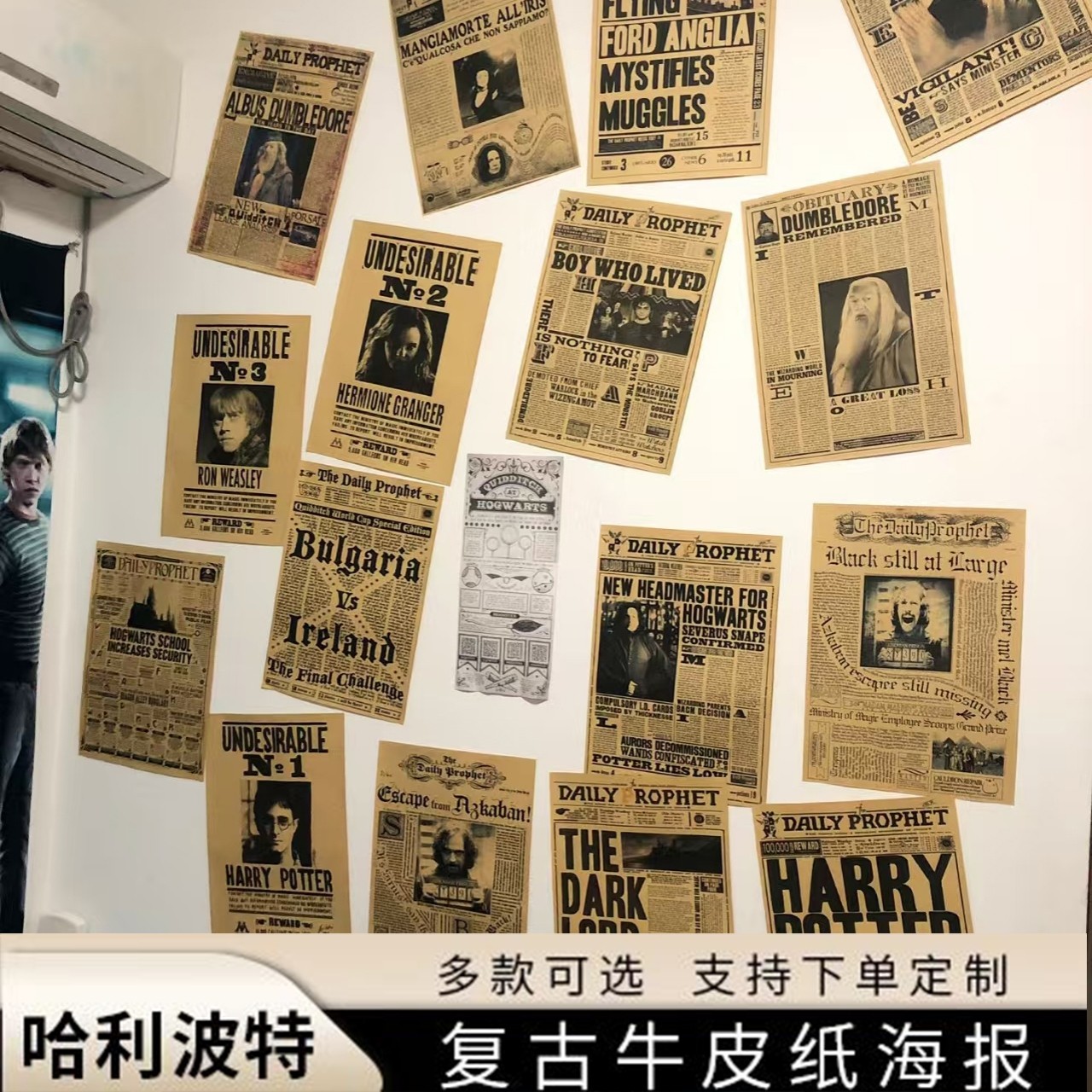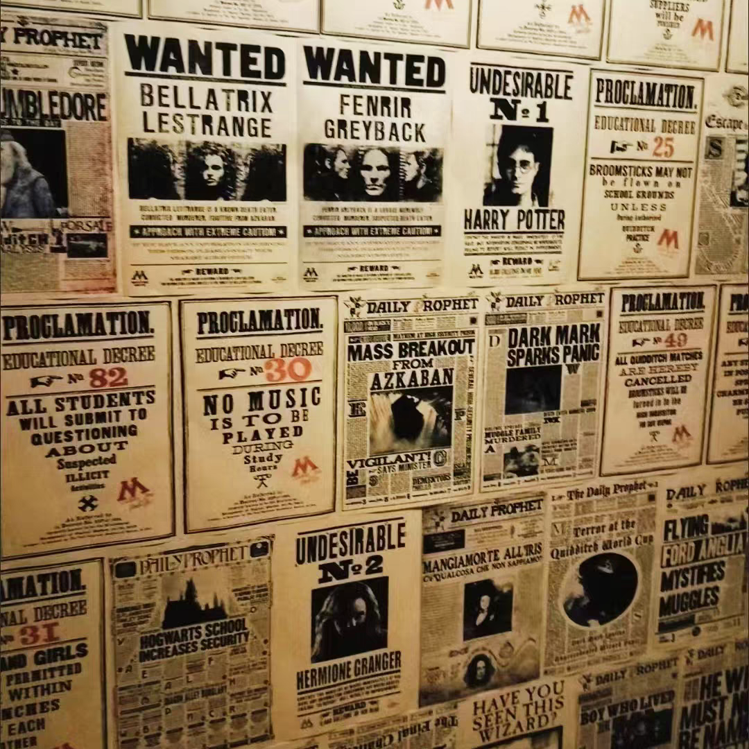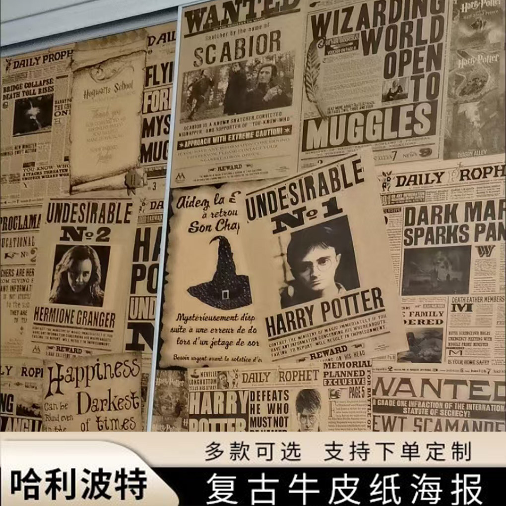 哈利波特海报复古牛皮纸宿舍酒吧咖啡馆书店卧室门头装饰墙贴纸画