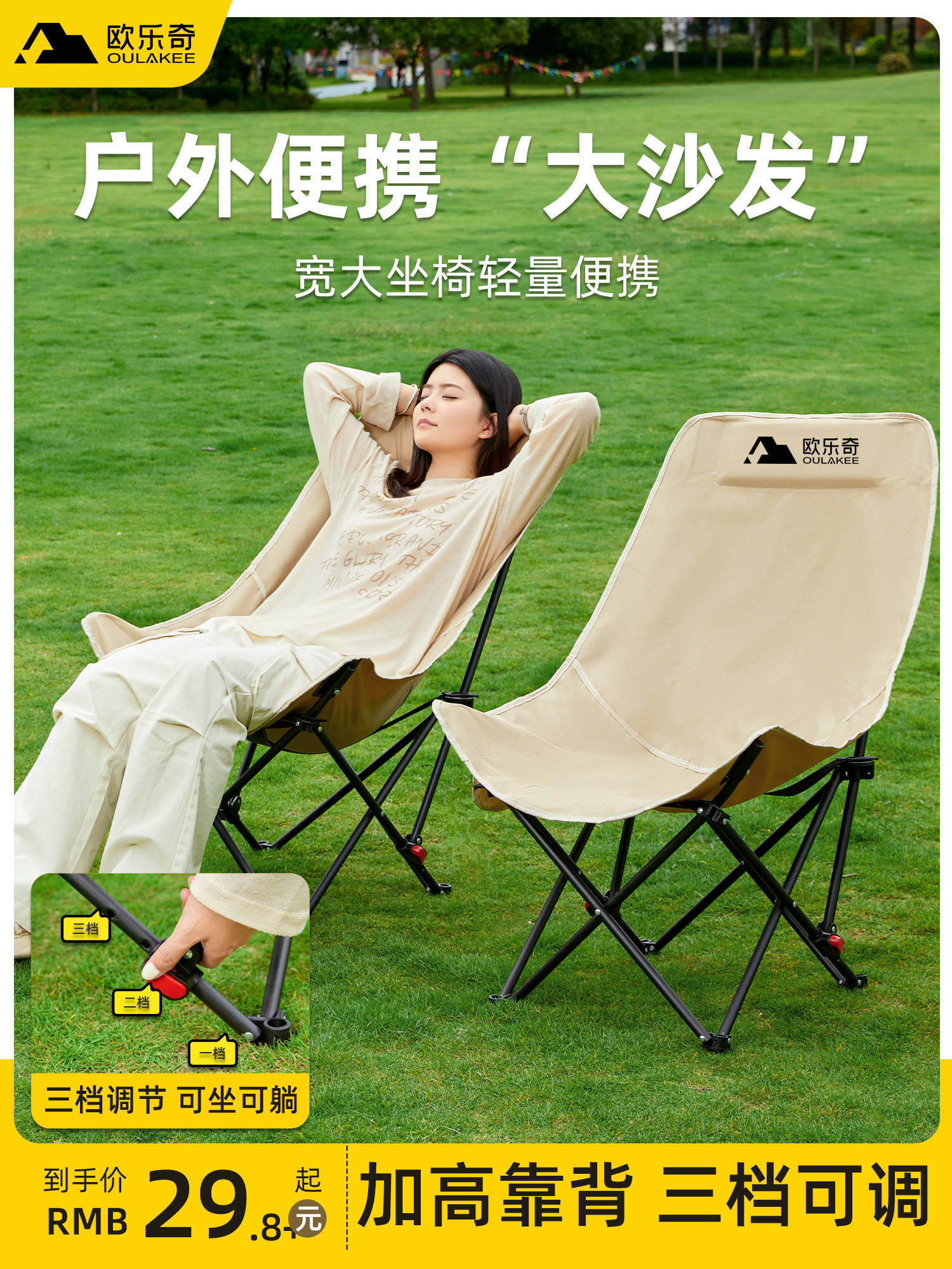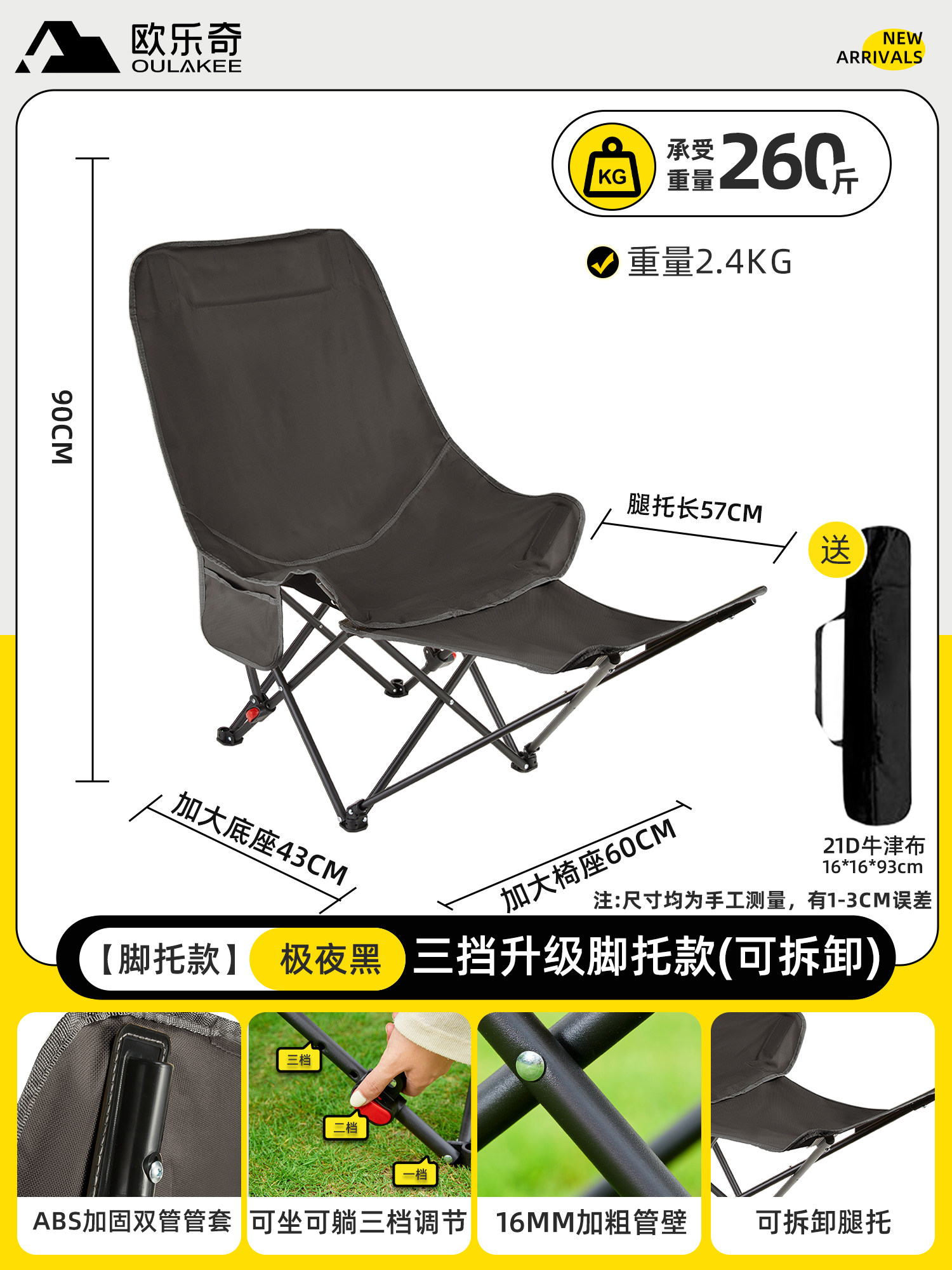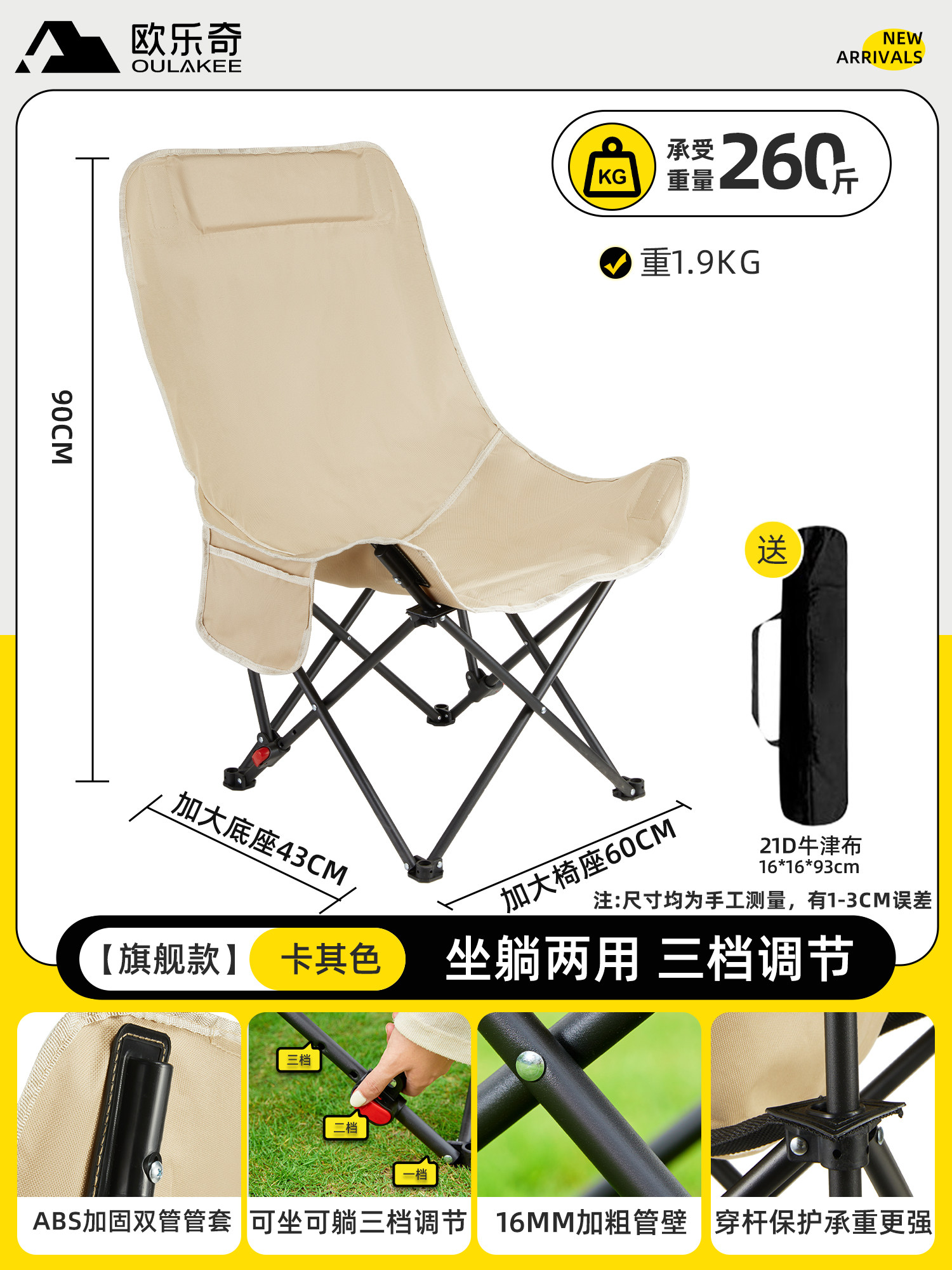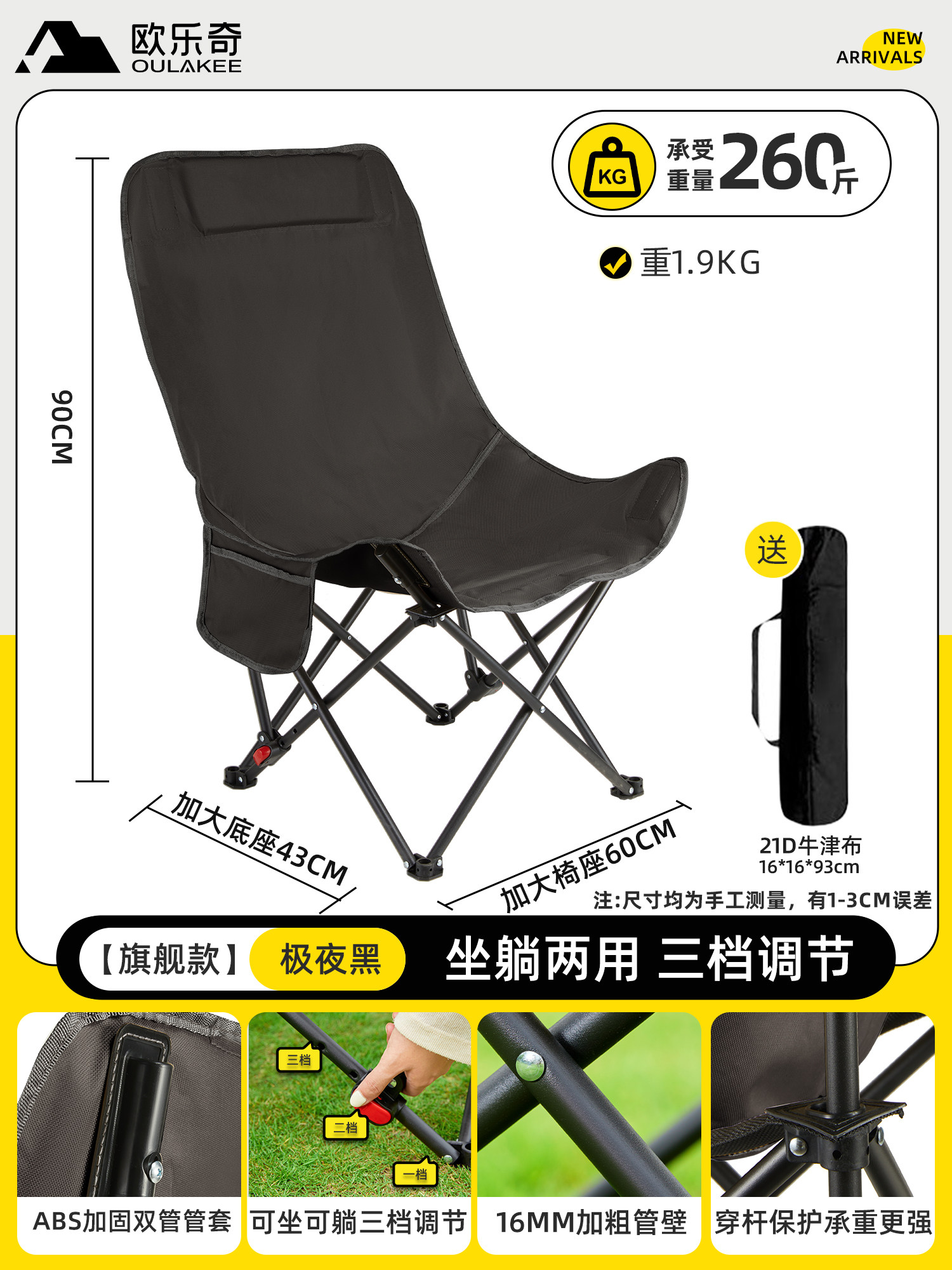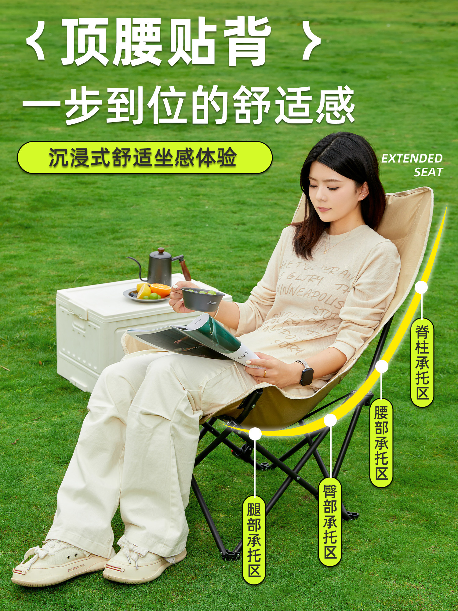 户外折叠椅加高月亮椅可调节躺椅露营椅子便携式沙滩钓鱼野餐椅子