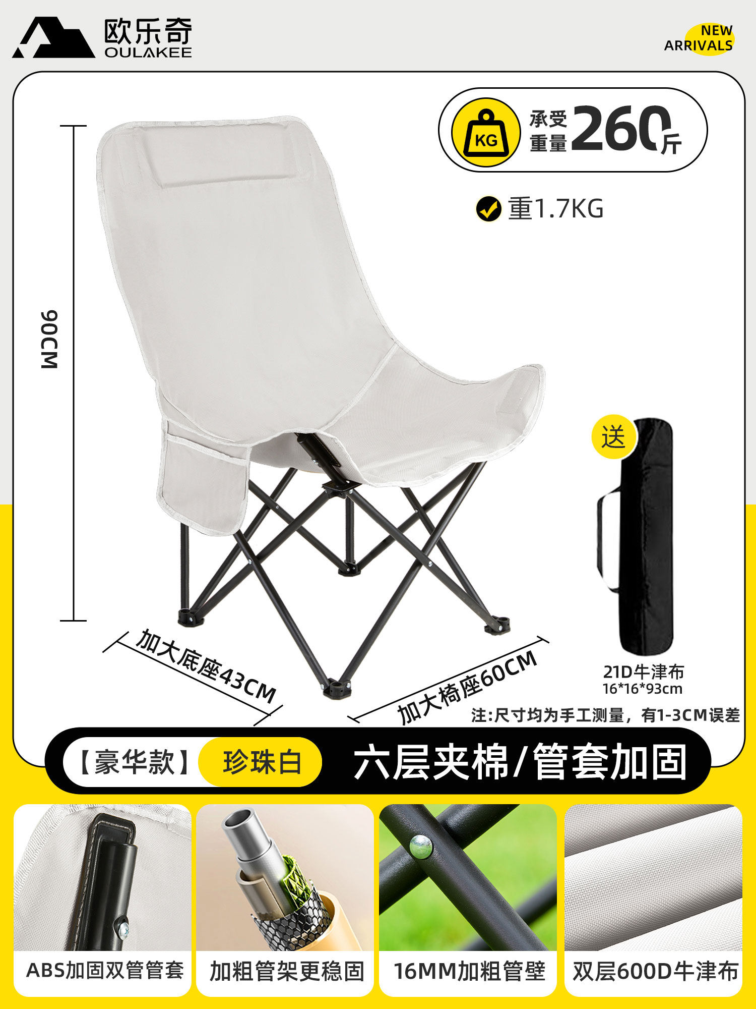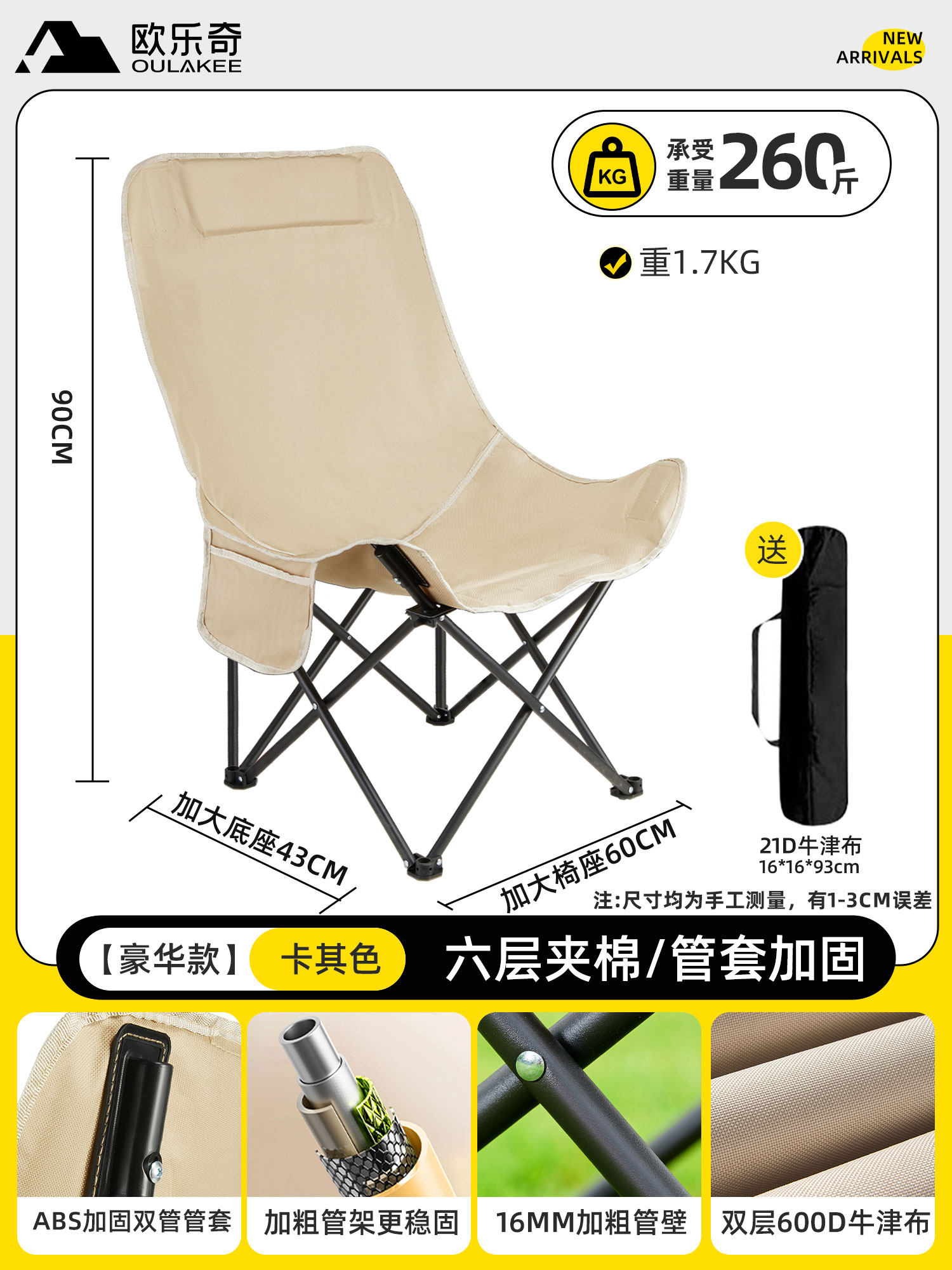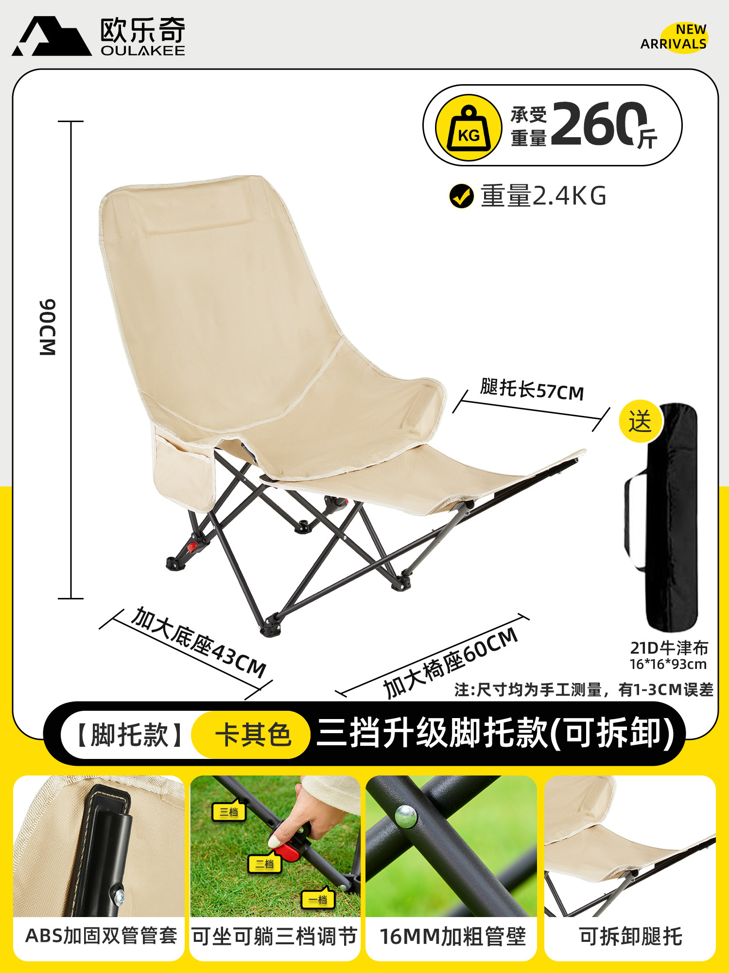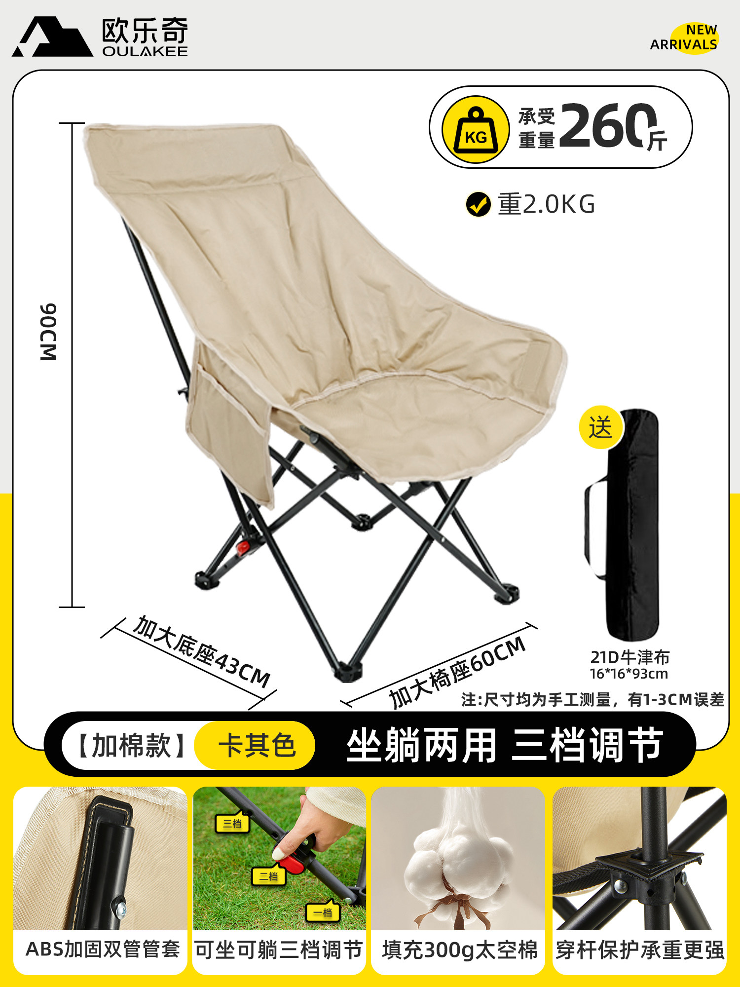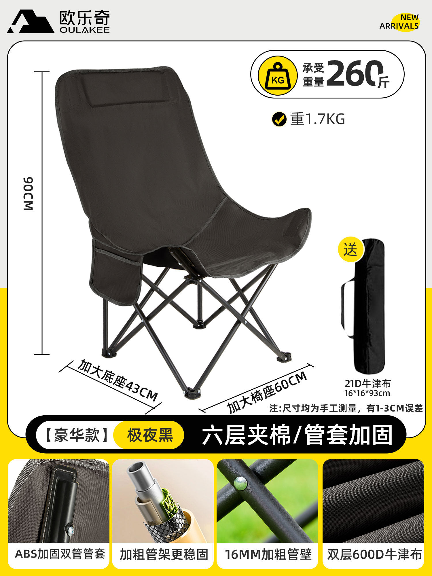 户外折叠椅加高月亮椅可调节躺椅露营椅子便携式沙滩钓鱼野餐椅子