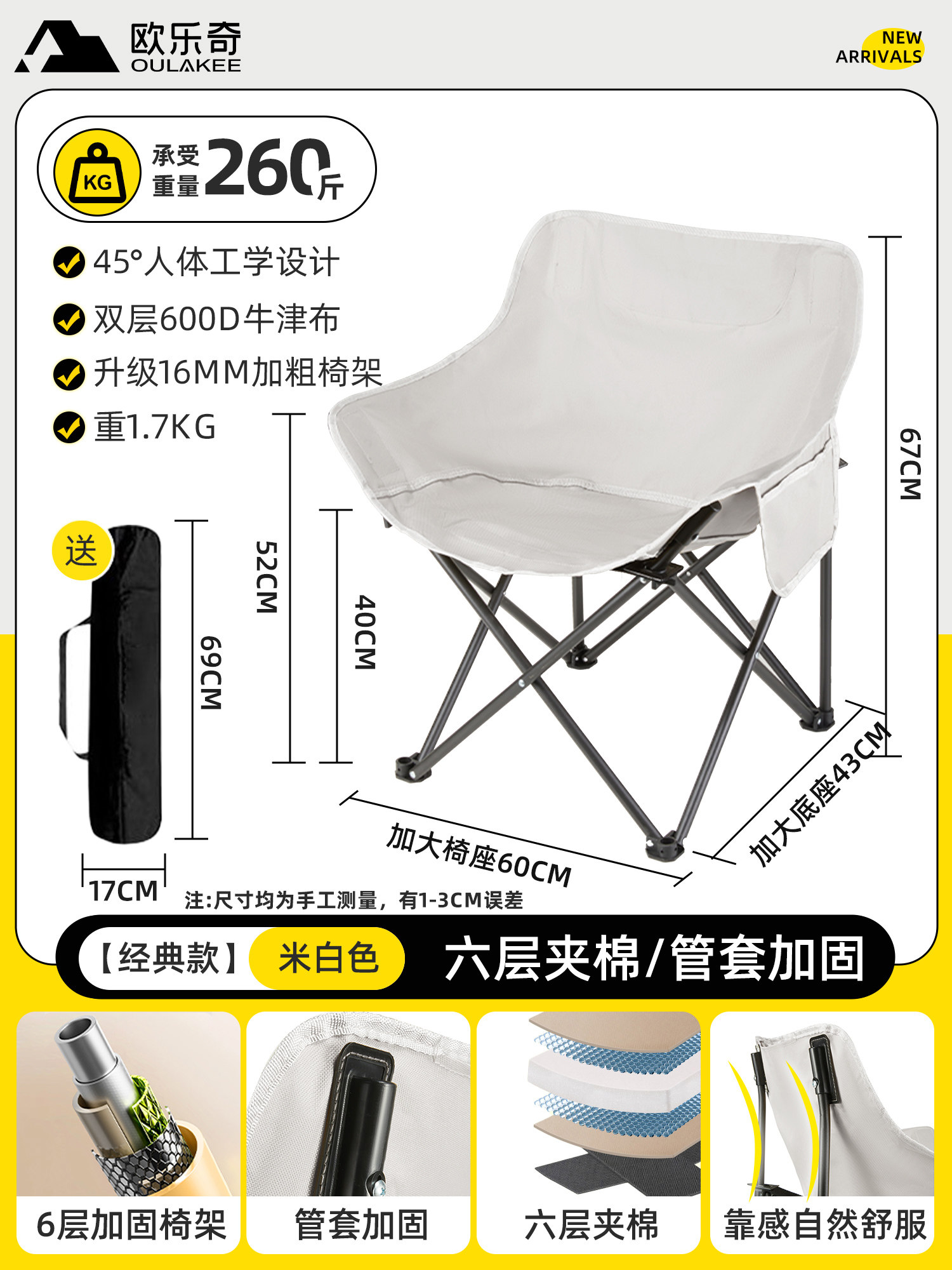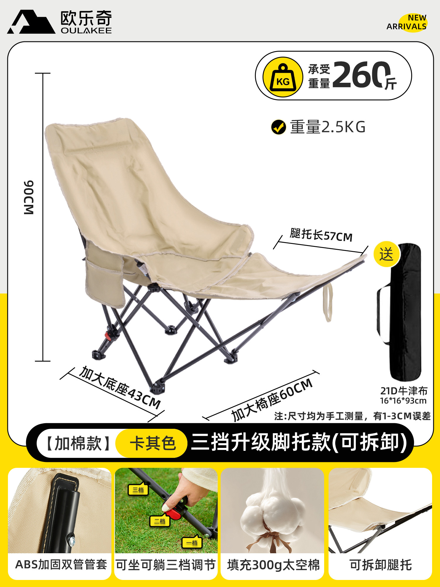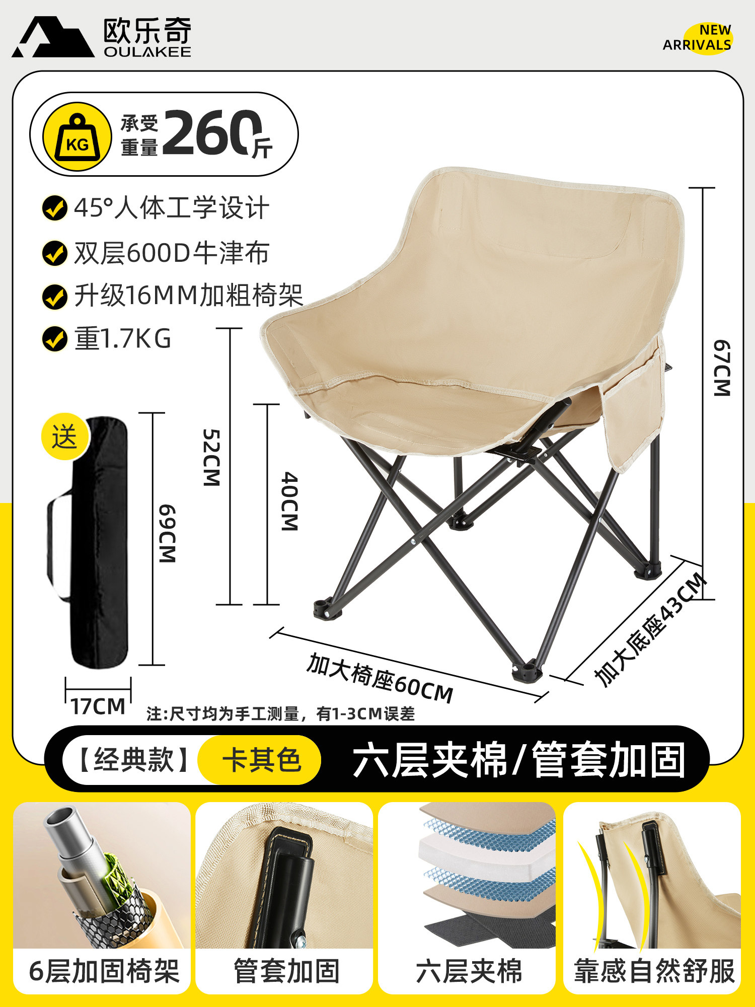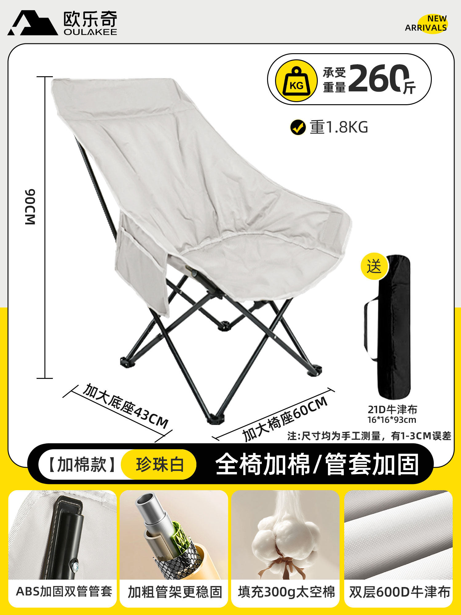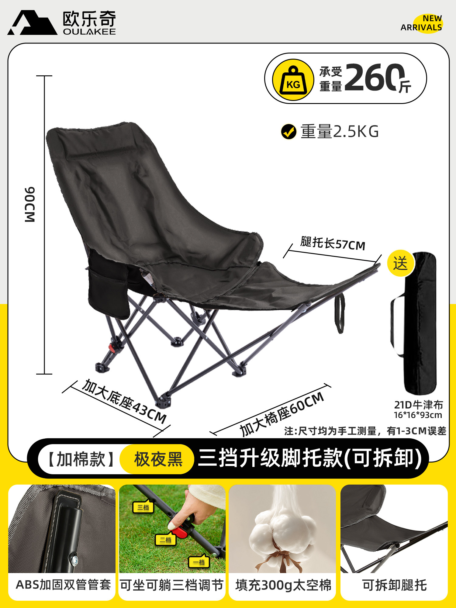 户外折叠椅加高月亮椅可调节躺椅露营椅子便携式沙滩钓鱼野餐椅子