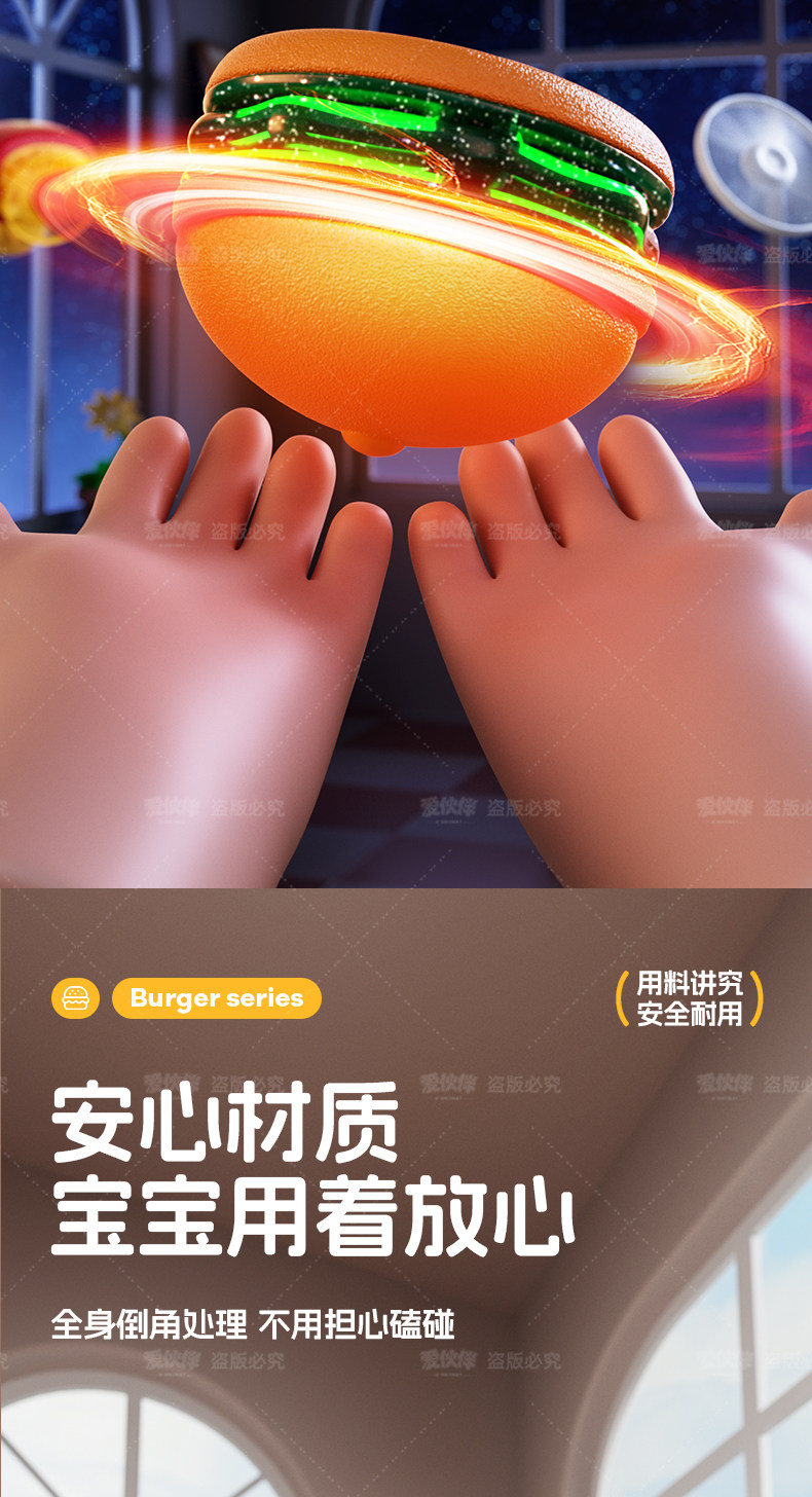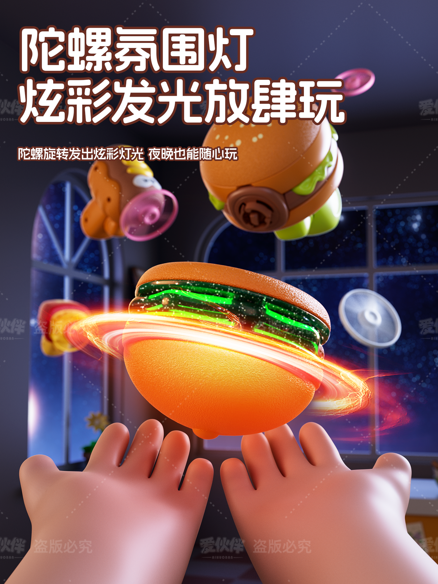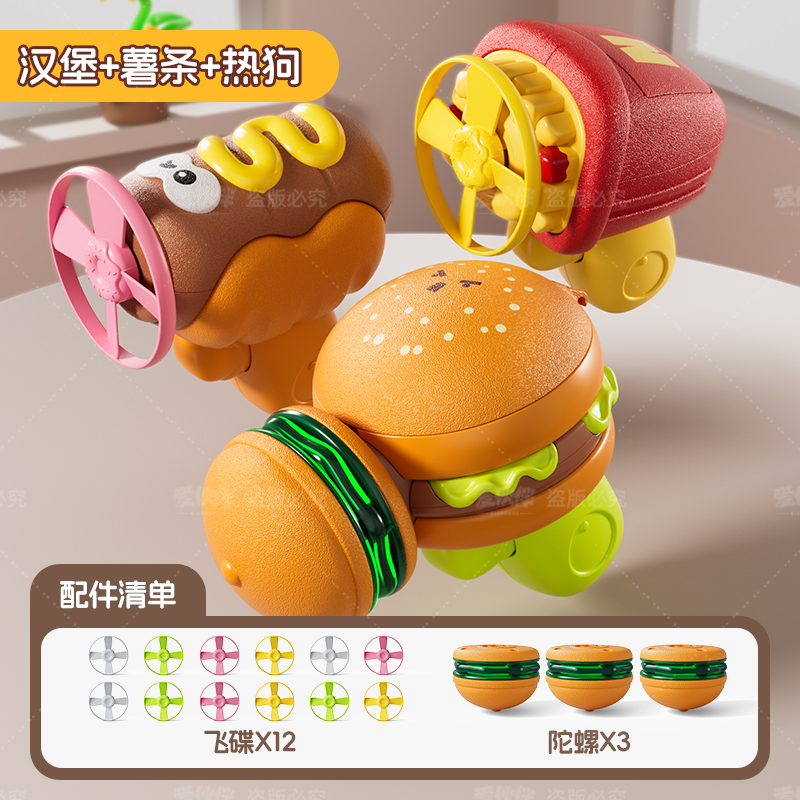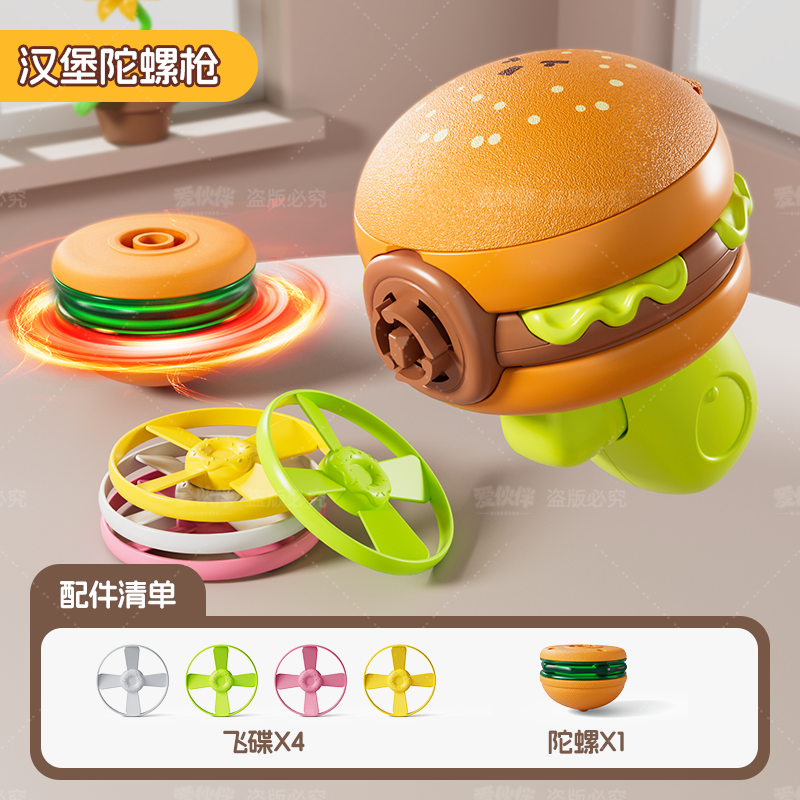 汉堡陀螺男孩玩具发光旋转陀螺飞盘户外儿童玩具竹蜻蜓女孩子玩具